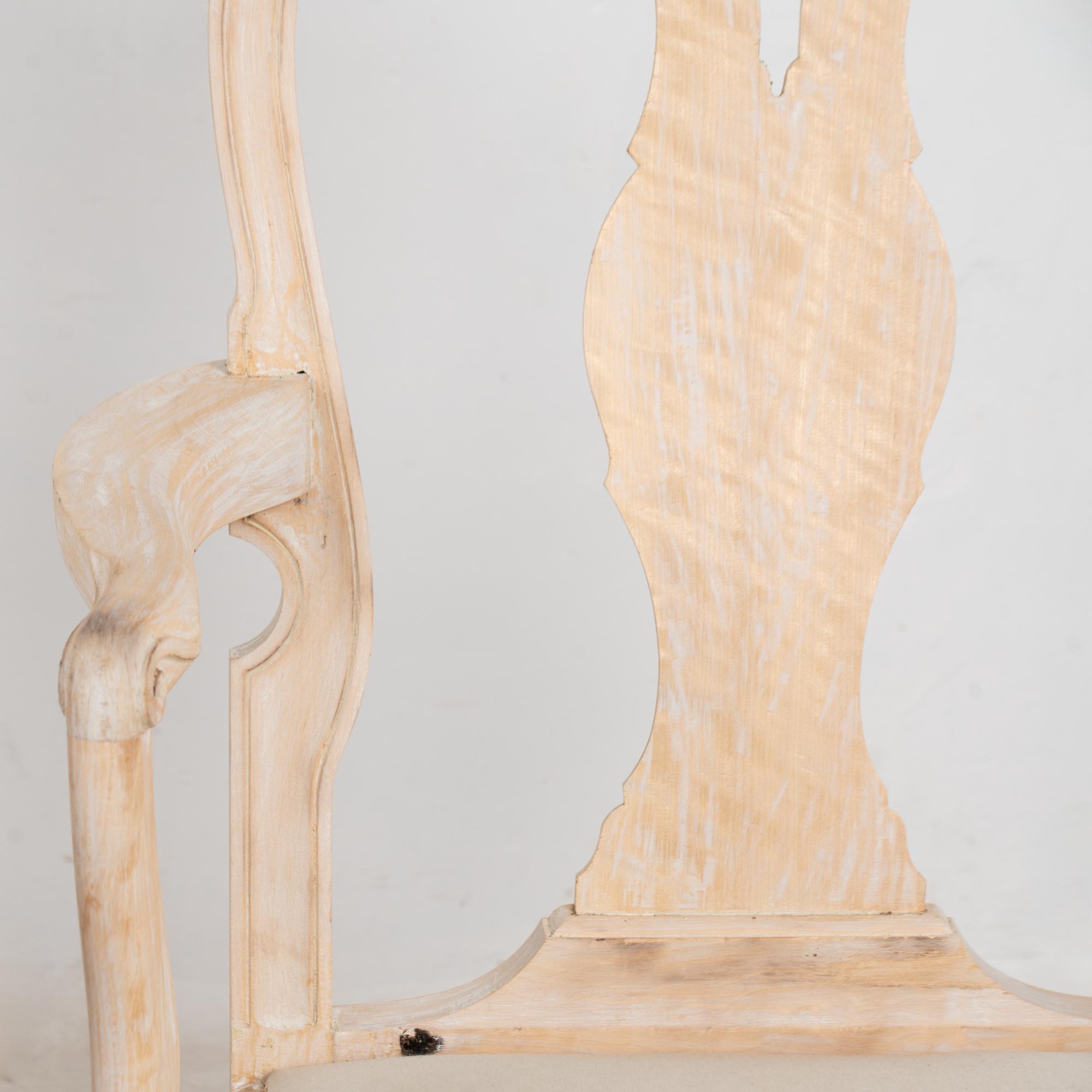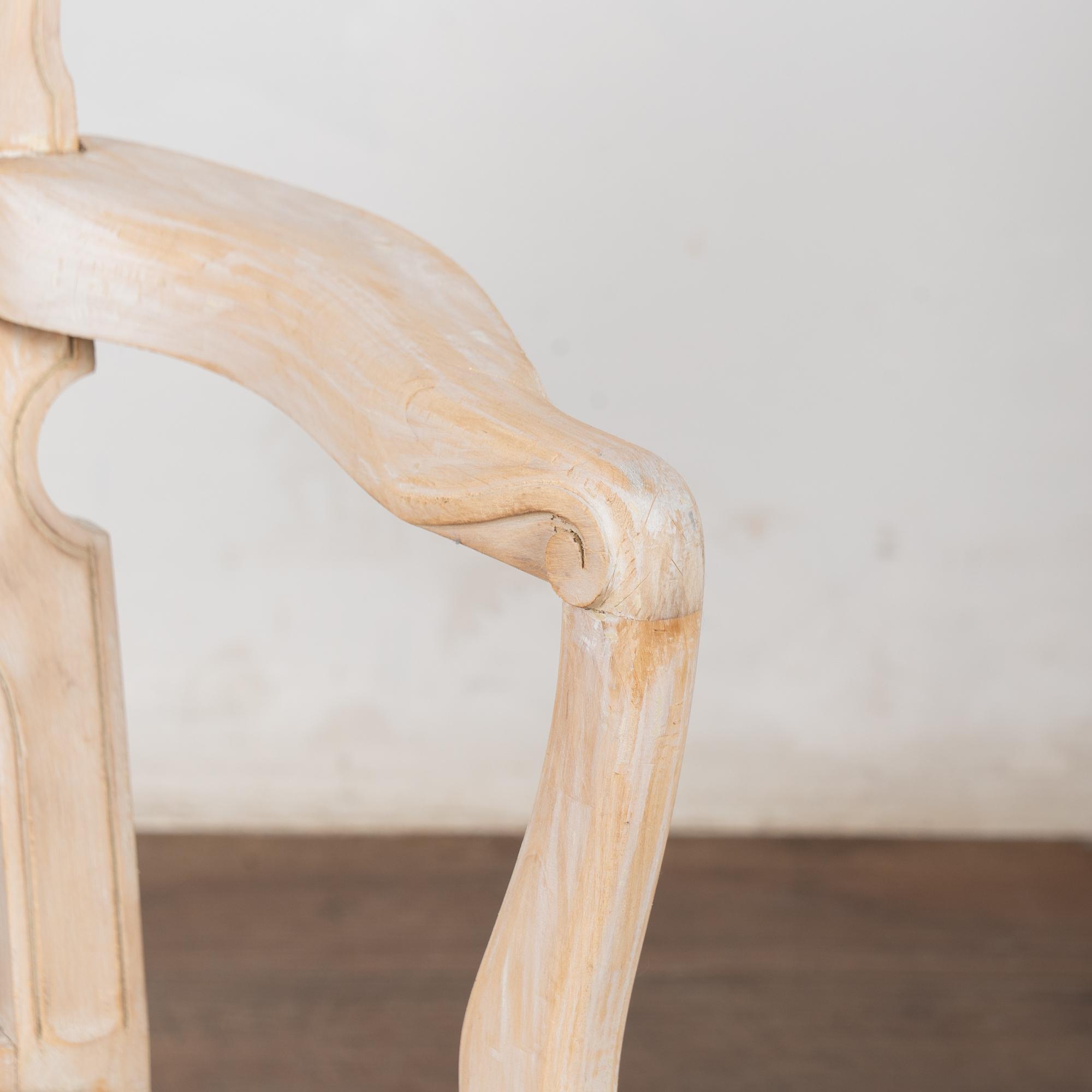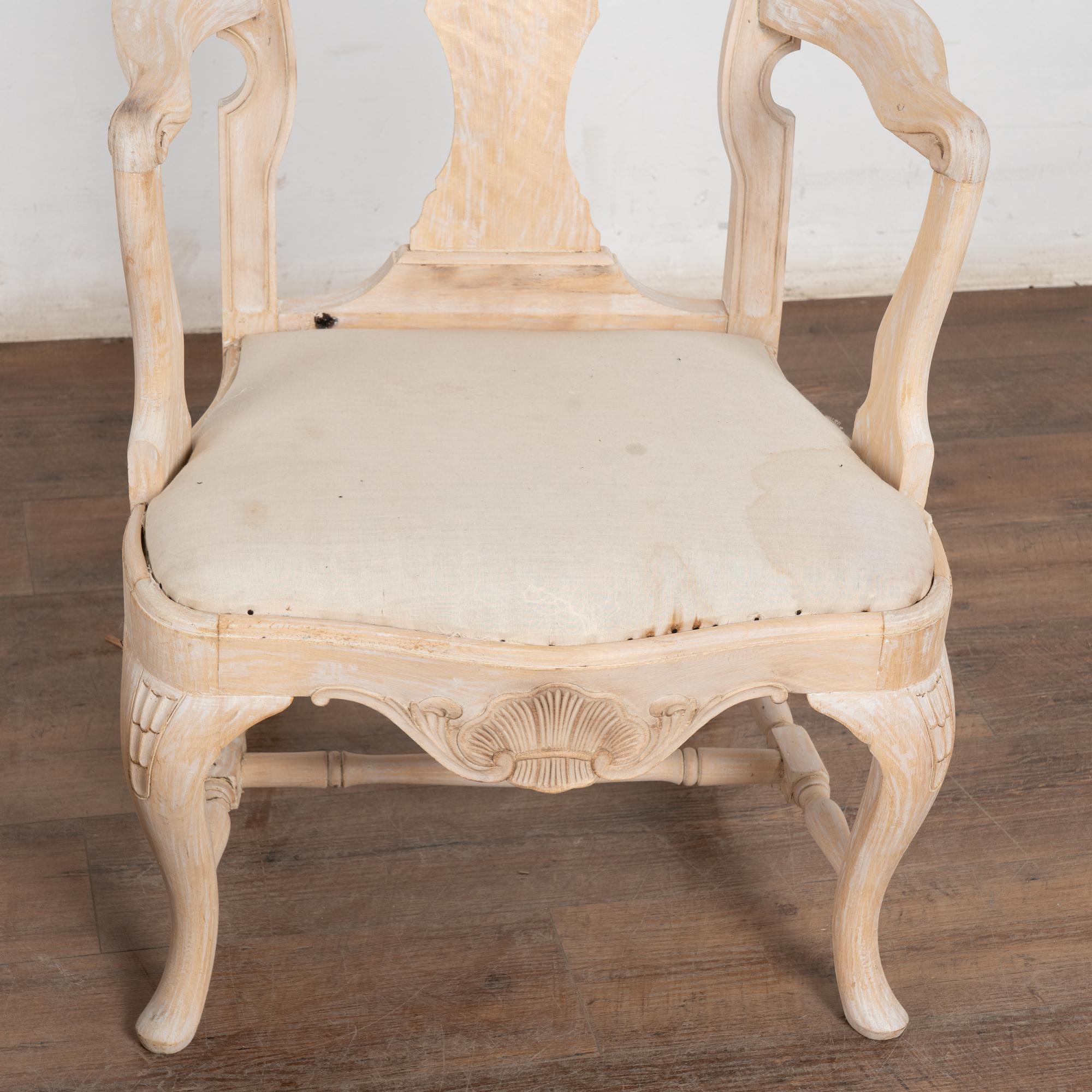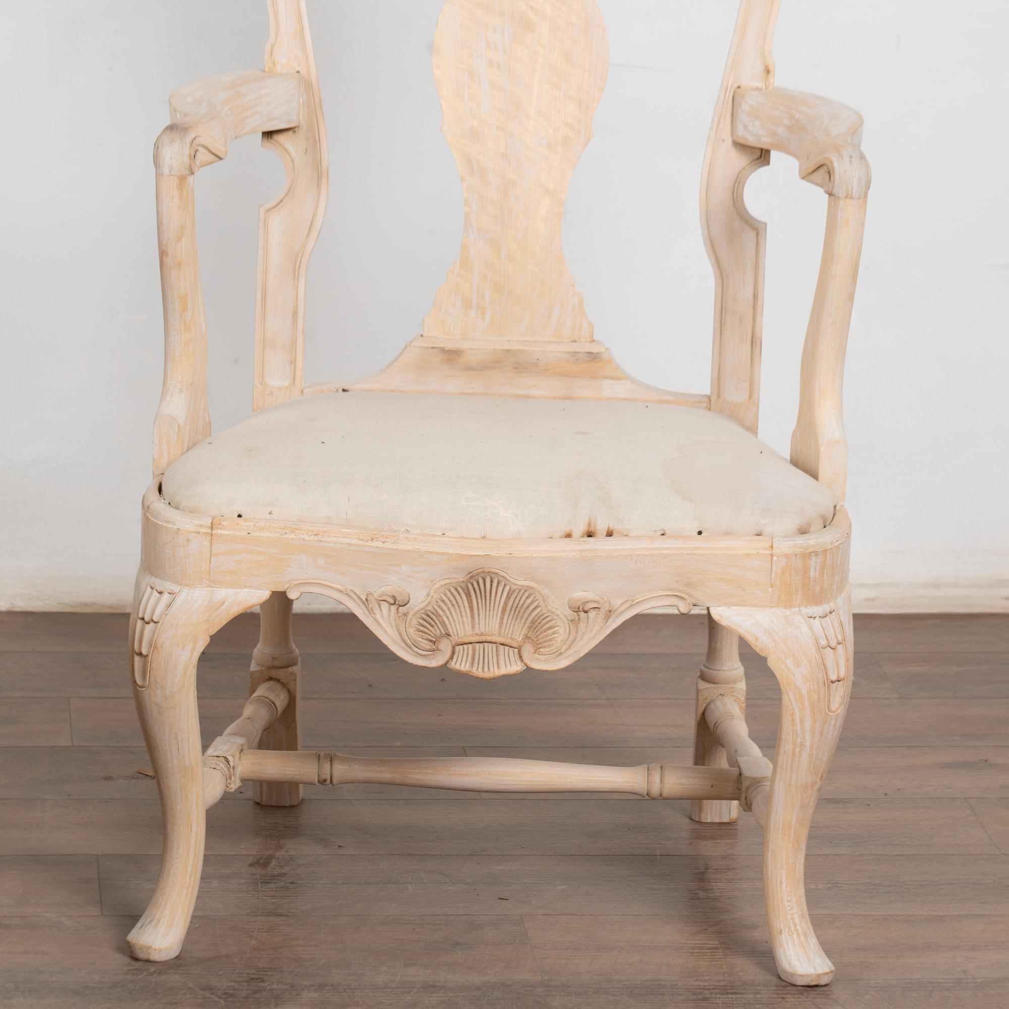 These armchairs have been given a newer, professionally painted gray layered finish which is lightly scraped creating a soft contrast with the hardwood beneath and accentuating the hand carved details along the crown, skirt, and cabriolet legs.