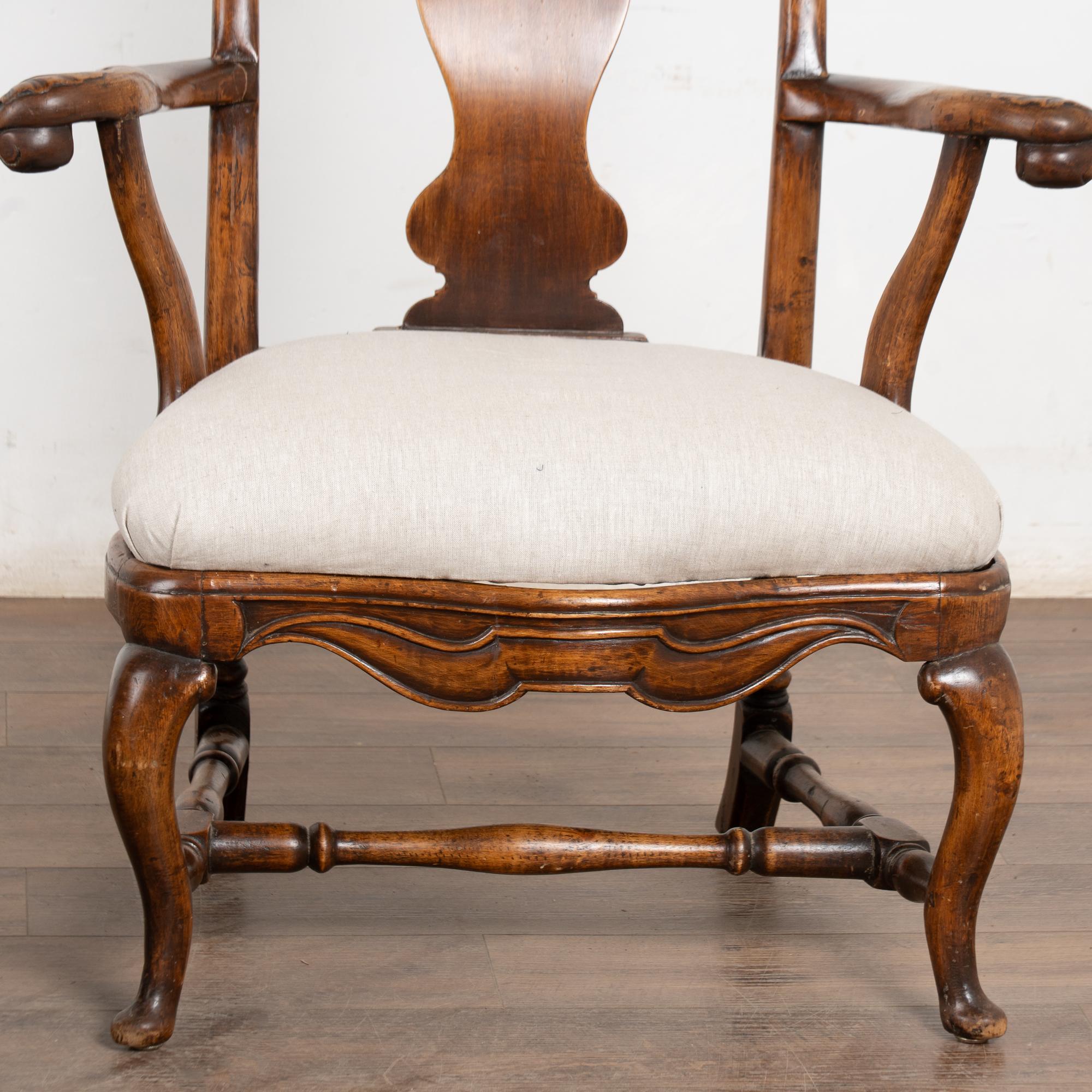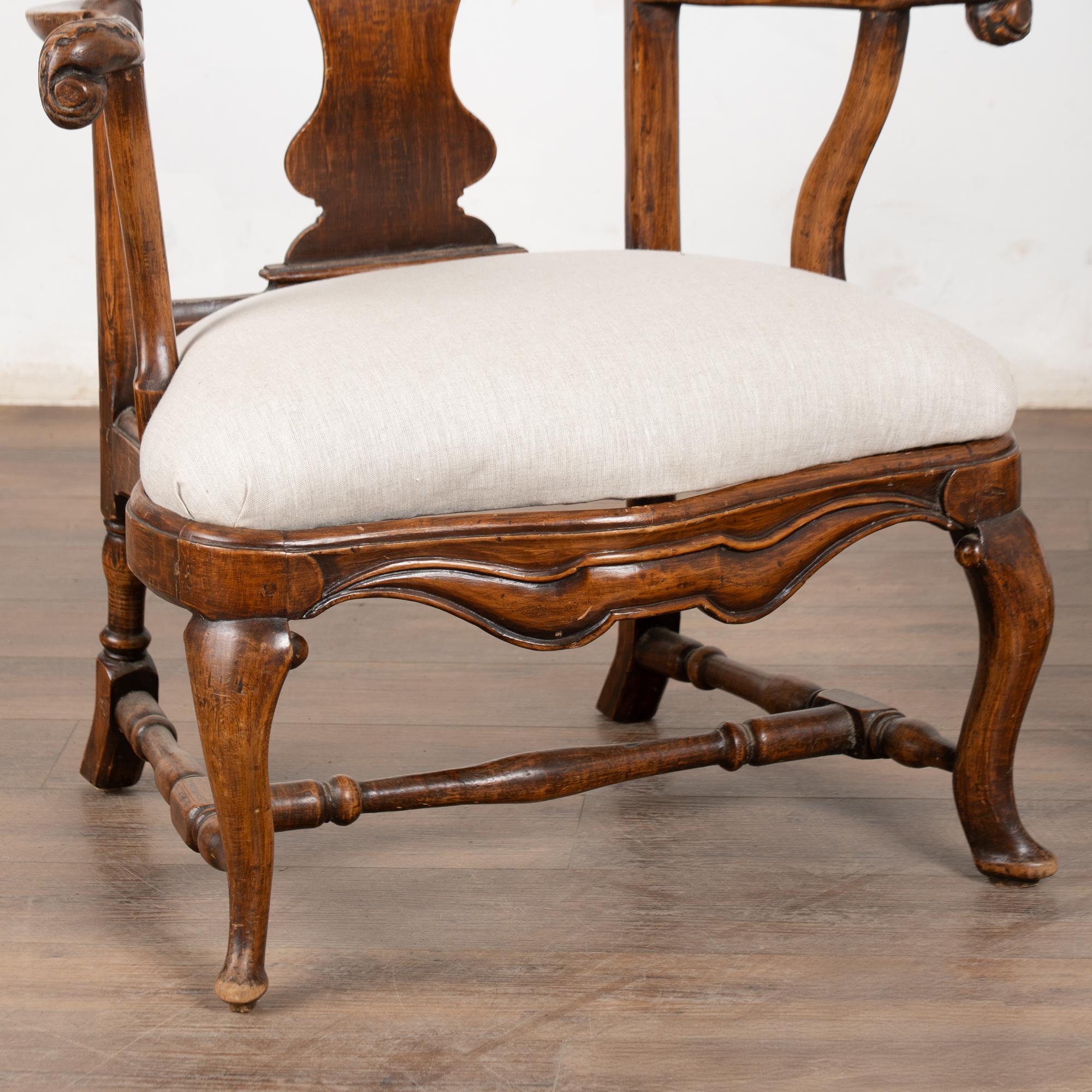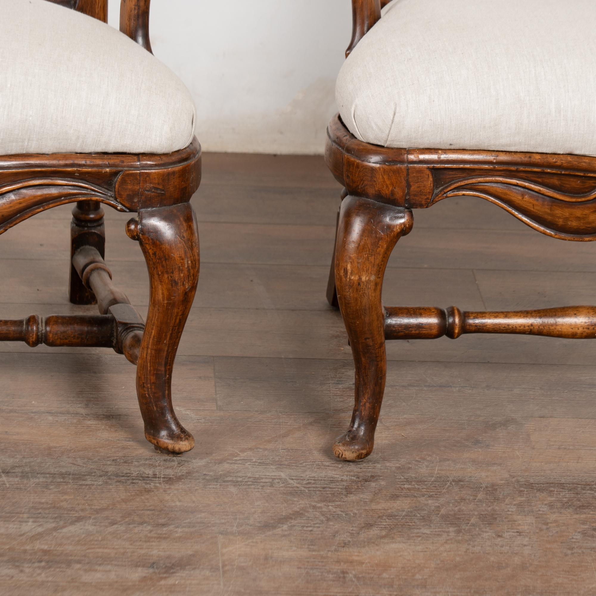 These Swedish chairs are beautifully crafted with cabriole legs supported by stretchers and a scrolled back and arms.
