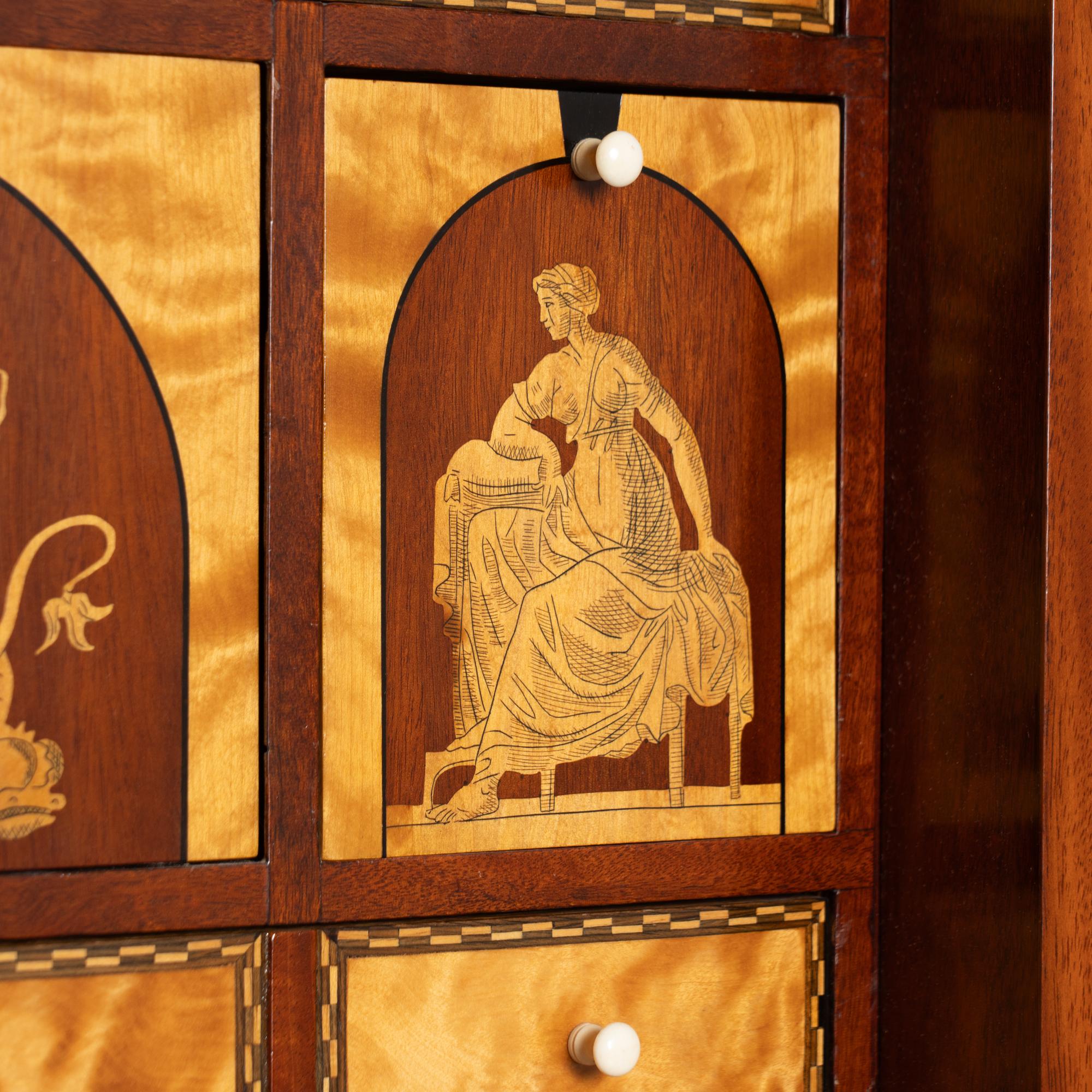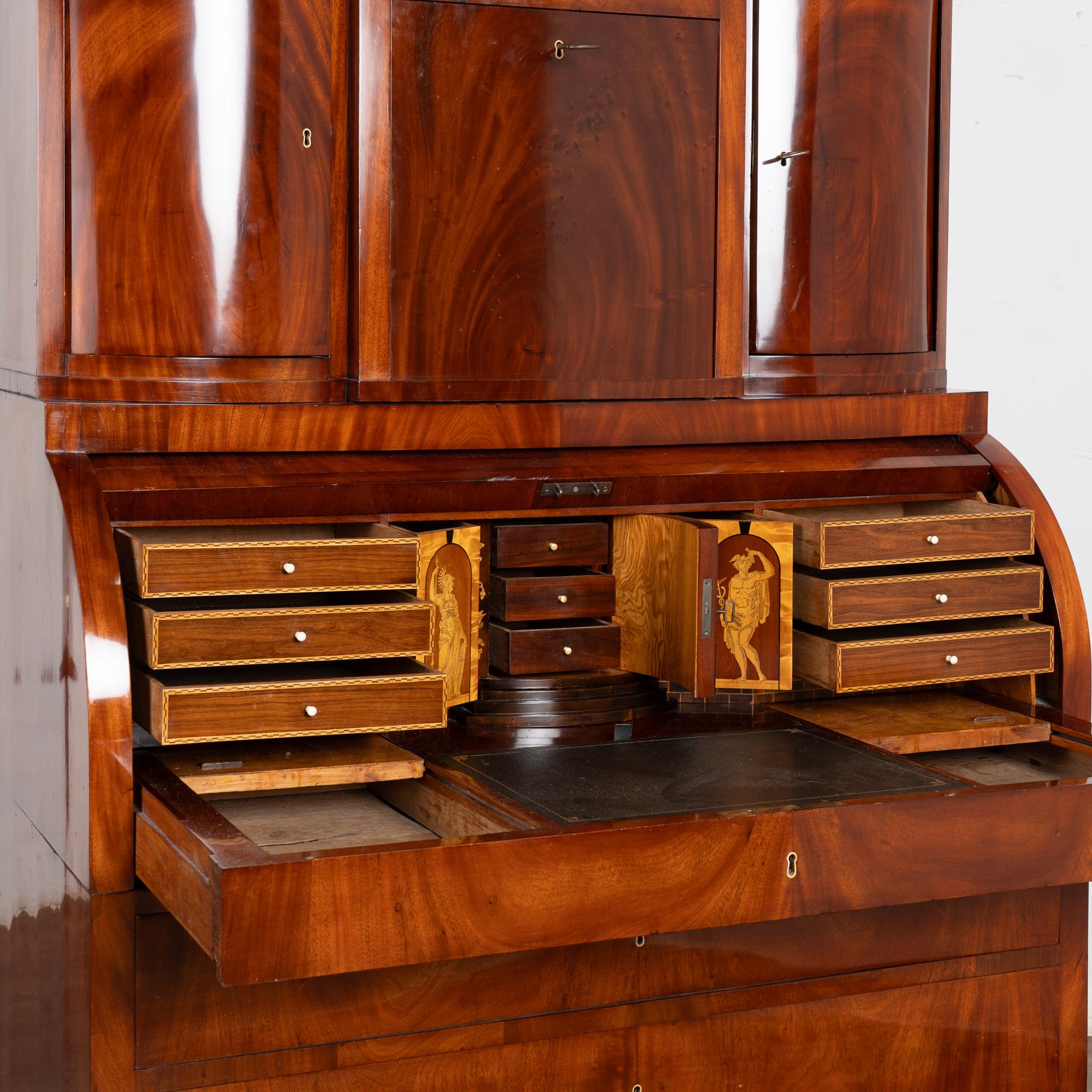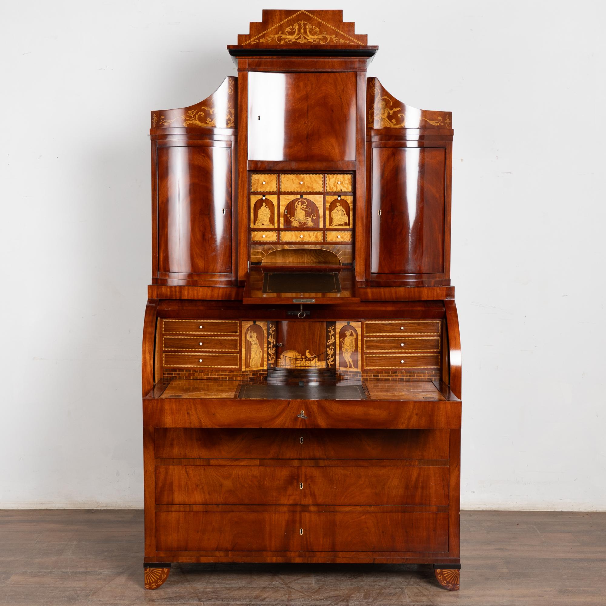 Rich mahogany and stately lines define this handsome Empire drop front secretary.