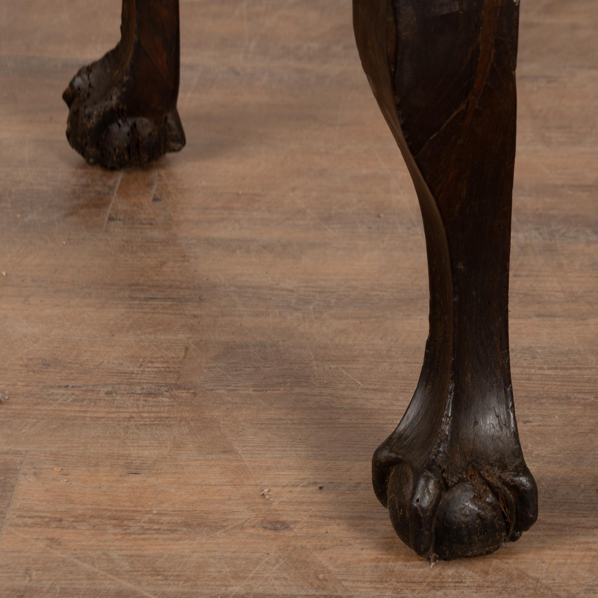 All scratches, cracks, dings, stains, gouges and age related separation are reflective of age and do not detract from the beauty nor function of this dark hard wood accent table.