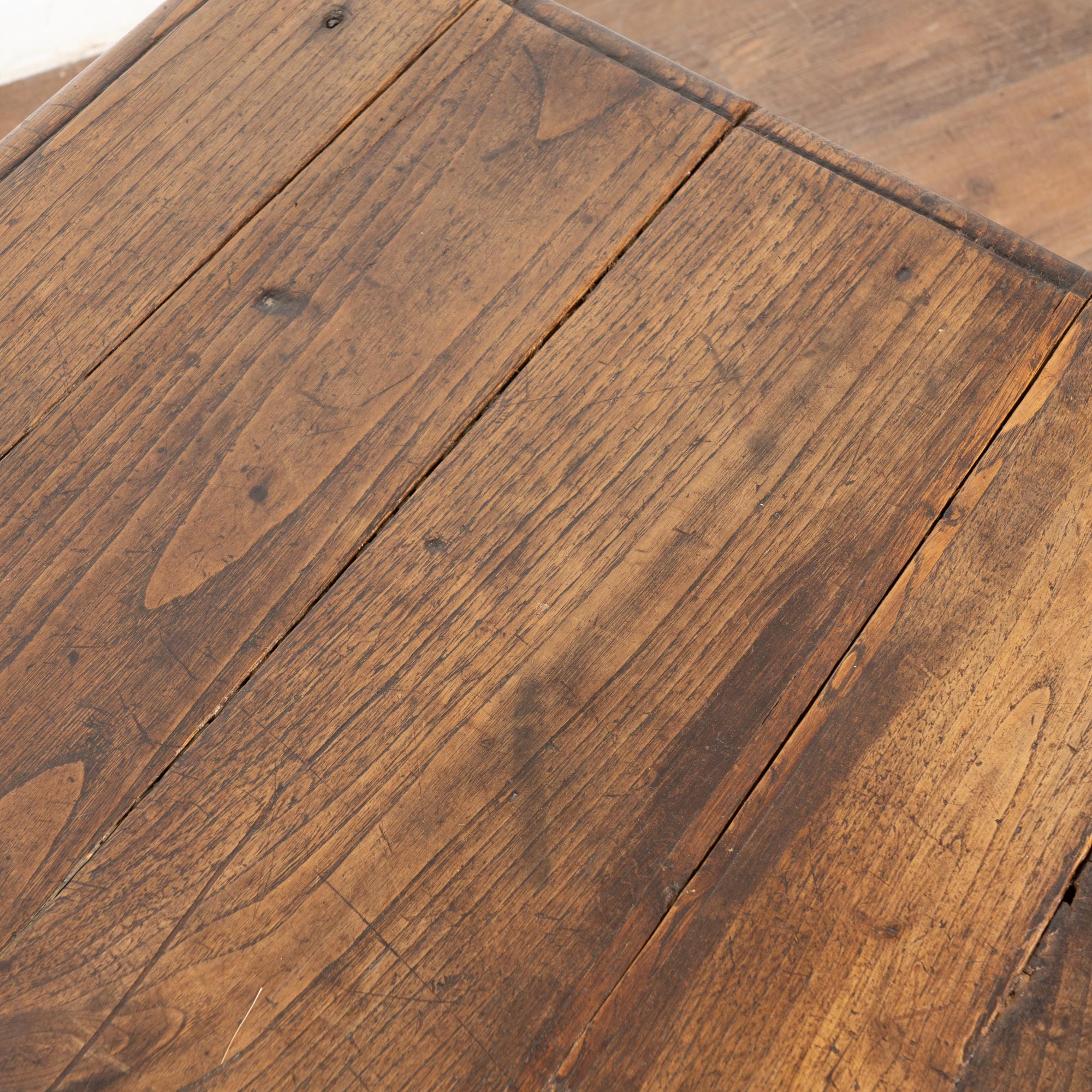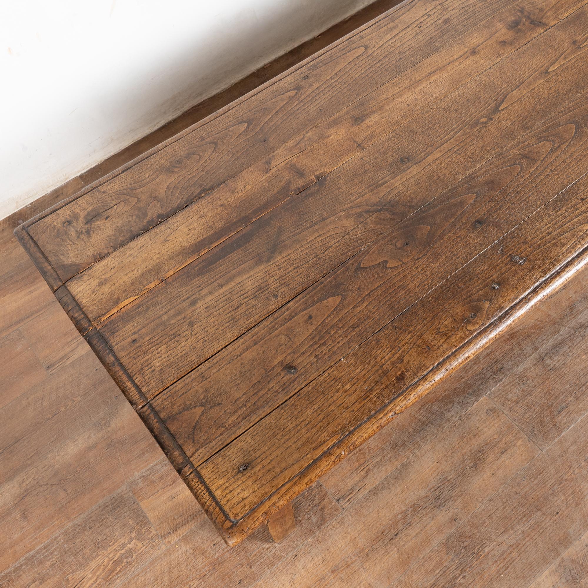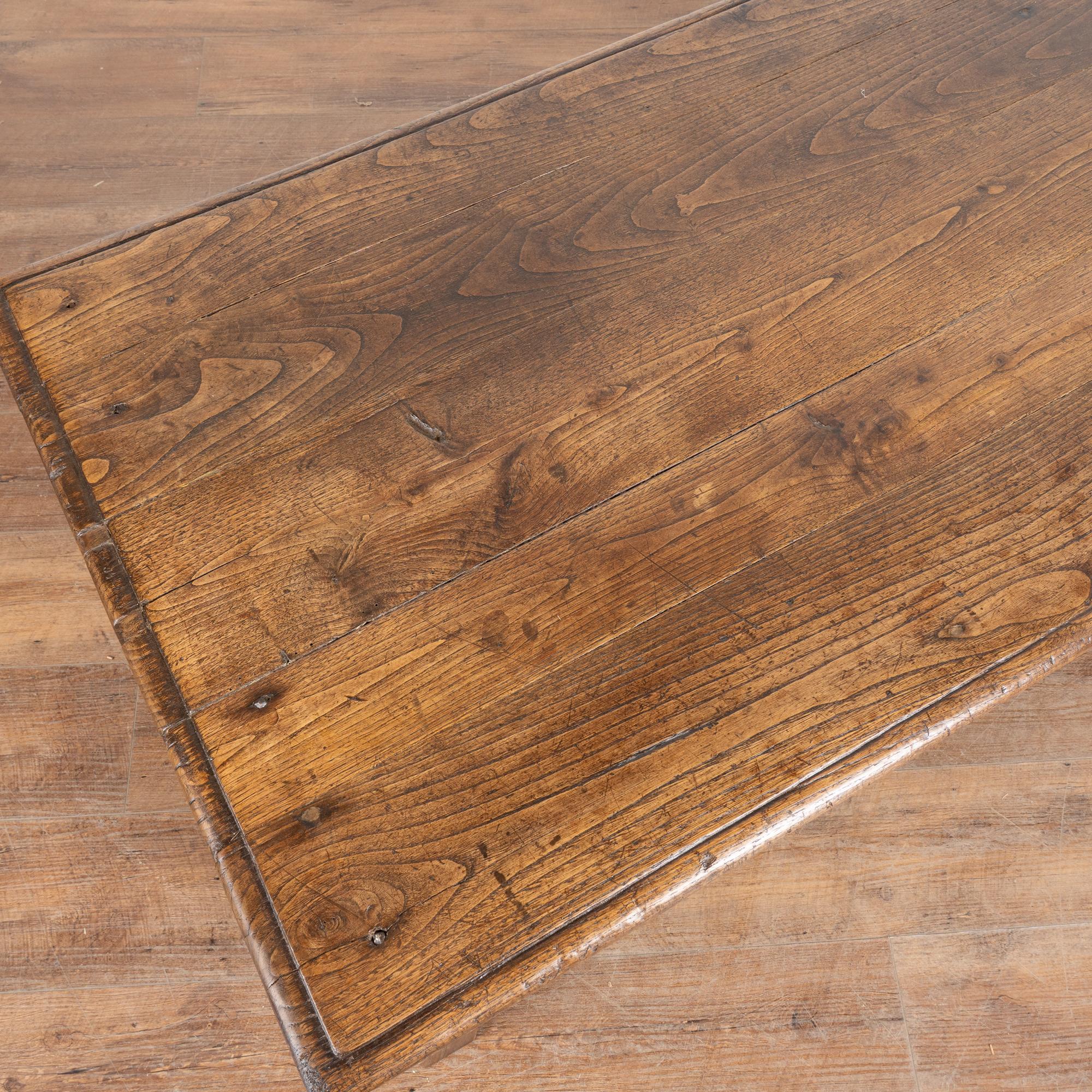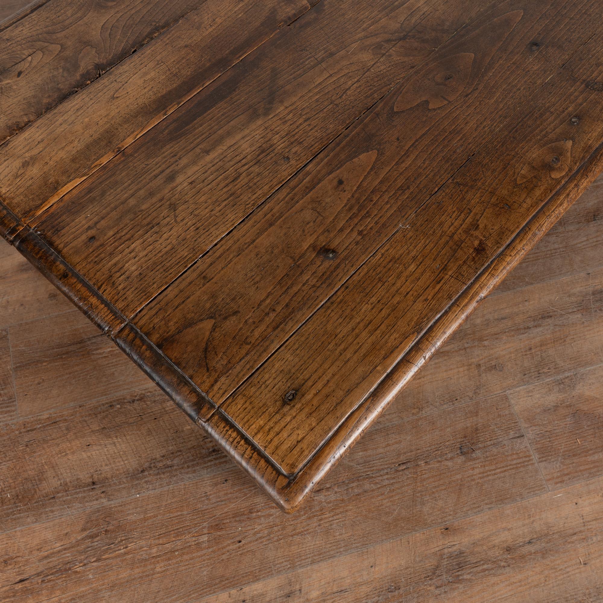 The strong appeal of this coffee table comes from the rich patina of the worn French hardwood. Every scratch, nick, crack and old dried worm holes add to the character of this coffee table.