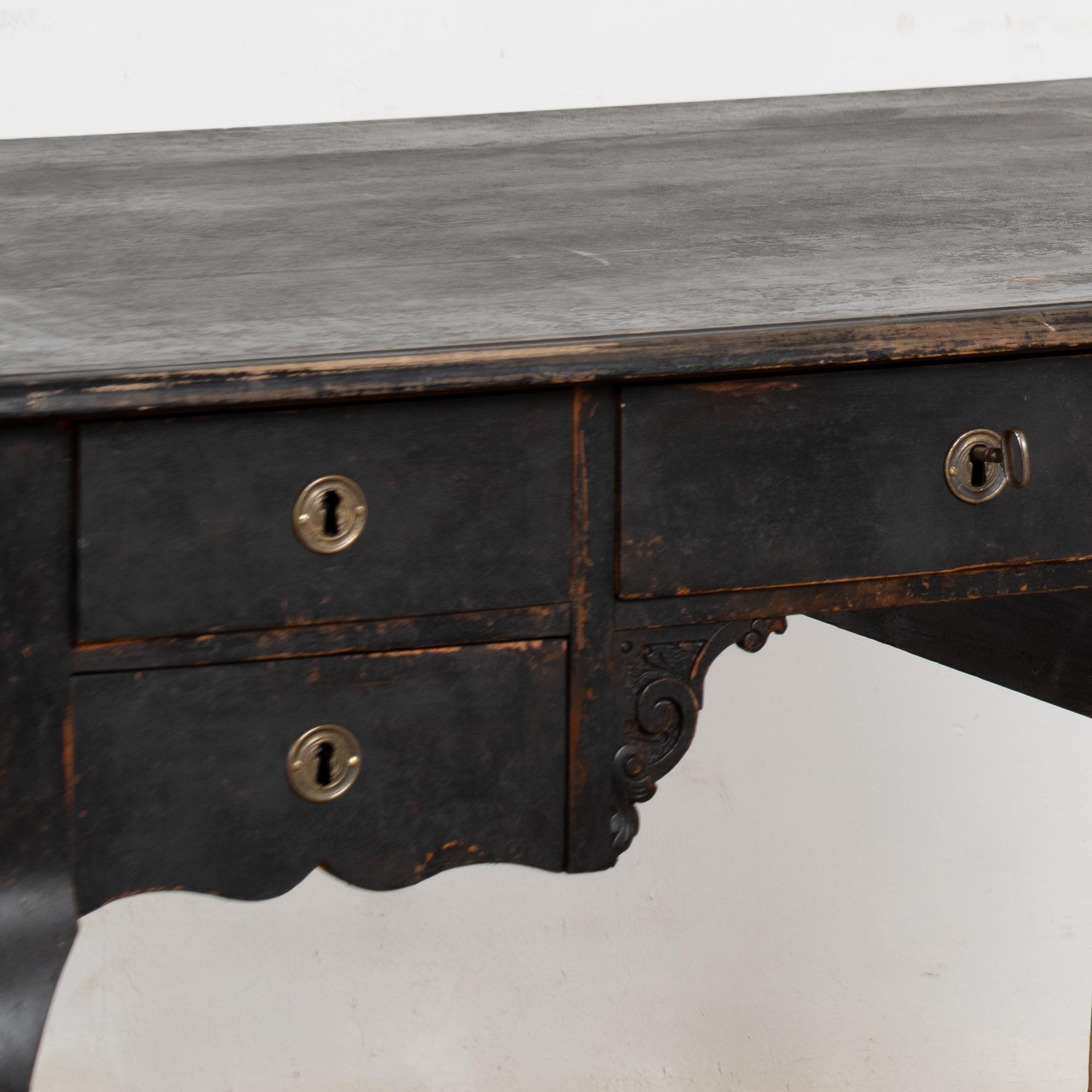 Restored, later custom black painted finish which is lightly distressed to fit the age and grace of this lovely writing table.