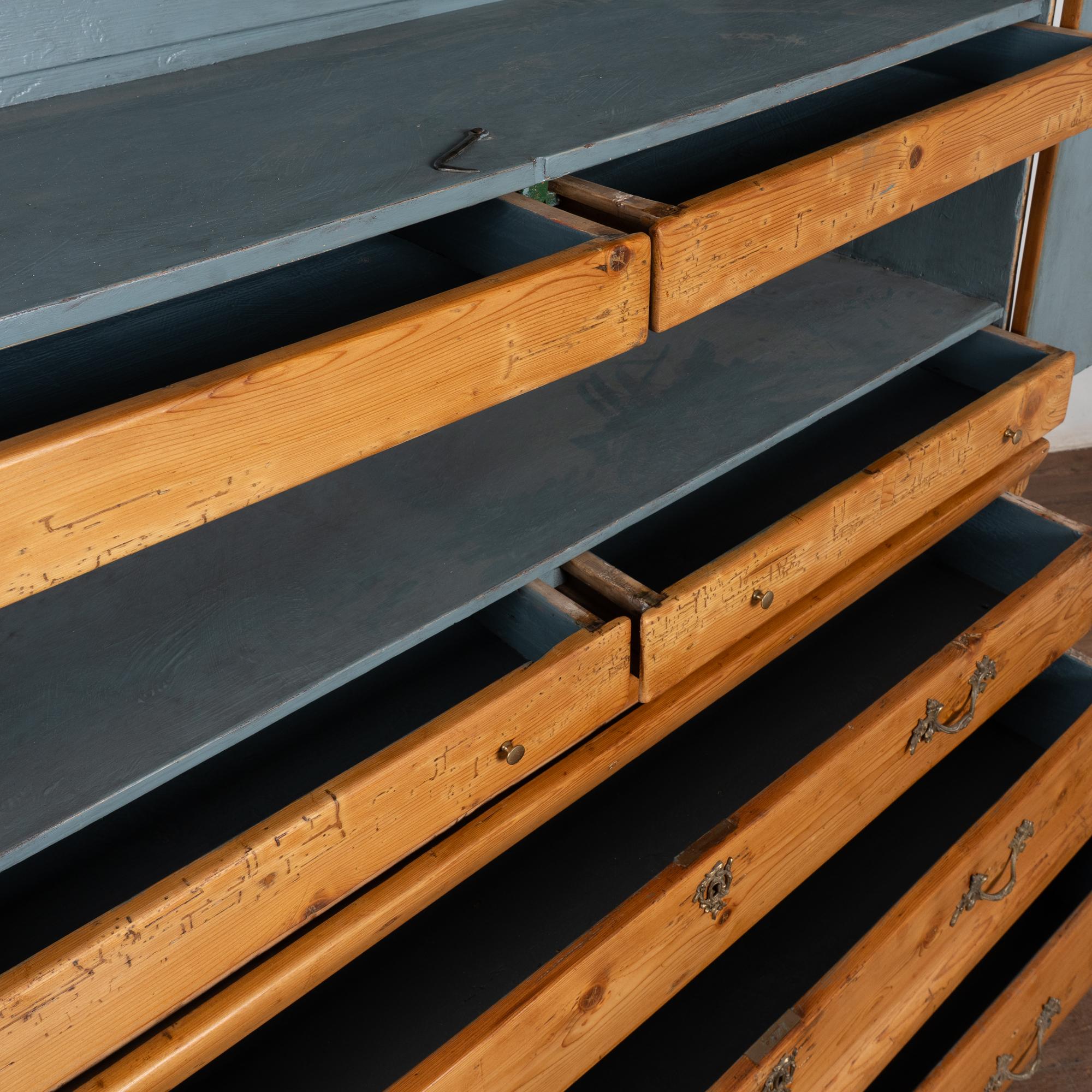 Interior has been (newer) painted a matte blue-gray. Features four slender interior drawers.