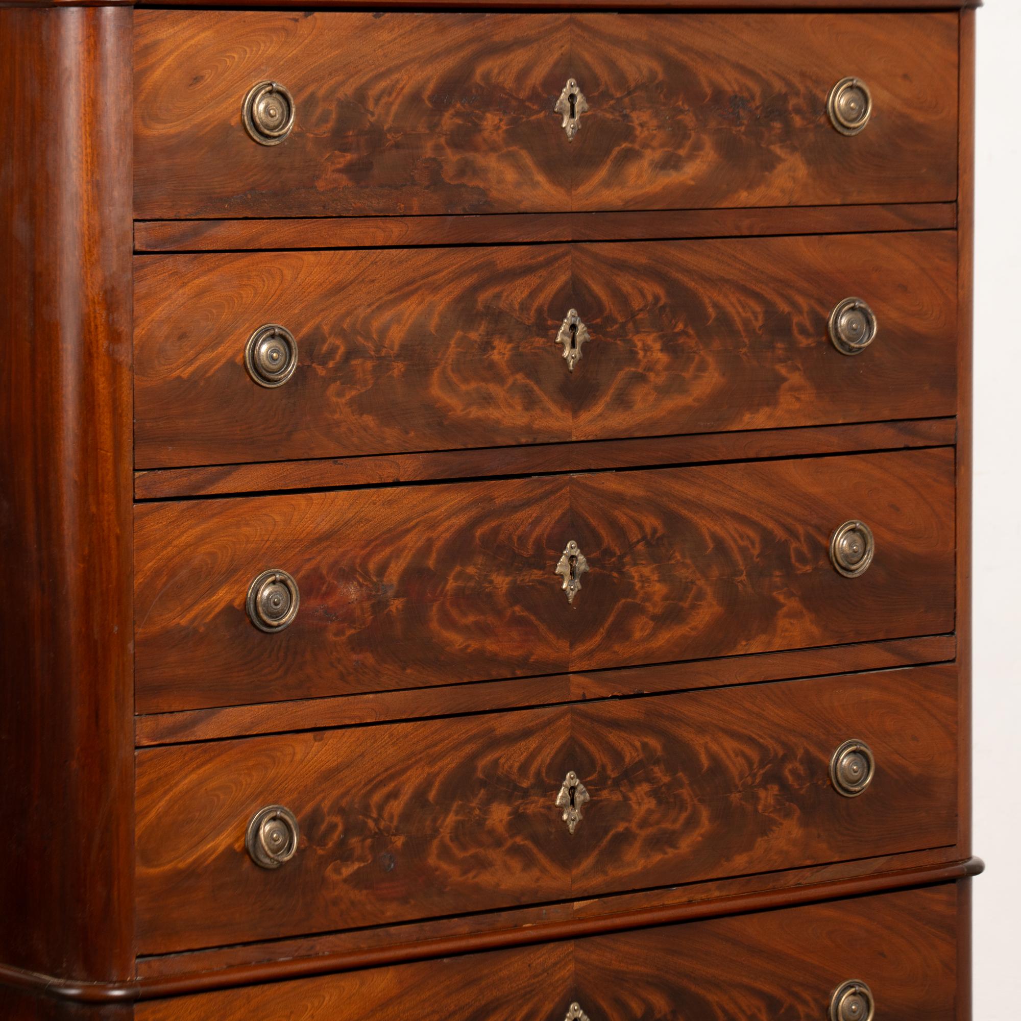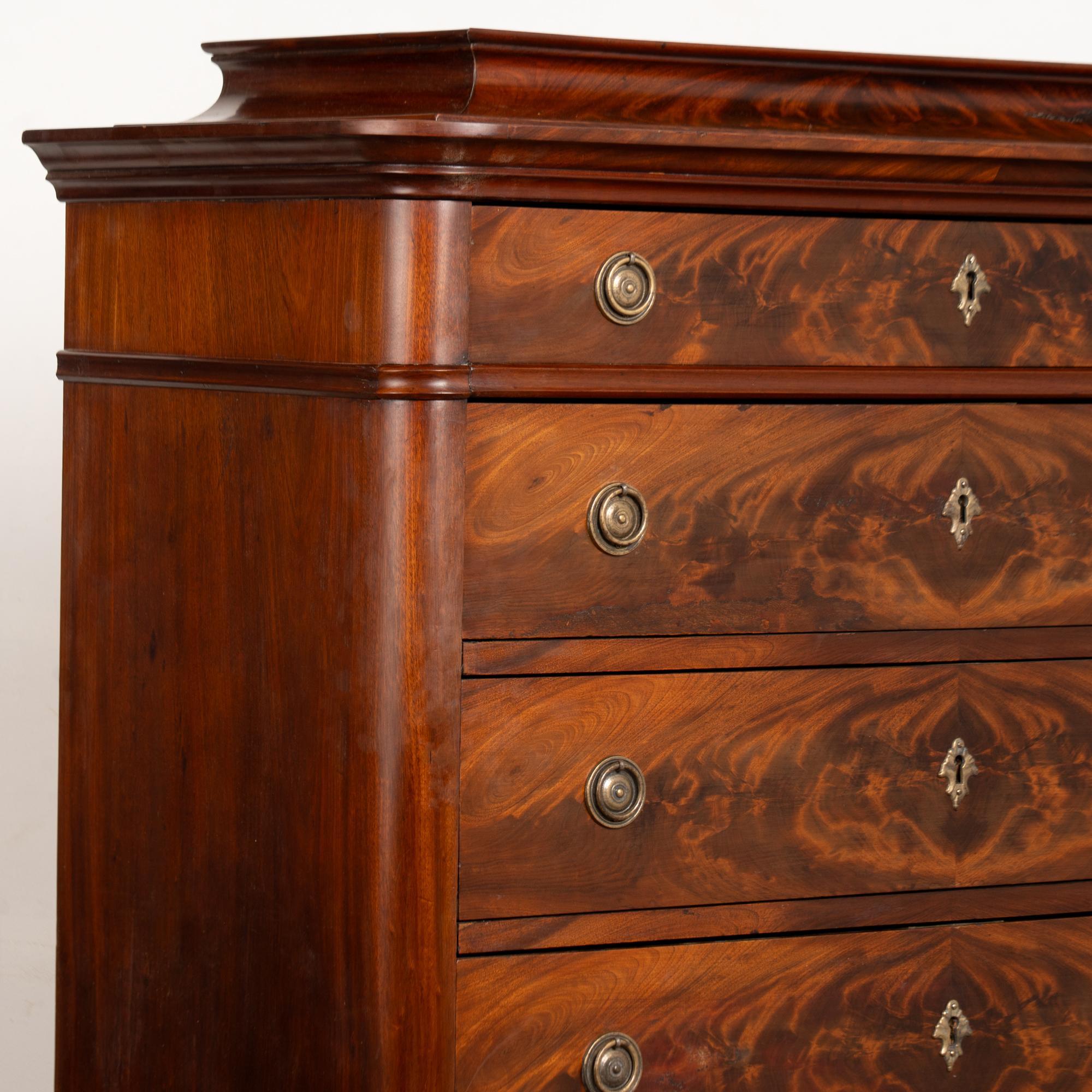Tall Biedermeier mahogany chest of drawers, also known as a highboy or chiffoniers.