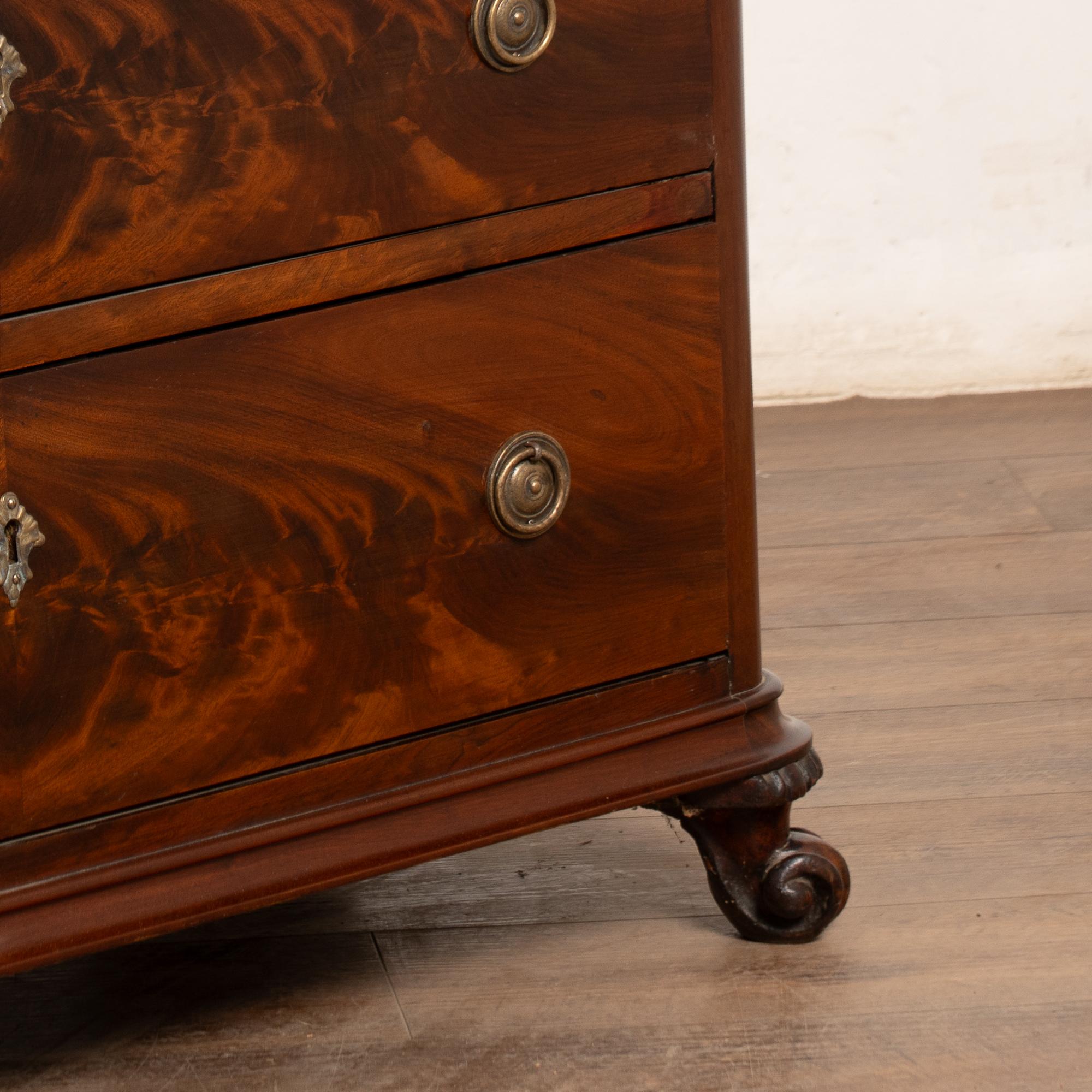 Restored, strong/stable and drawers function. Drawer sides and bottoms are made of pine which was traditional craftsmanship while the exterior shows off the more expensive mahogany. Note old repairs along upper right crown, upper left crown/corner and second drawer from top.