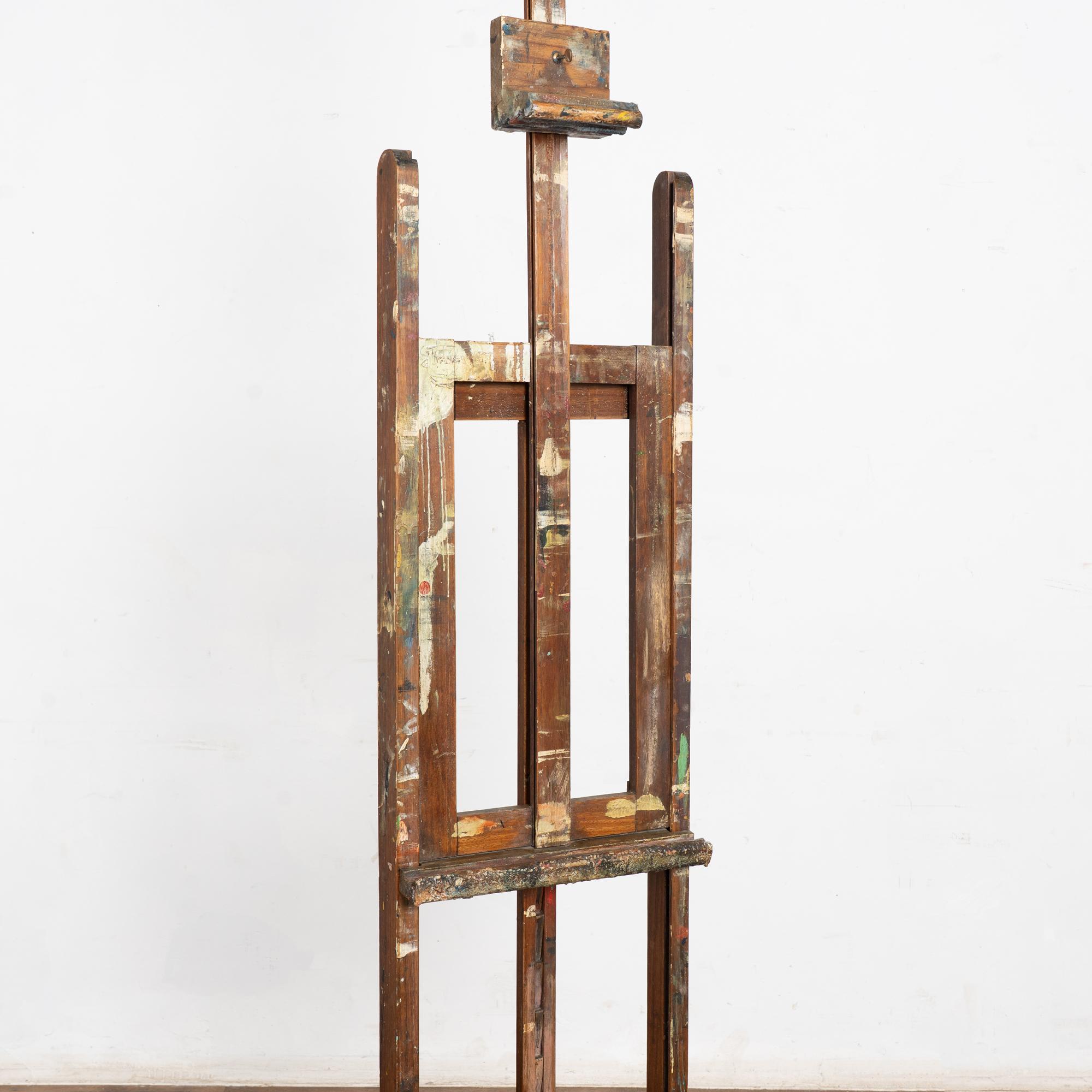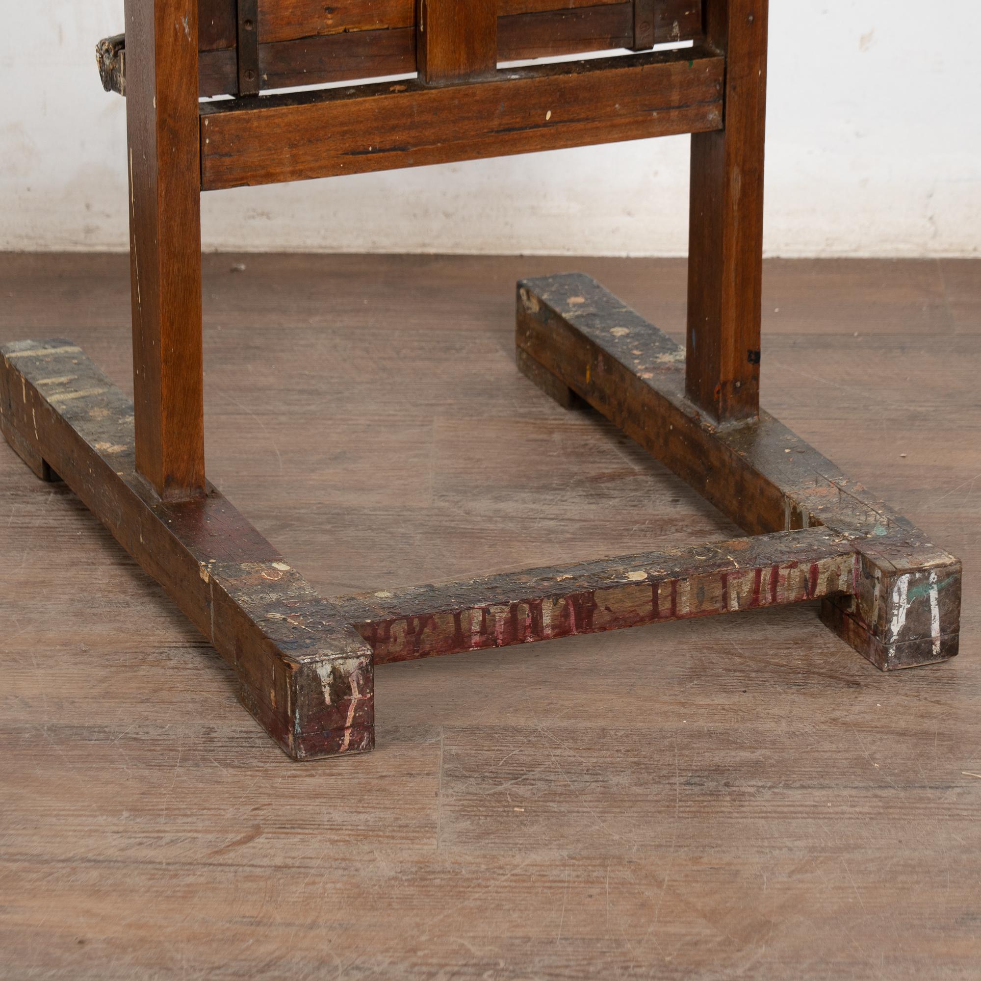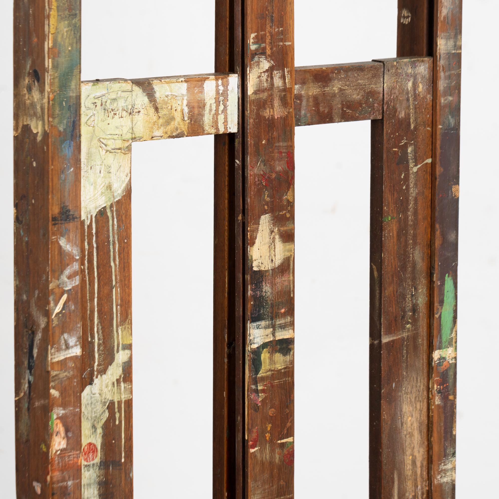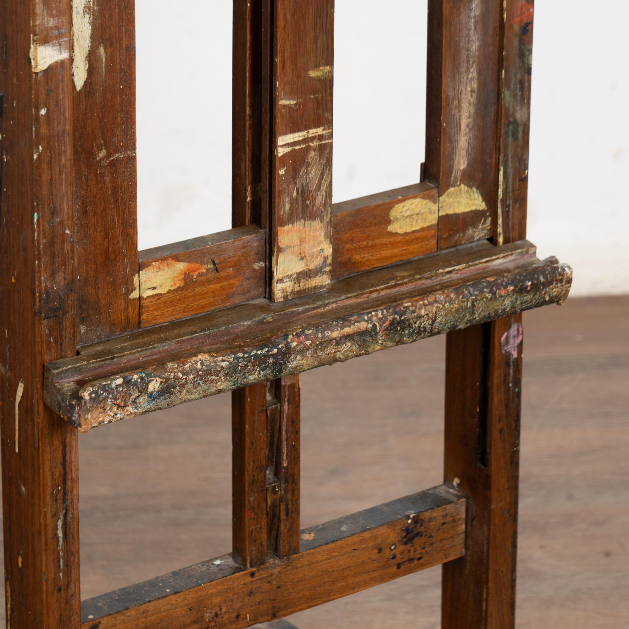 This vintage artist's easel reveals years of use as seen in the many paint spills, scratches, dings and areas of distress and wear throughout.
