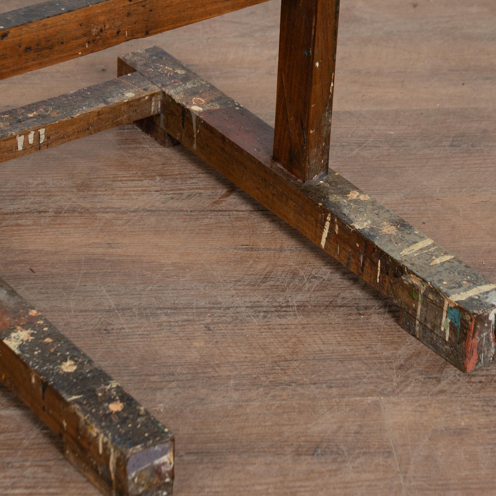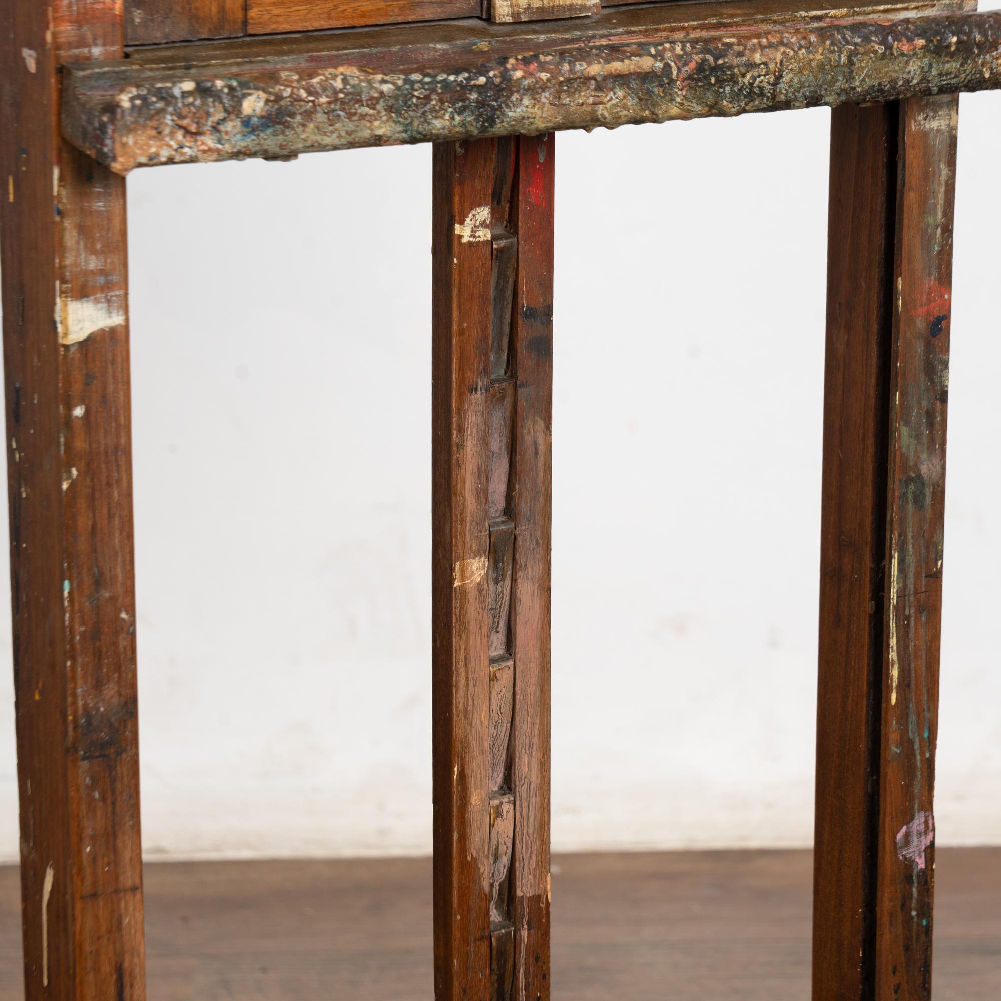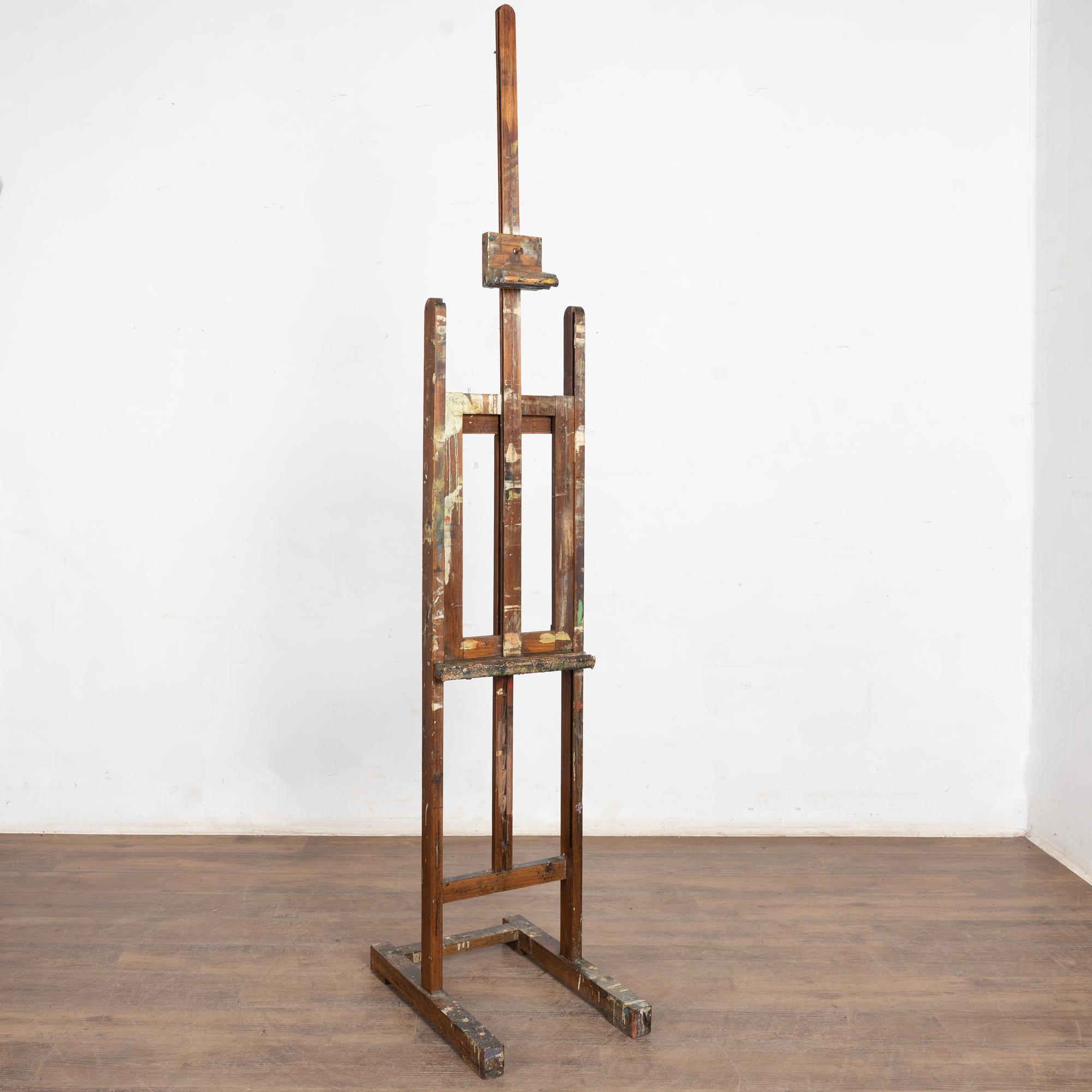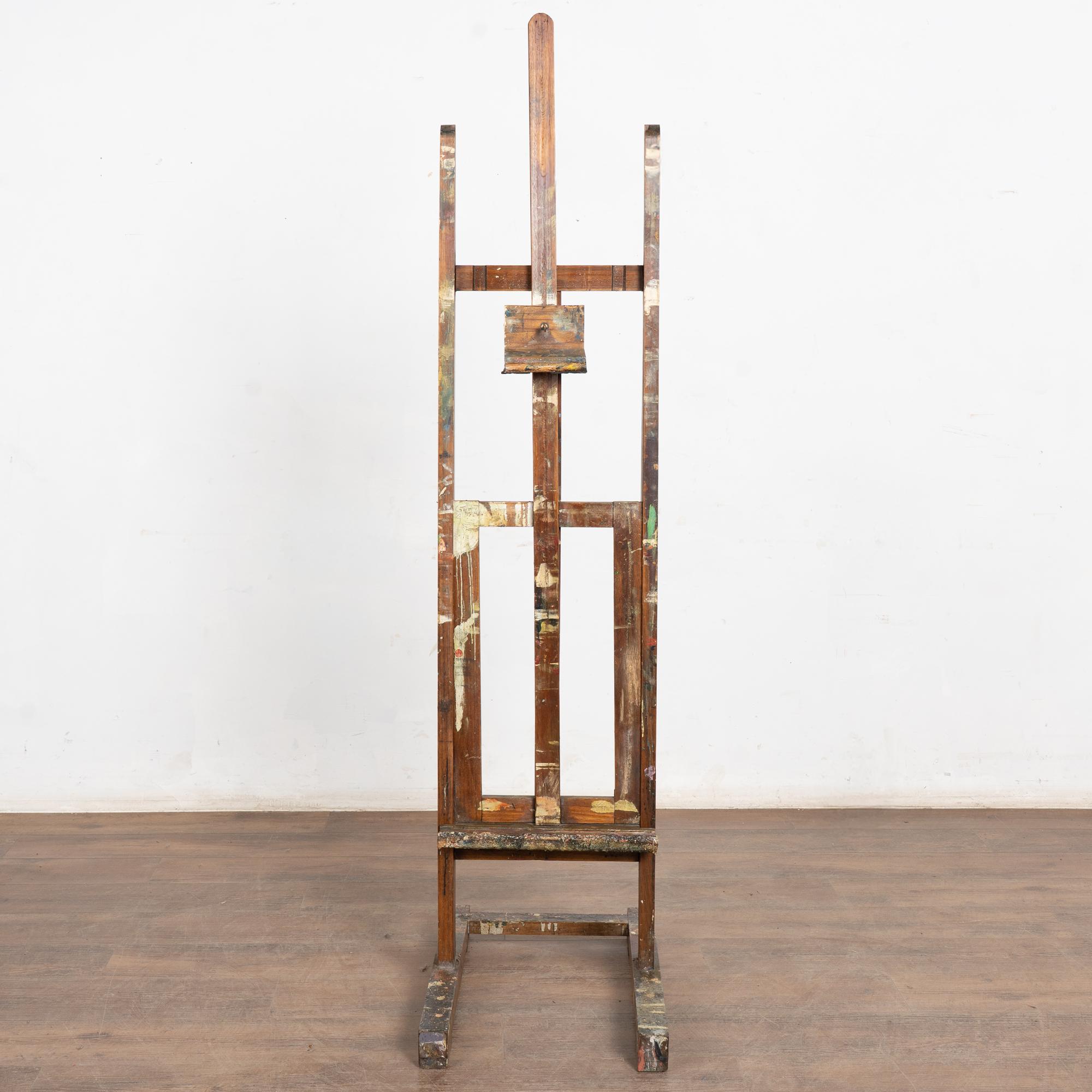 This vintage artist's easel reveals years of use as seen in the many paint spills, scratches, dings and areas of distress and wear throughout.