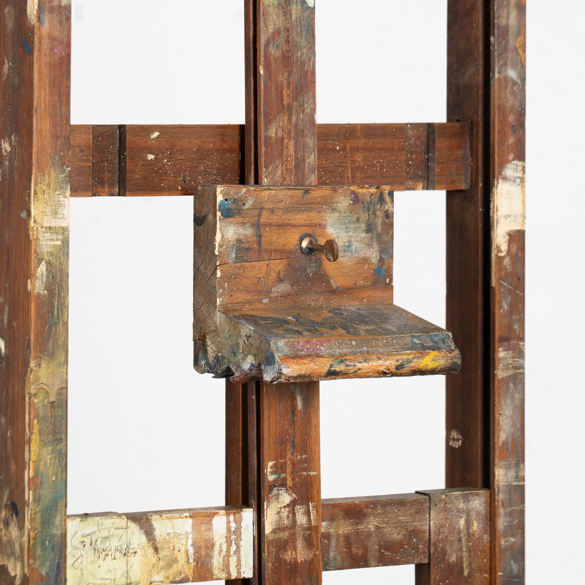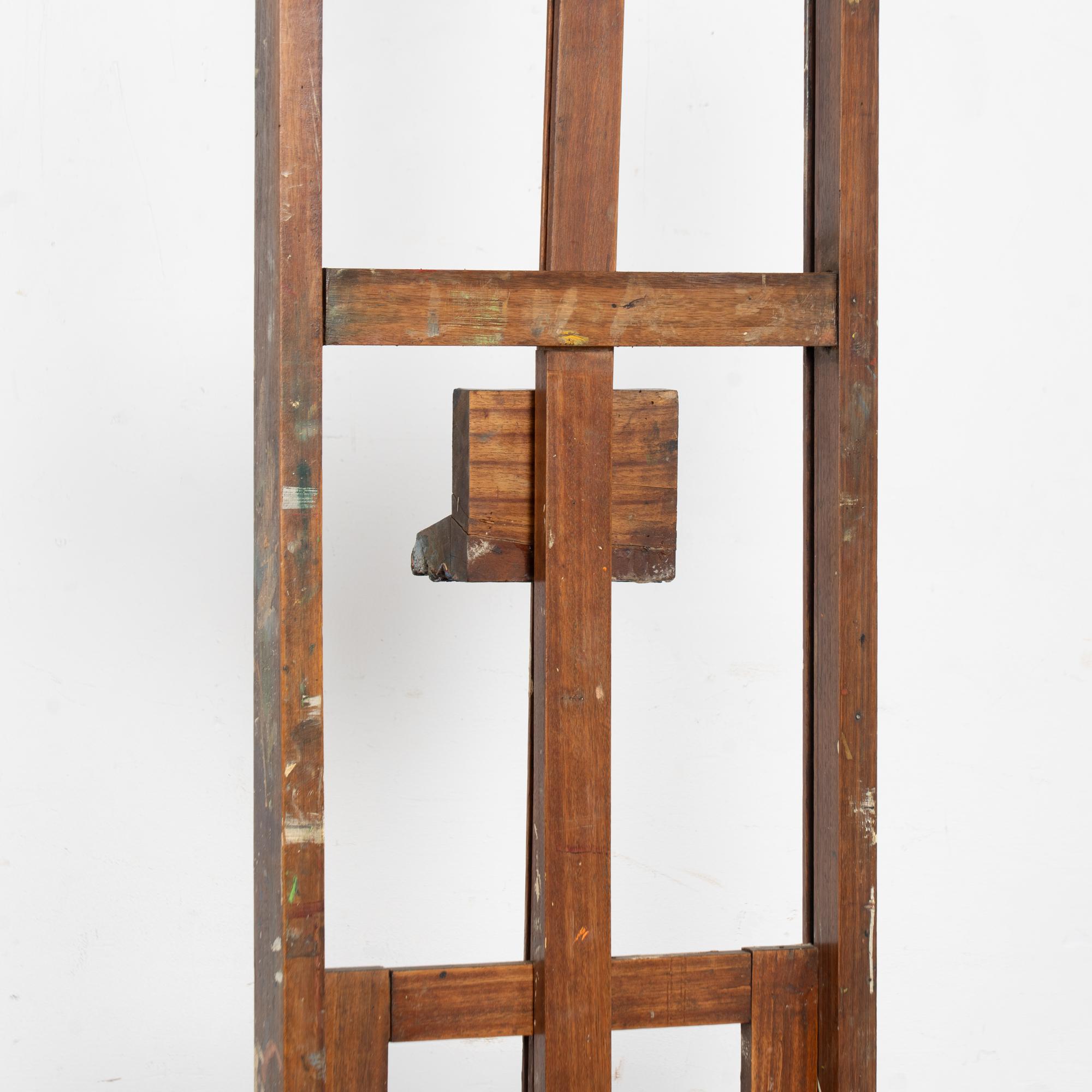 All areas of distress are reflective of age and use, and do not impact the function of this easel (which is still adjustable). Sold in vintage used condition.