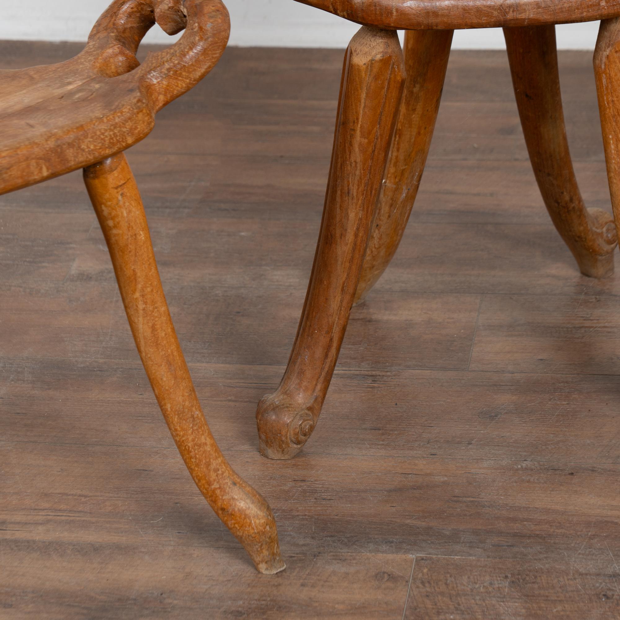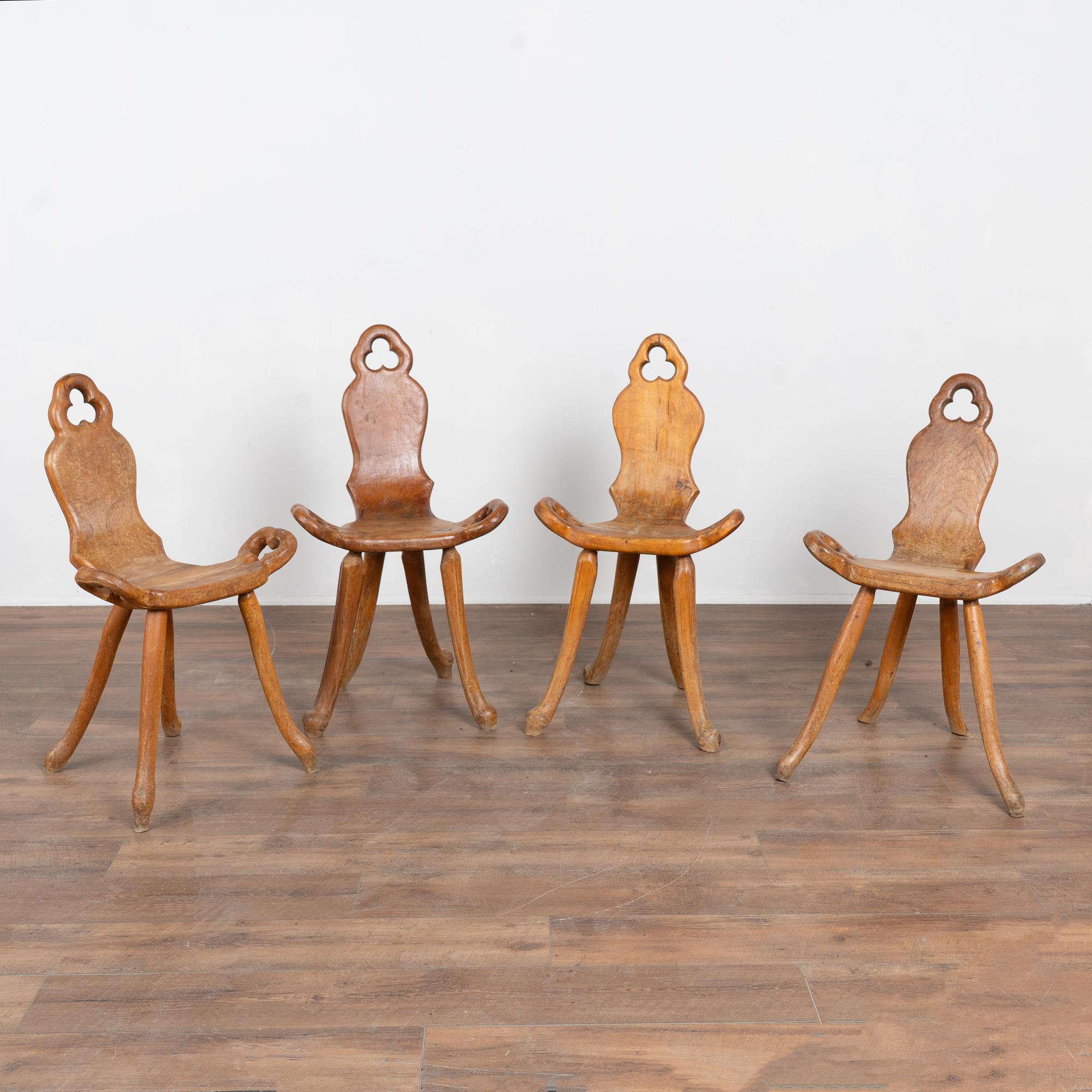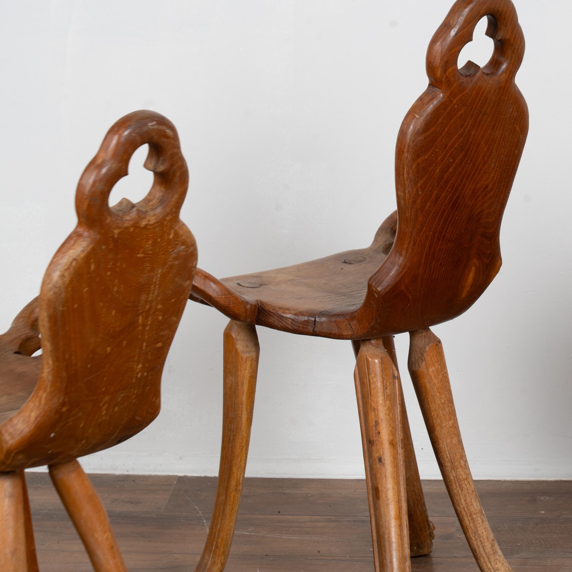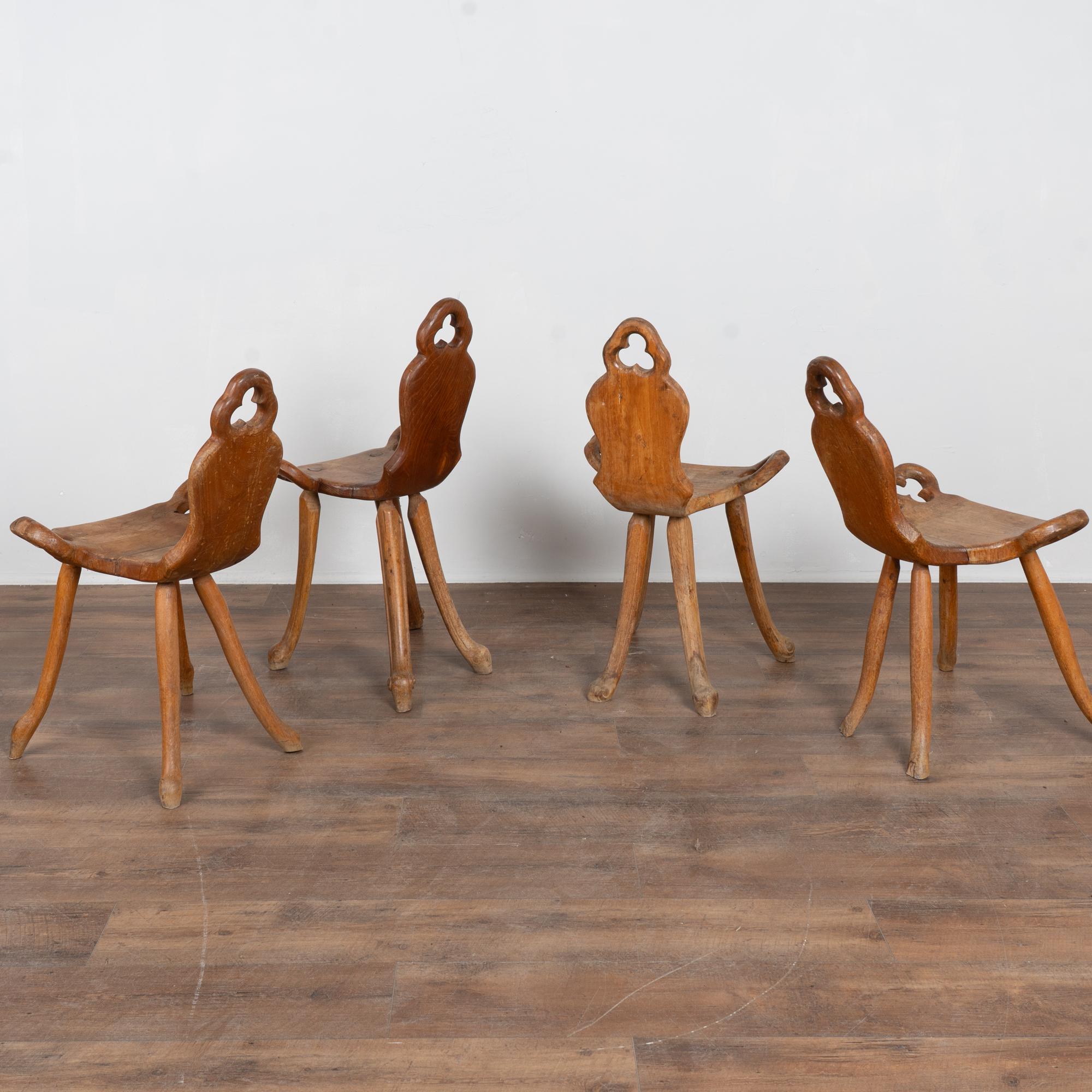 Restored, strong, and stable, these chairs are ready for use. Their compact scale and bold form make them striking in small spaces, and they may be used indoors or easily moved outdoors. An unusual and visually compelling set reflecting Italian brutalist design and functional folk craftsmanship.