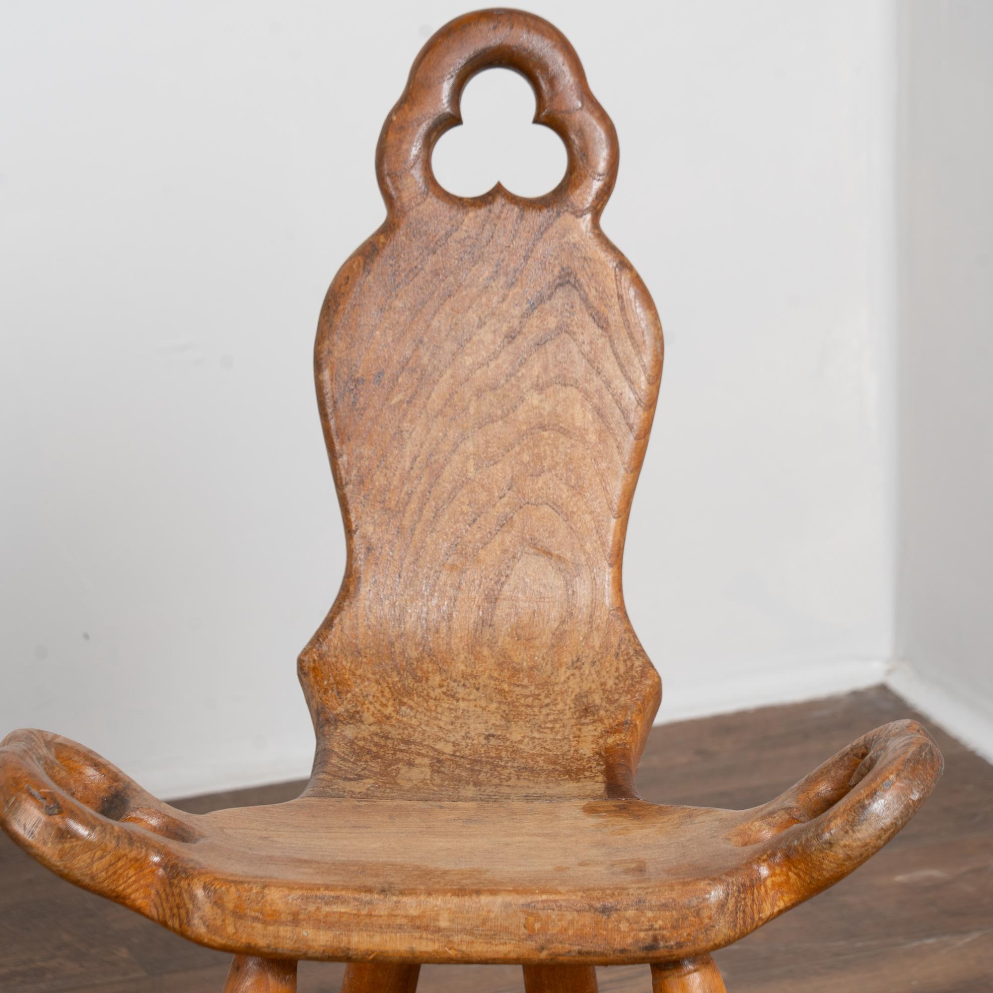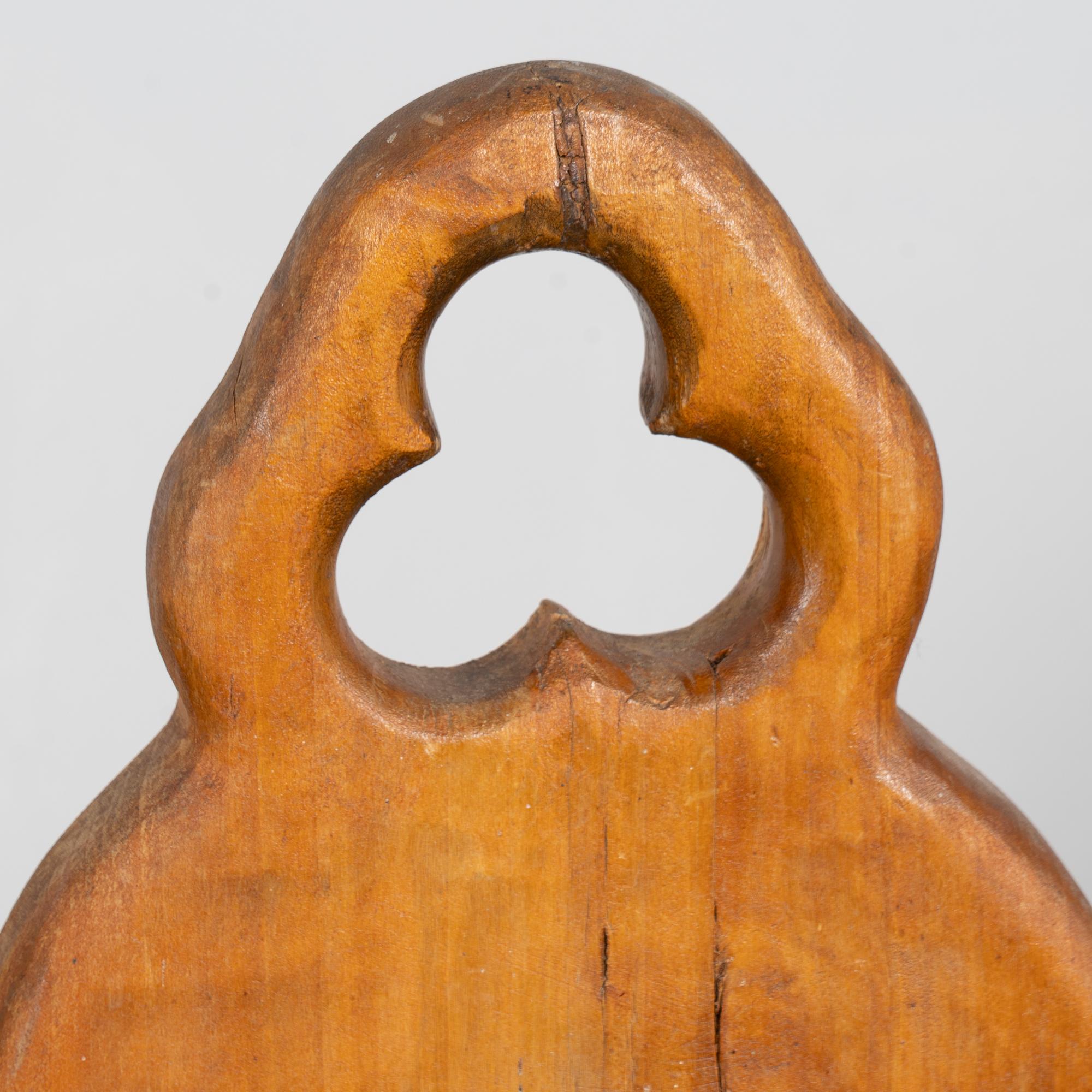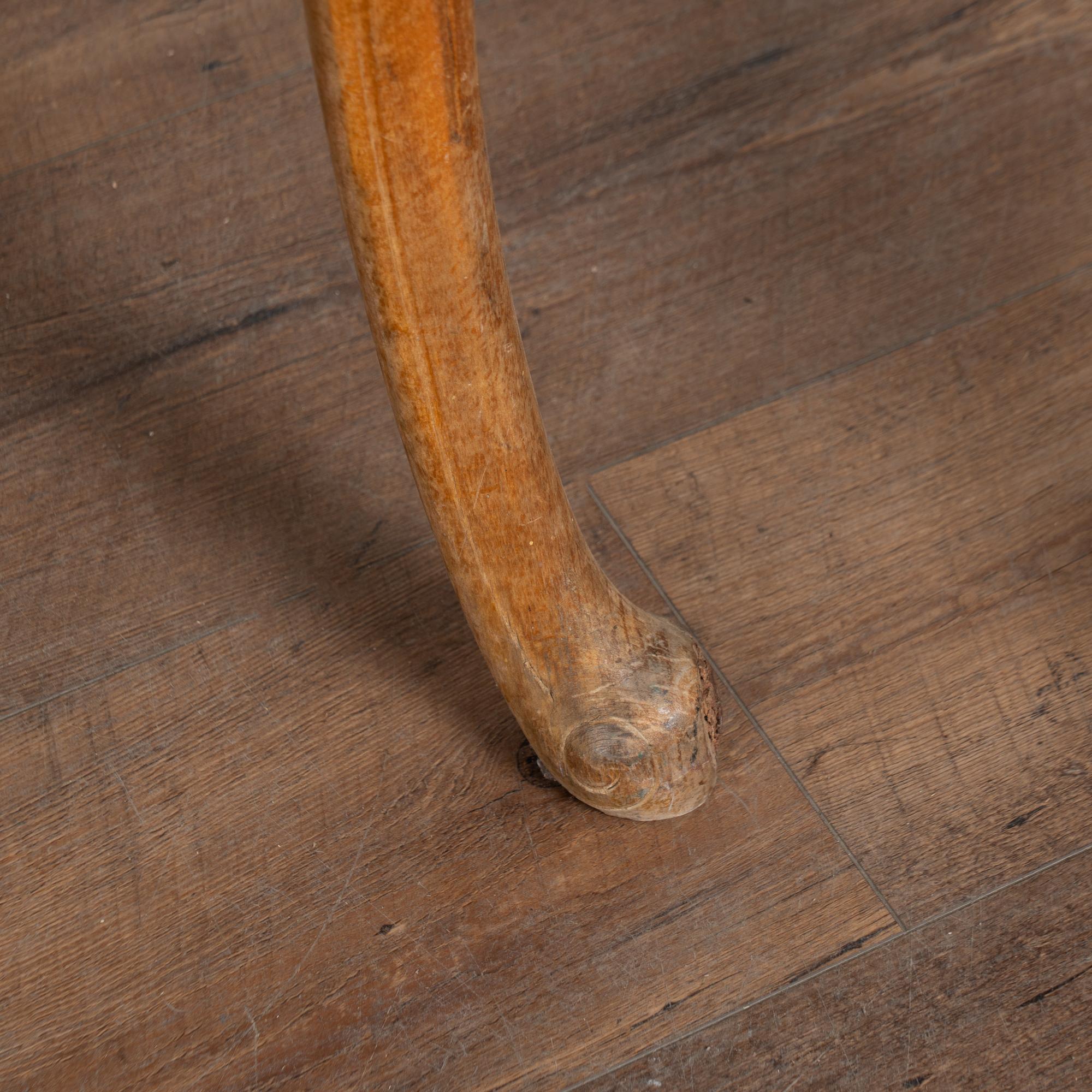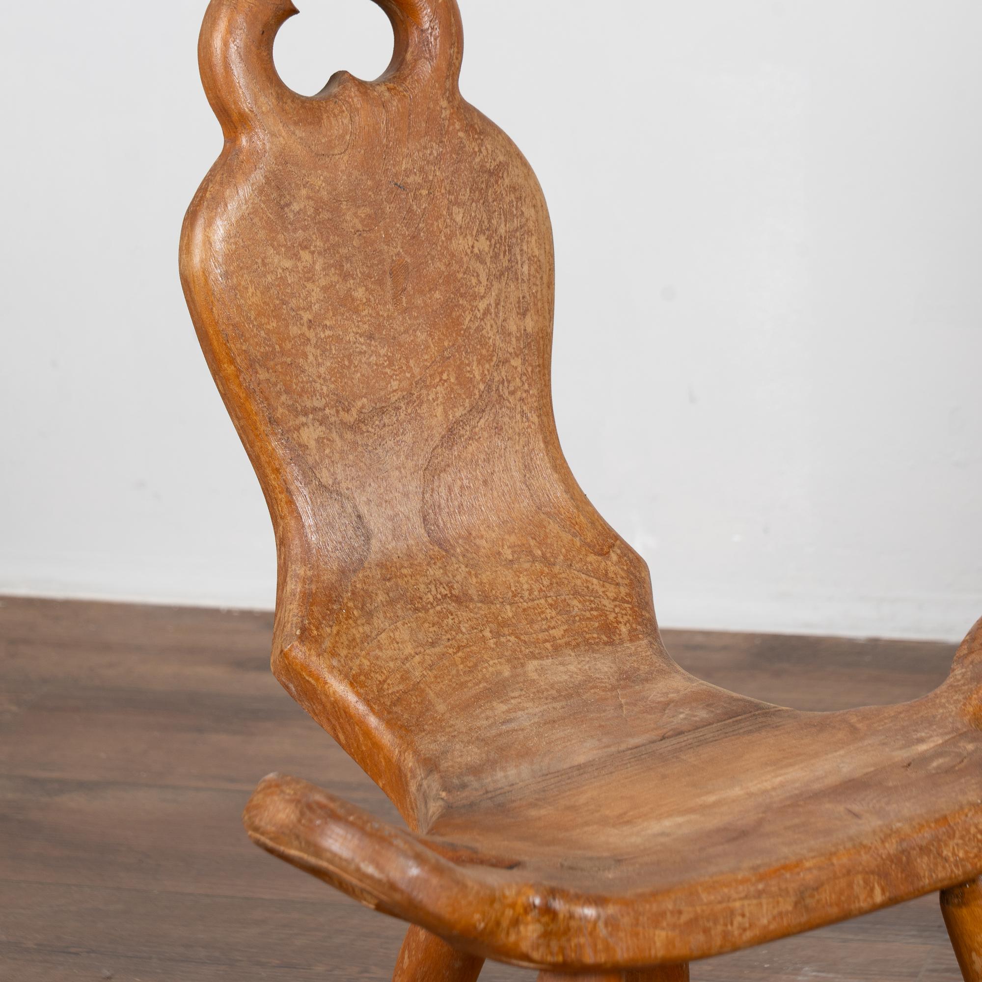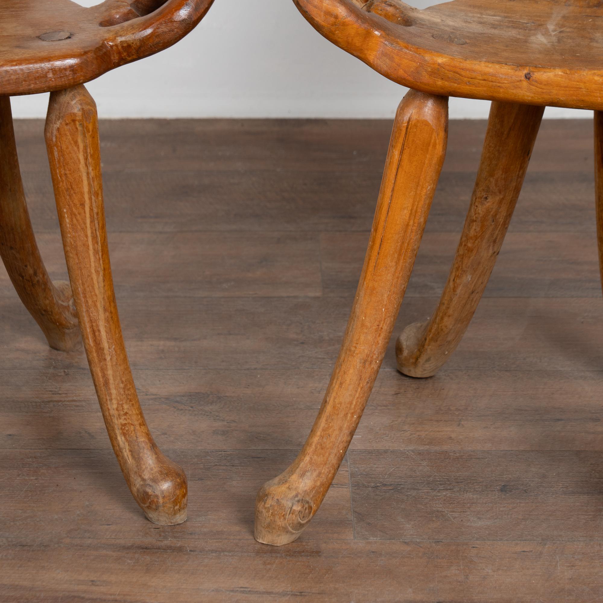 20th-century set of four Italian brutalist-style birthing chairs carved from solid hardwood. These sculptural chairs feature integrated handholds on each side, originally intended to assist with breathing and support during the birthing process. The curved seat and back are formed as a continuous sculptural shape, supported by four legs built directly into the design.