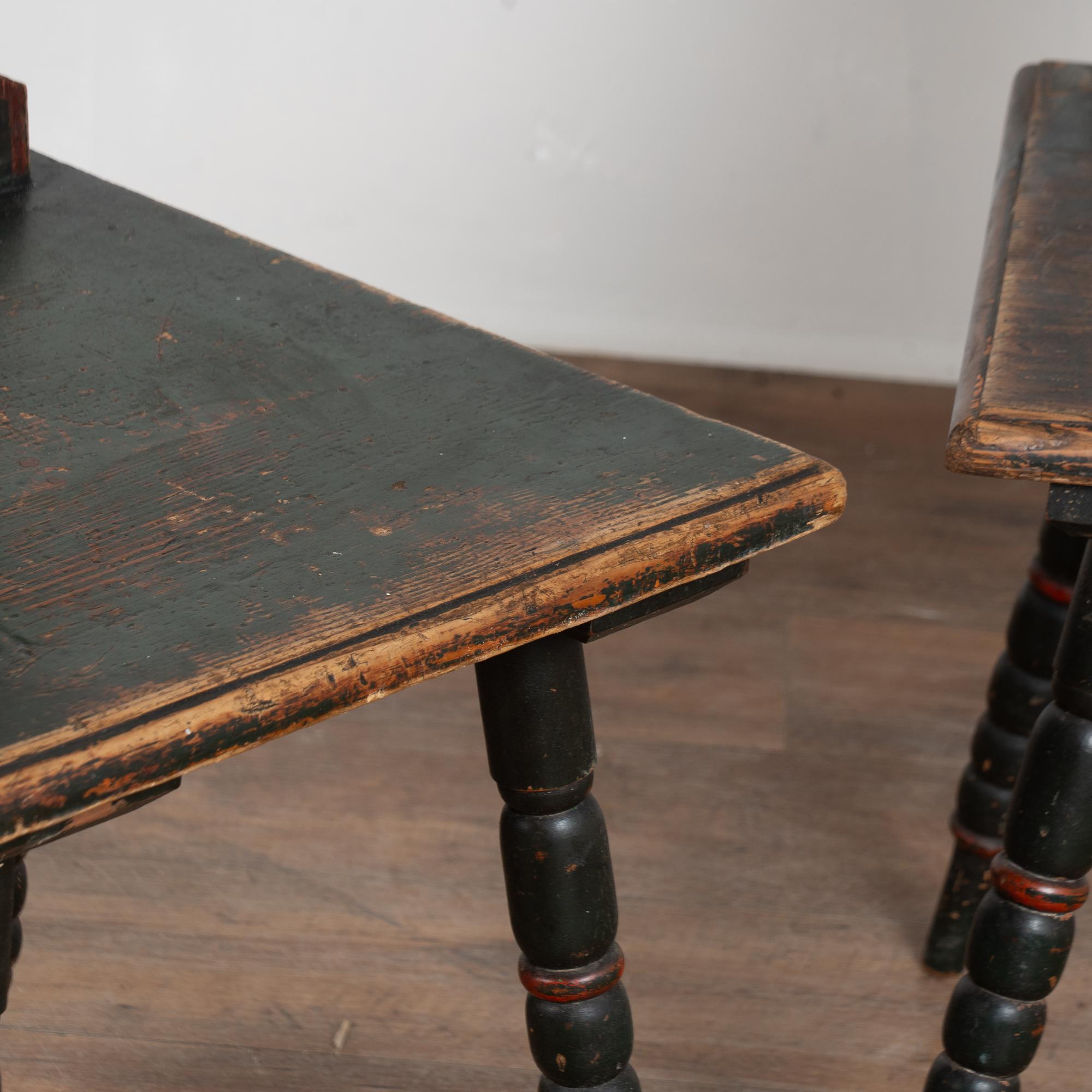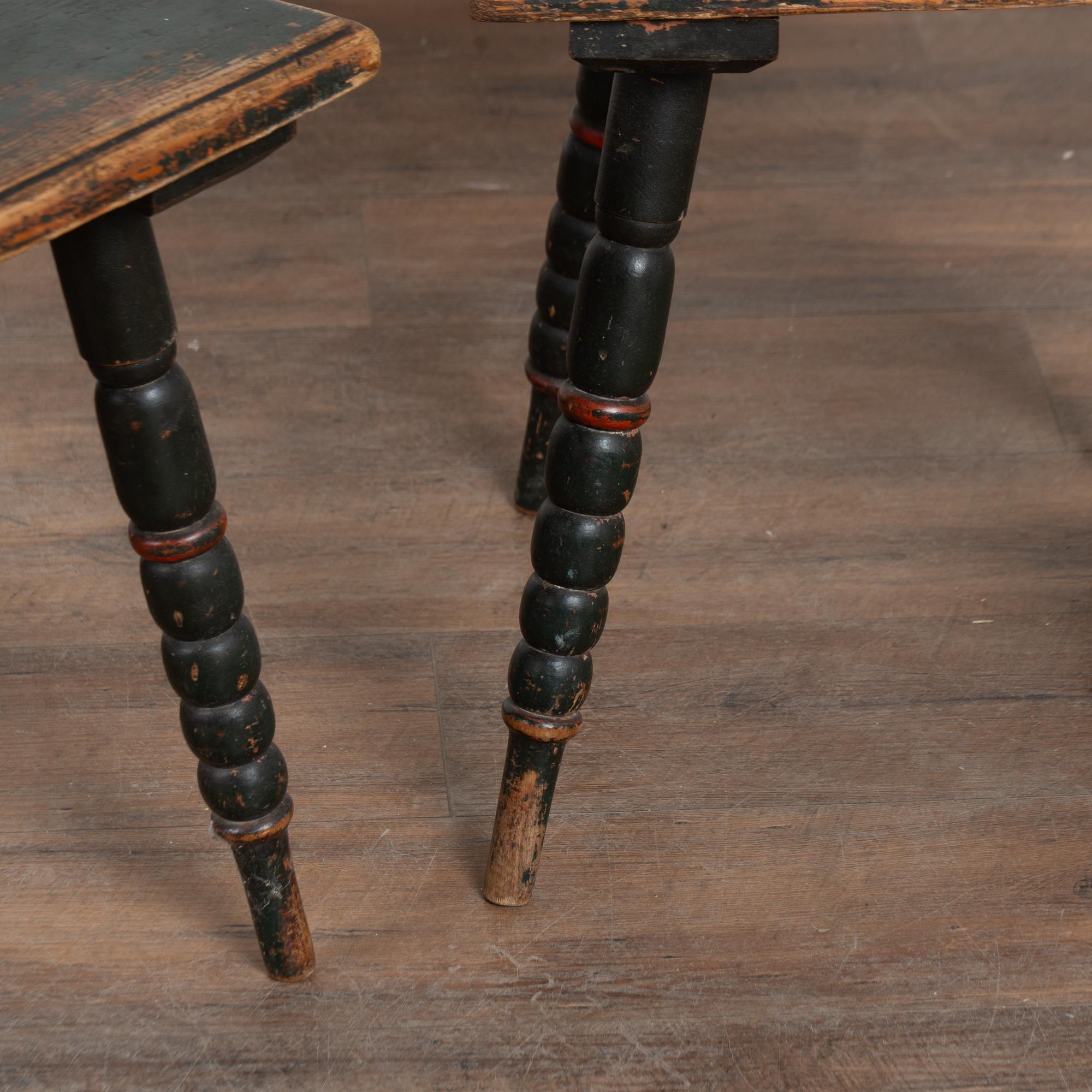 Scratches, cracks, and layered paint wear reflect long use and folk origins. Restored, strong, and stable, this charming pair is ready for use and represents classic European country craftsmanship with decorative appeal.