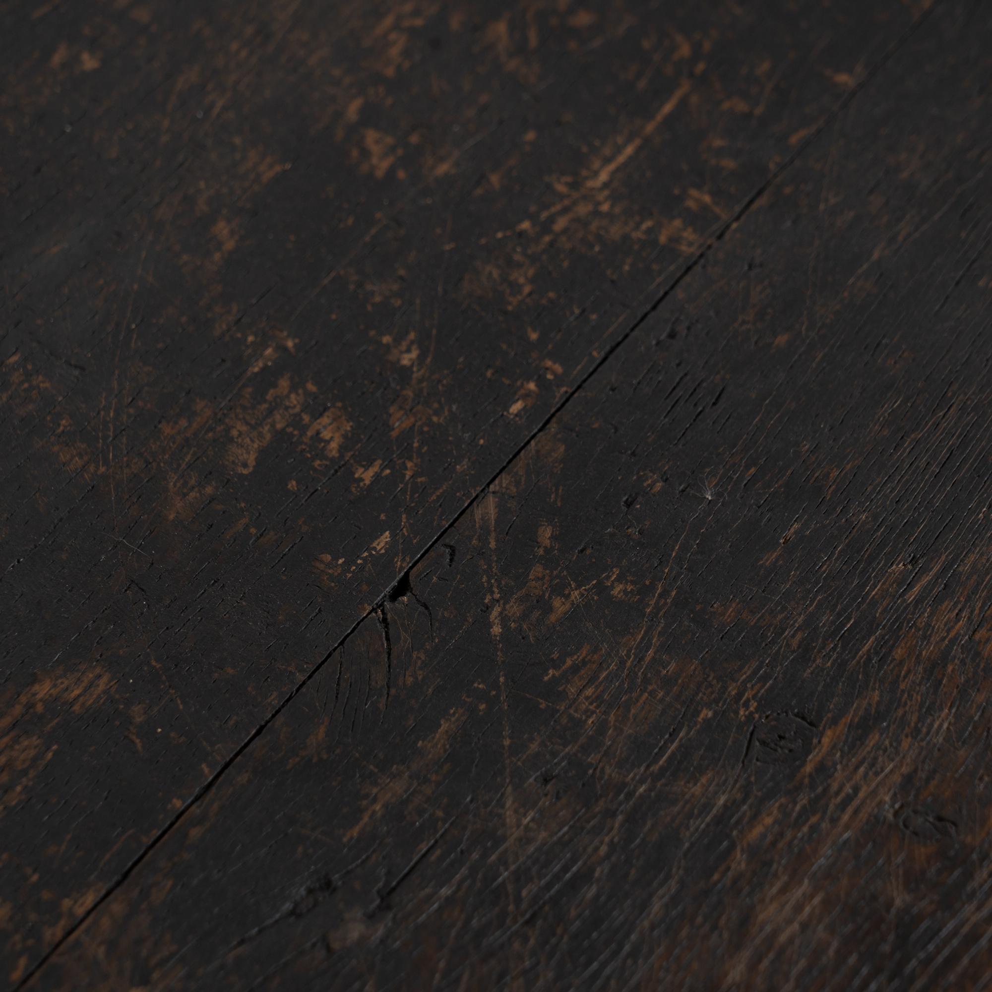 Early 19th-century Swedish oak side table featuring carved tapered legs and a single drawer with carved leaf motif. The tabletop is framed with simple carved detailing, enhancing the refined yet understated design. The original black painted finish is heavily distressed from years of use, revealing the natural oak beneath. The top shows multiple cracks, with age-related scratches, dings, and wear visible throughout, all consistent with a table of this age. Restored, strong, stable, and ready for use, this delightful small table offers excellent versatility as an accent or side table.