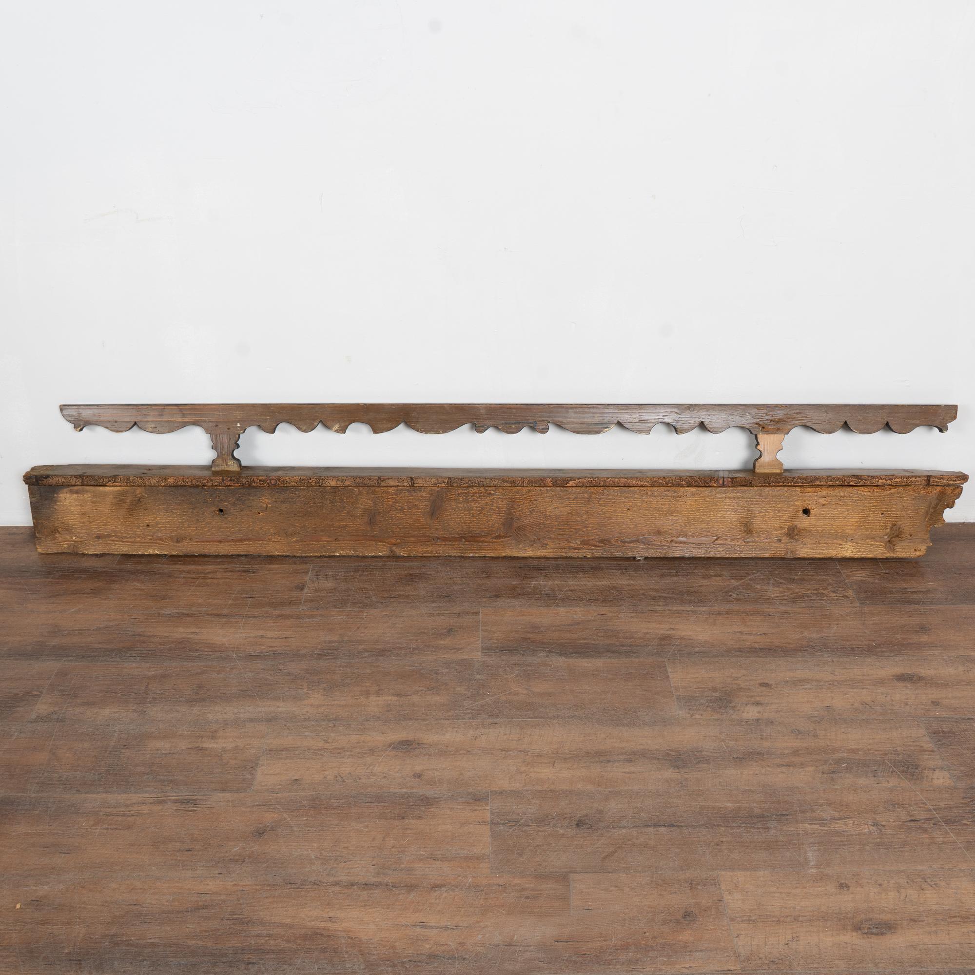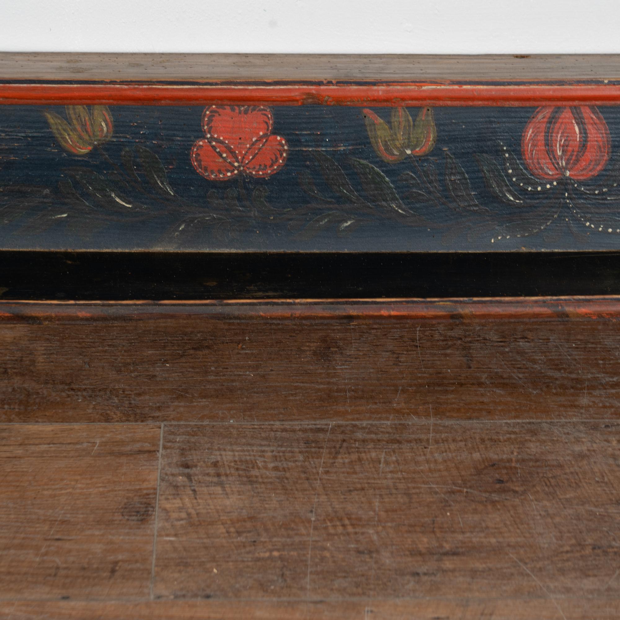 This festive 7' long hanging rack or shelf is a wonderful example of the folk art found in Eastern Europe during the 1800's. The original dark blue painted background has traditional contrasting red trim and floral accents.