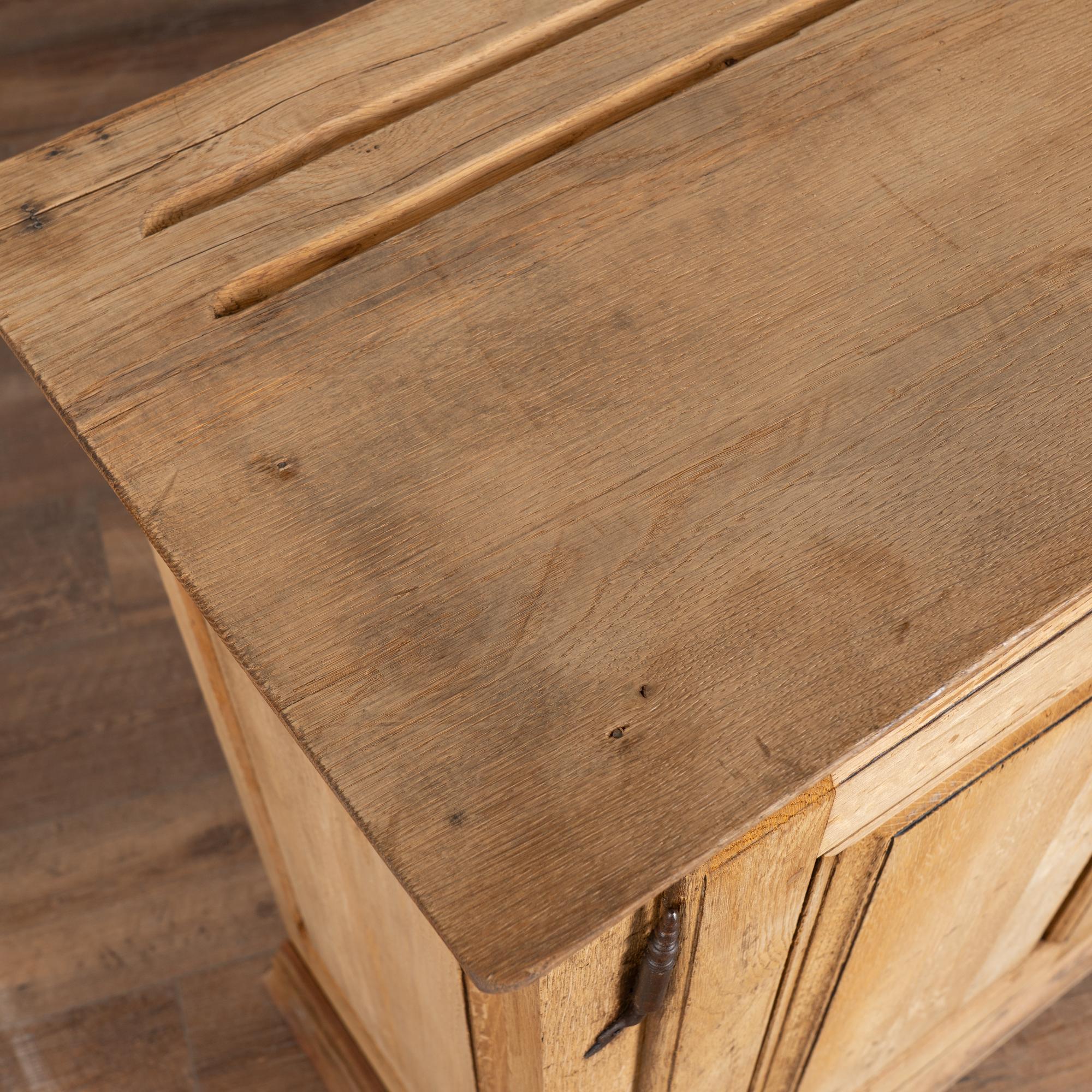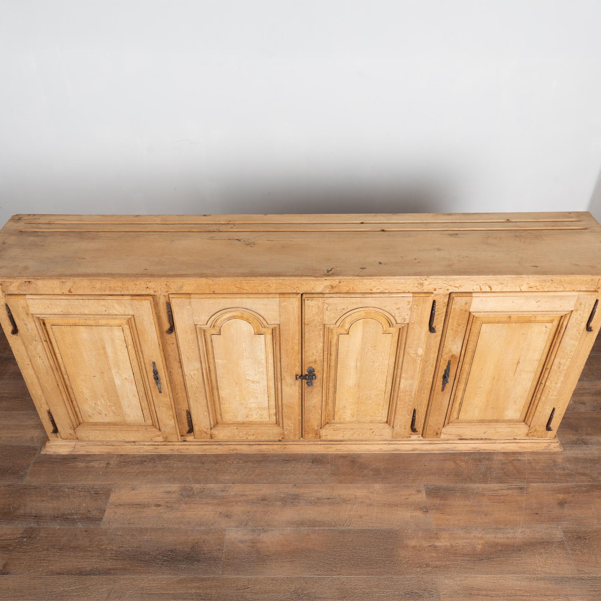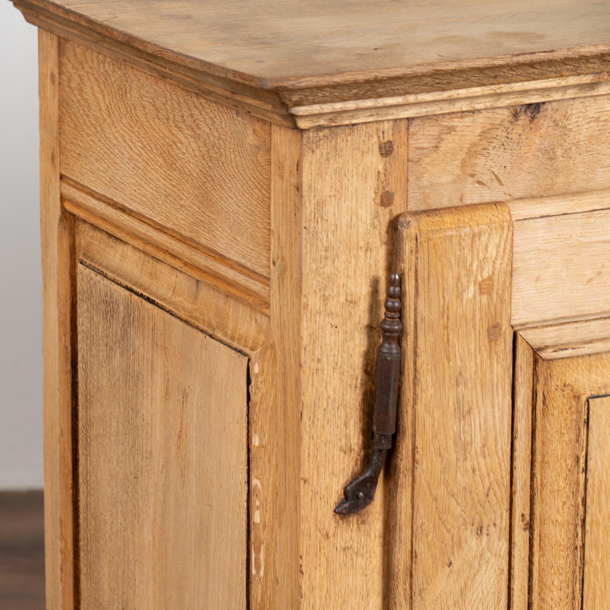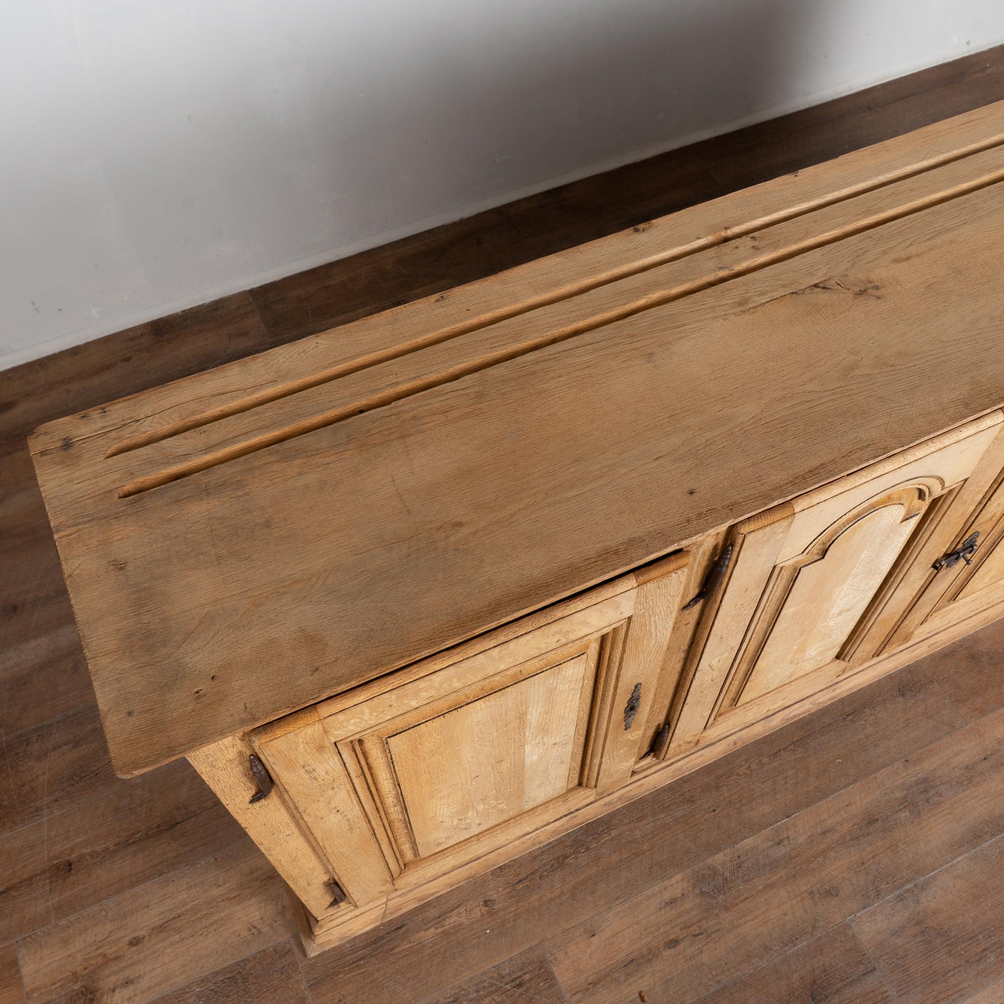 19th century French narrow sideboard crafted in oak with a bleached finish that highlights the natural grain of the wood.
