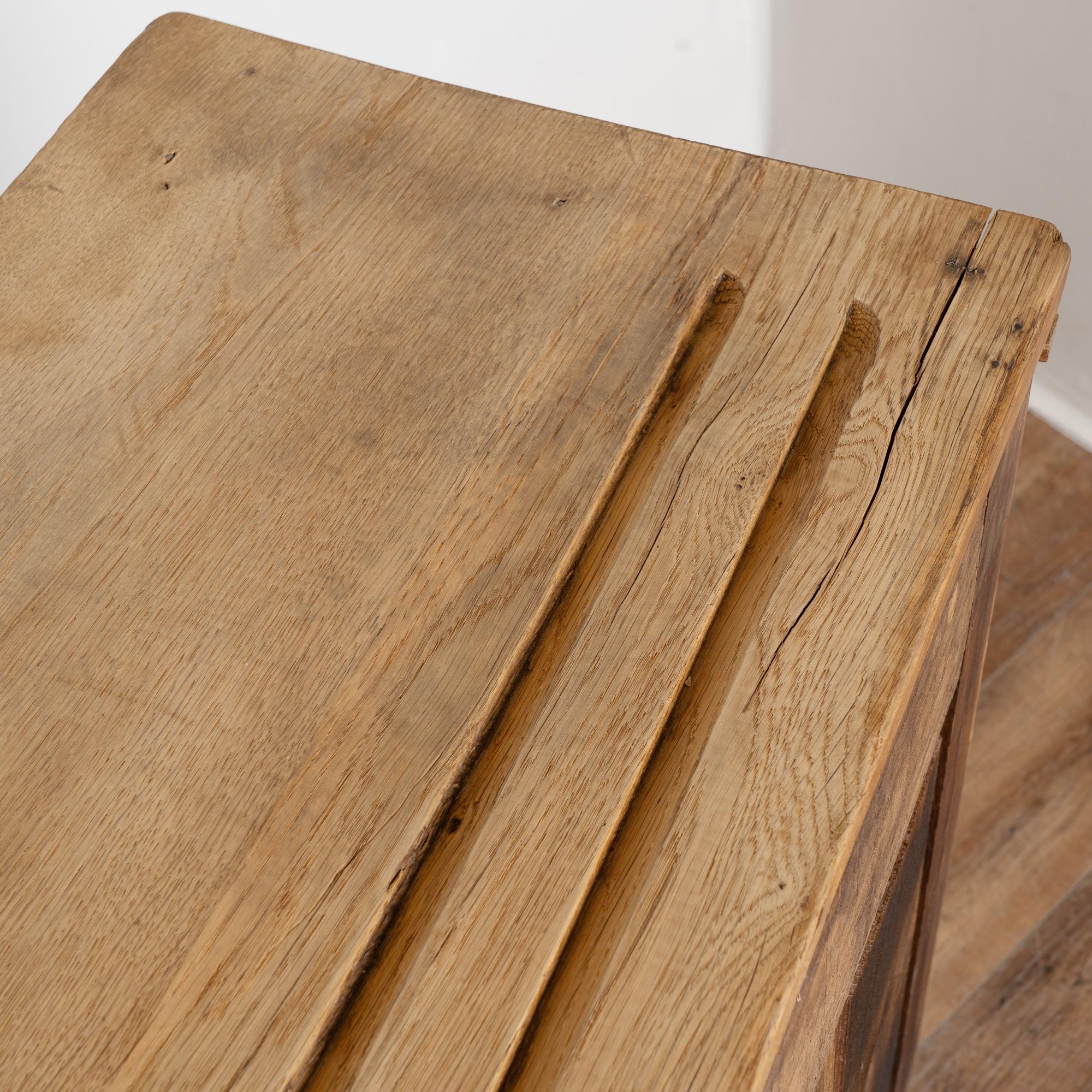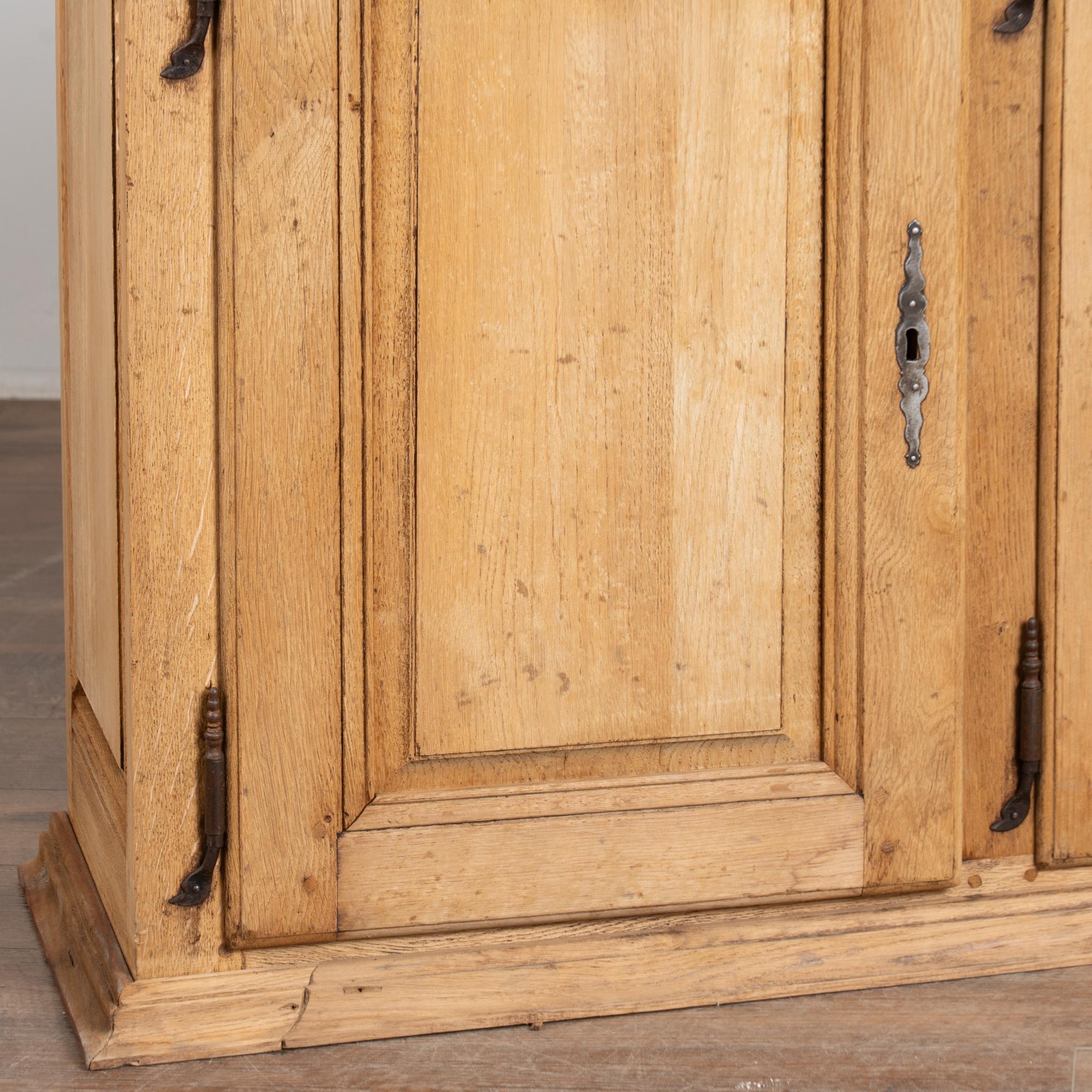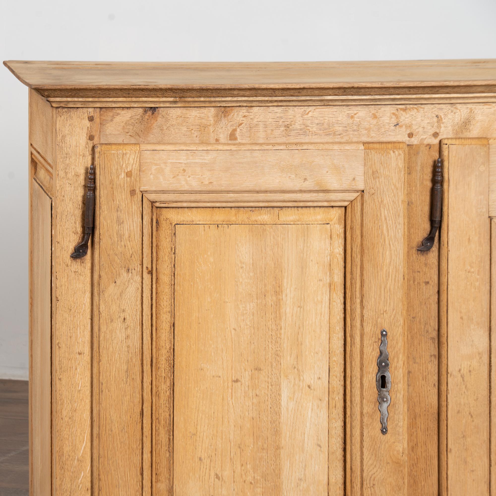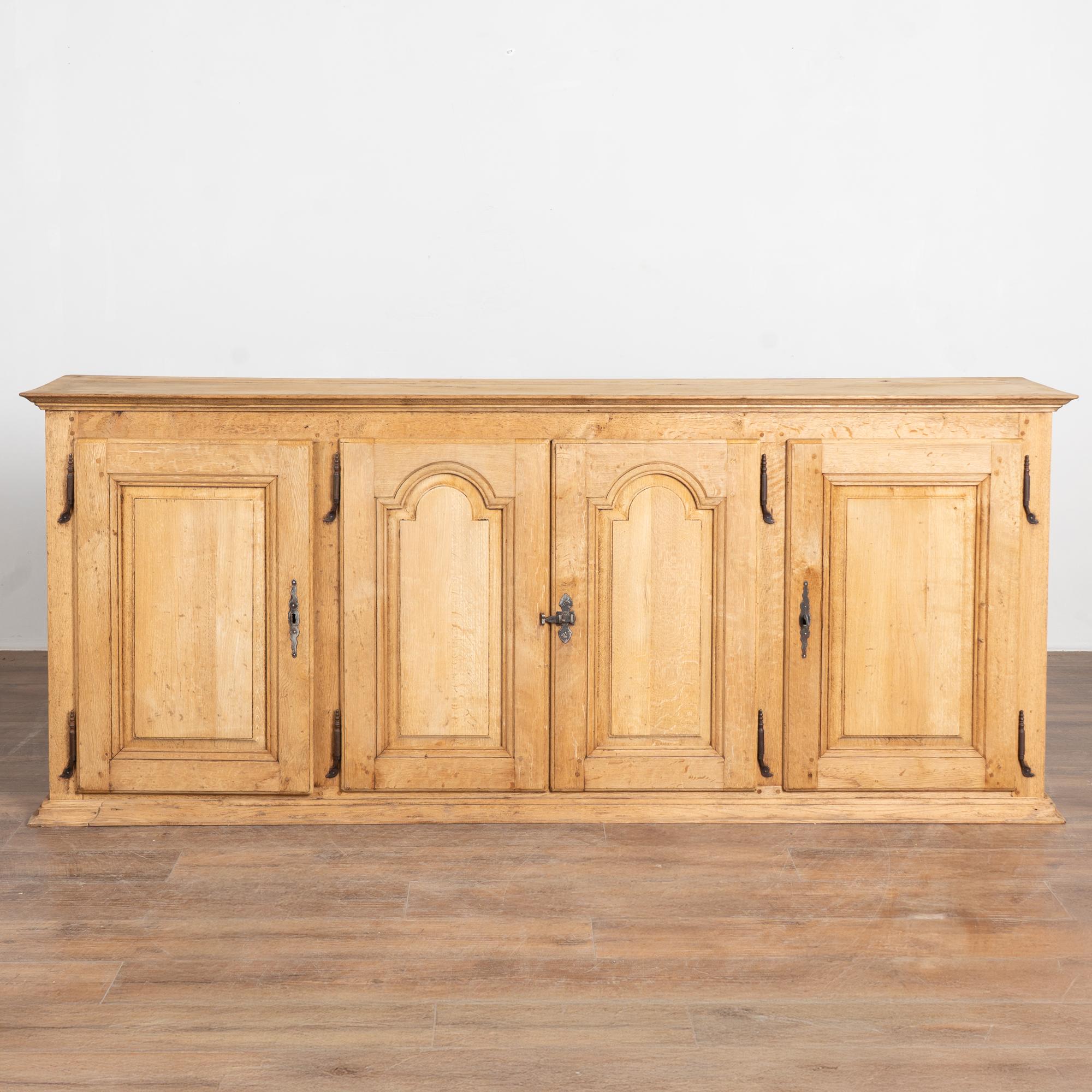 19th century French narrow sideboard crafted in oak with a bleached finish that highlights the natural grain of the wood.