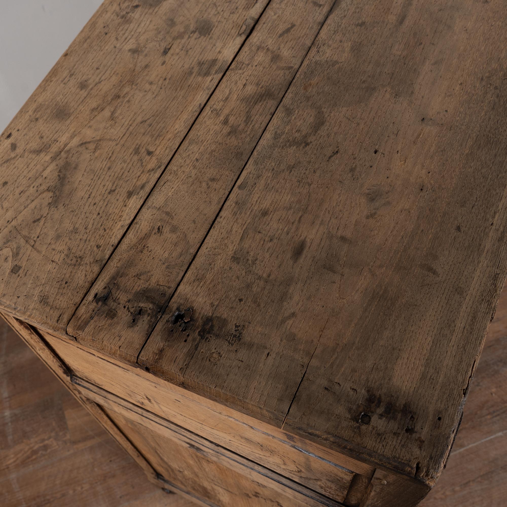Early 19th century French sideboard crafted in oak and finished with a bleached surface, giving the wood a lighter appearance suited for modern interiors.