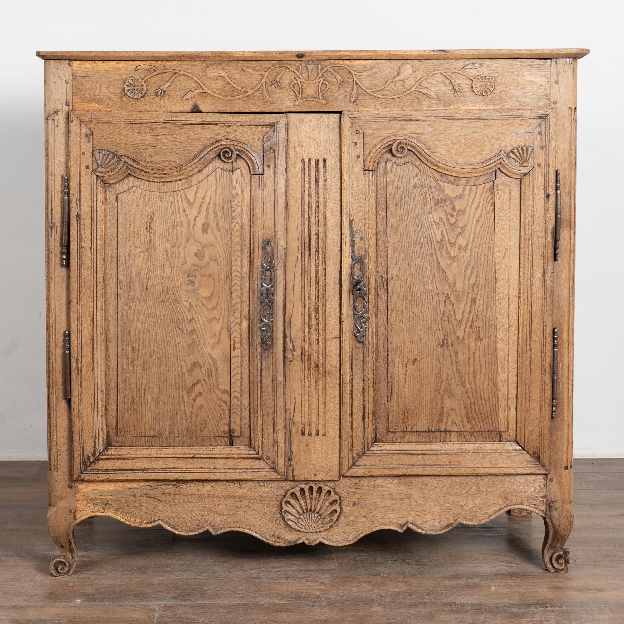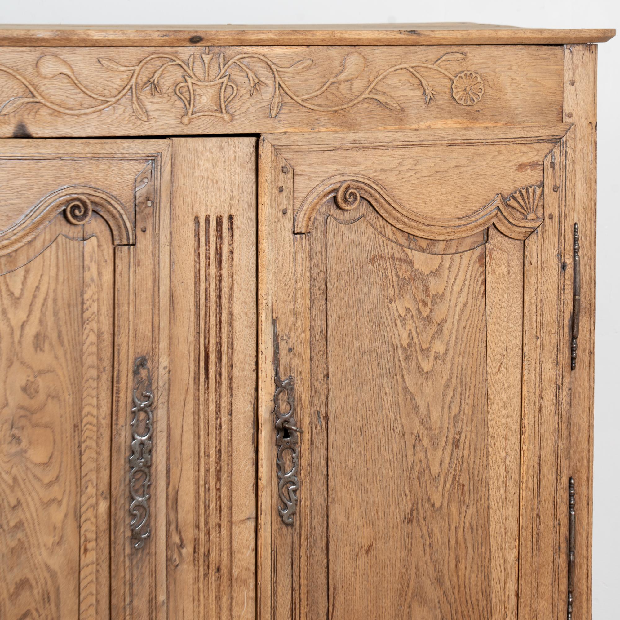 Early 19th century tall French sideboard crafted in oak and finished with a bleached surface that gives the wood a lighter appearance.