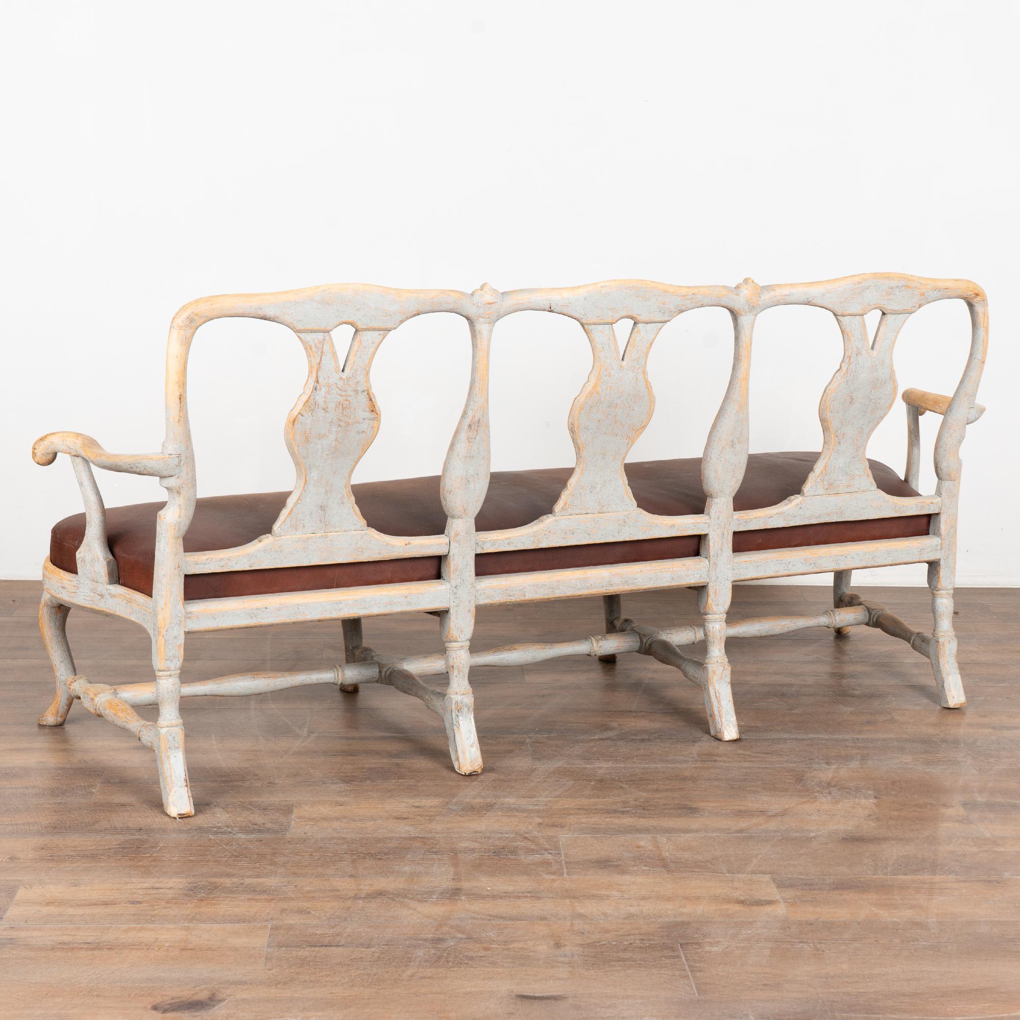 Early 19th century Swedish rococo bench settee crafted in pine. Graceful curves accent the arms, feet, and back, giving the bench an elegant and romantic profile.