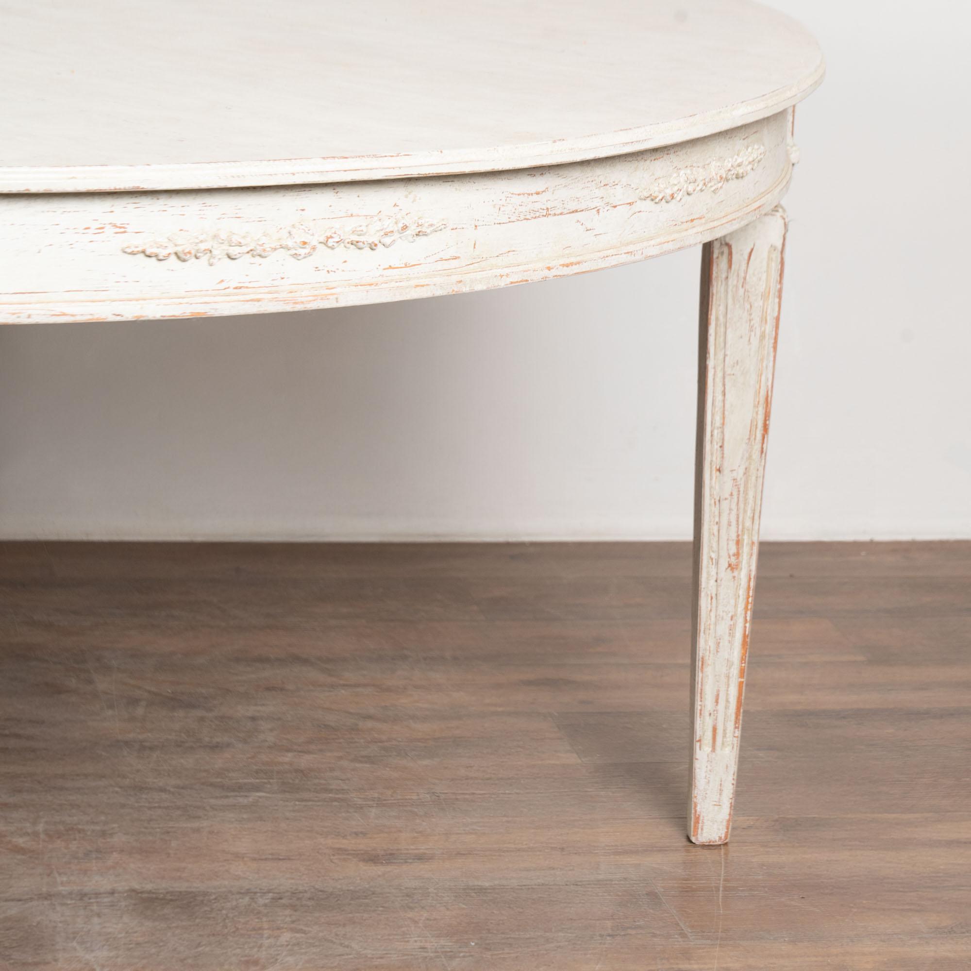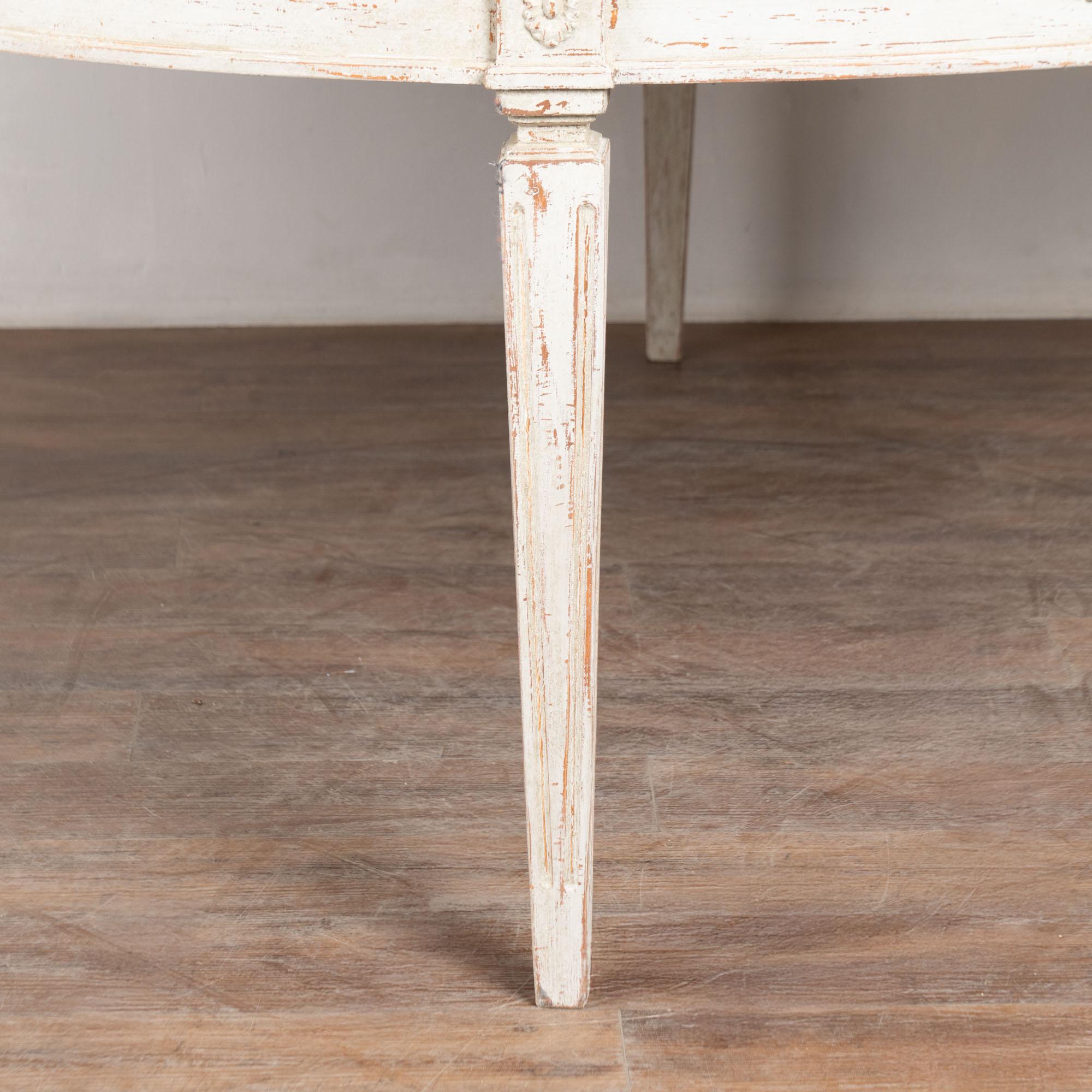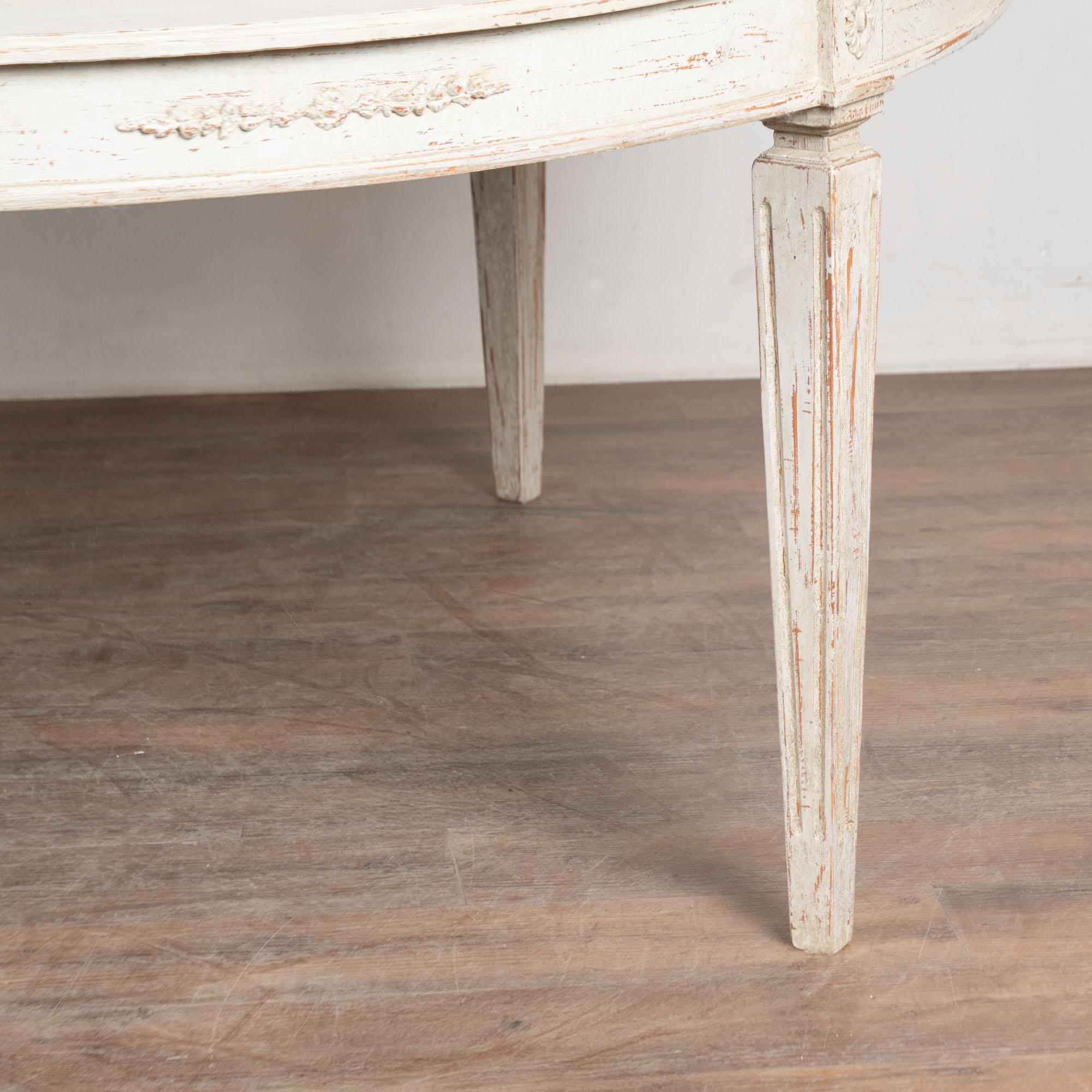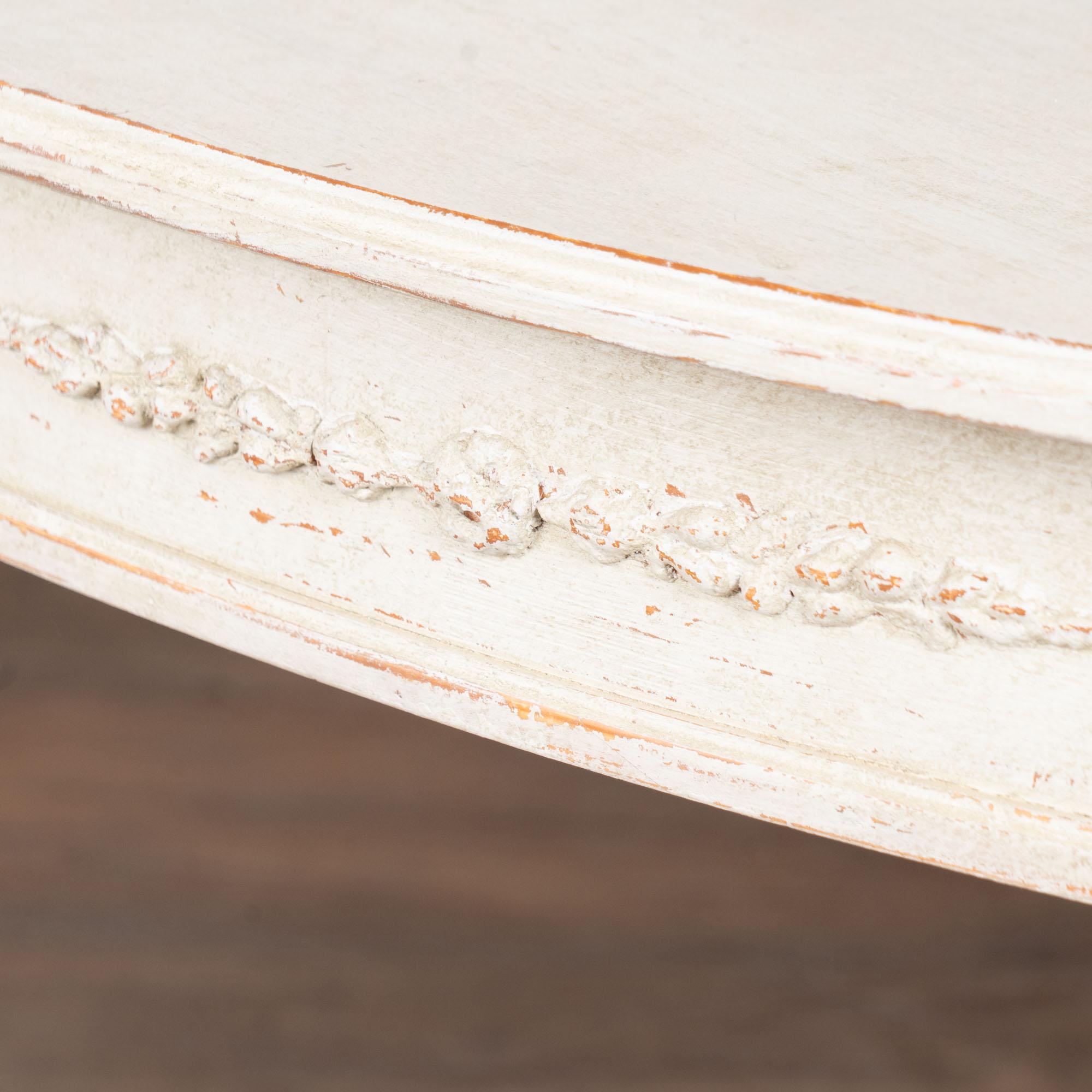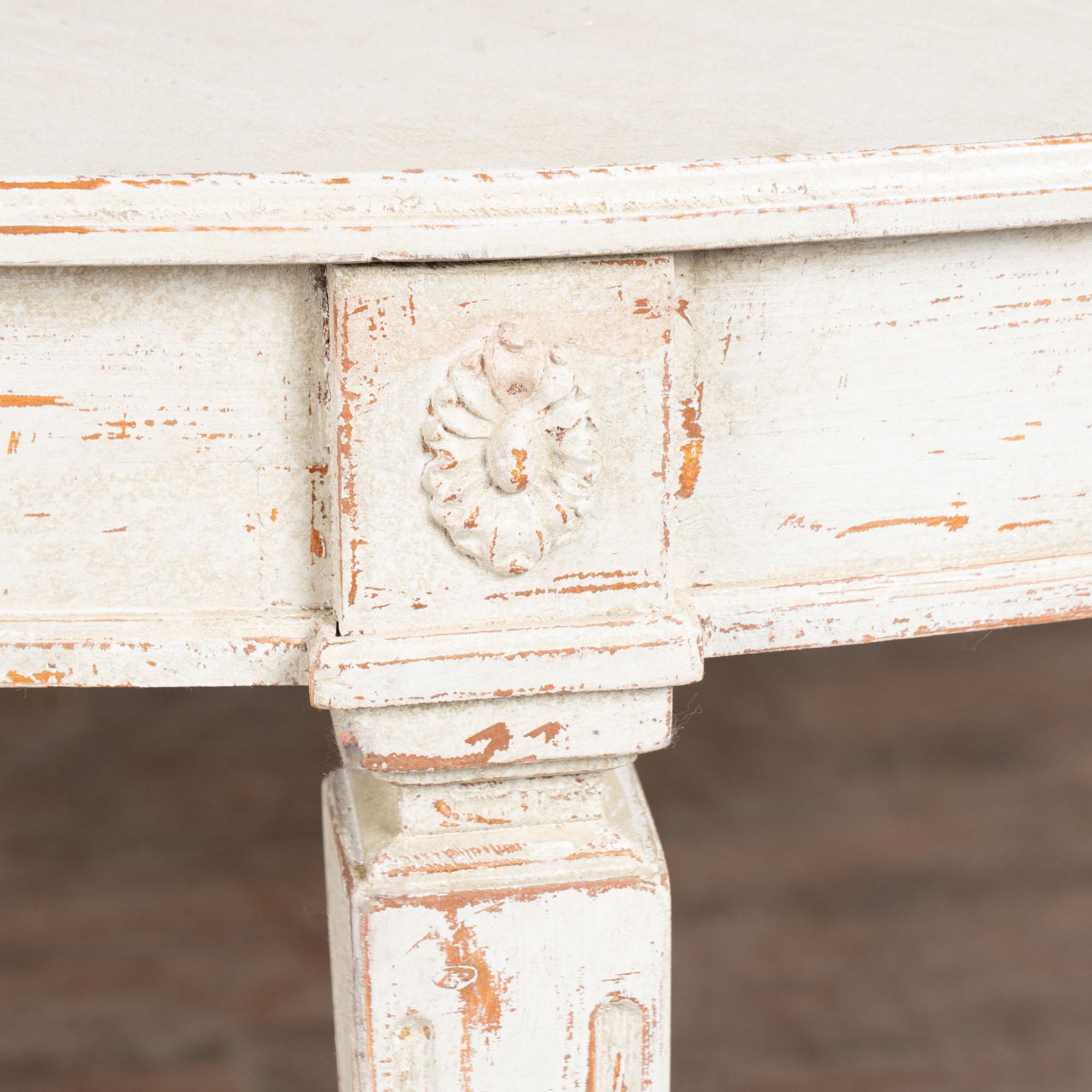 Professionally applied layered antique white painted finish, distressed to fit the look of the Gustavian era.