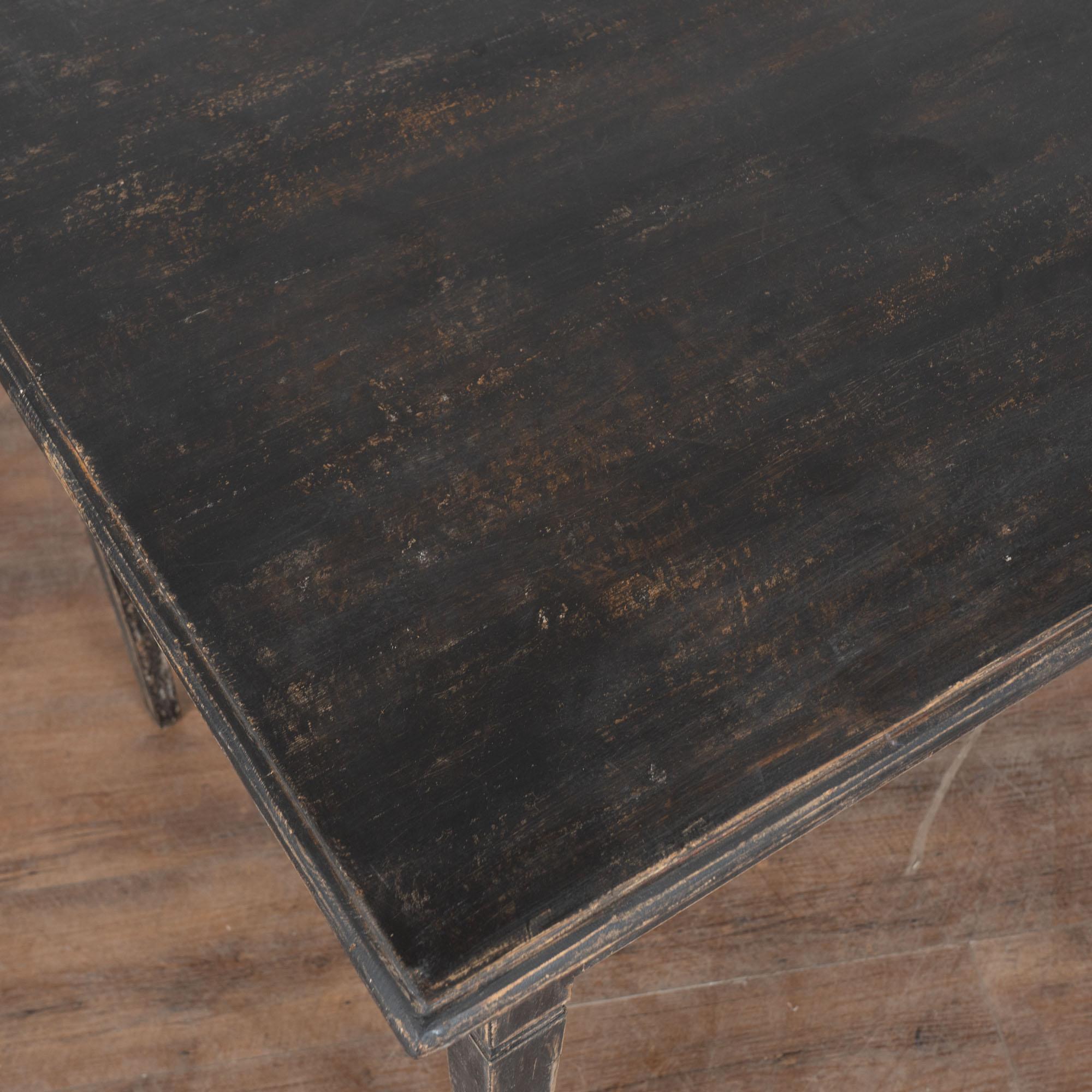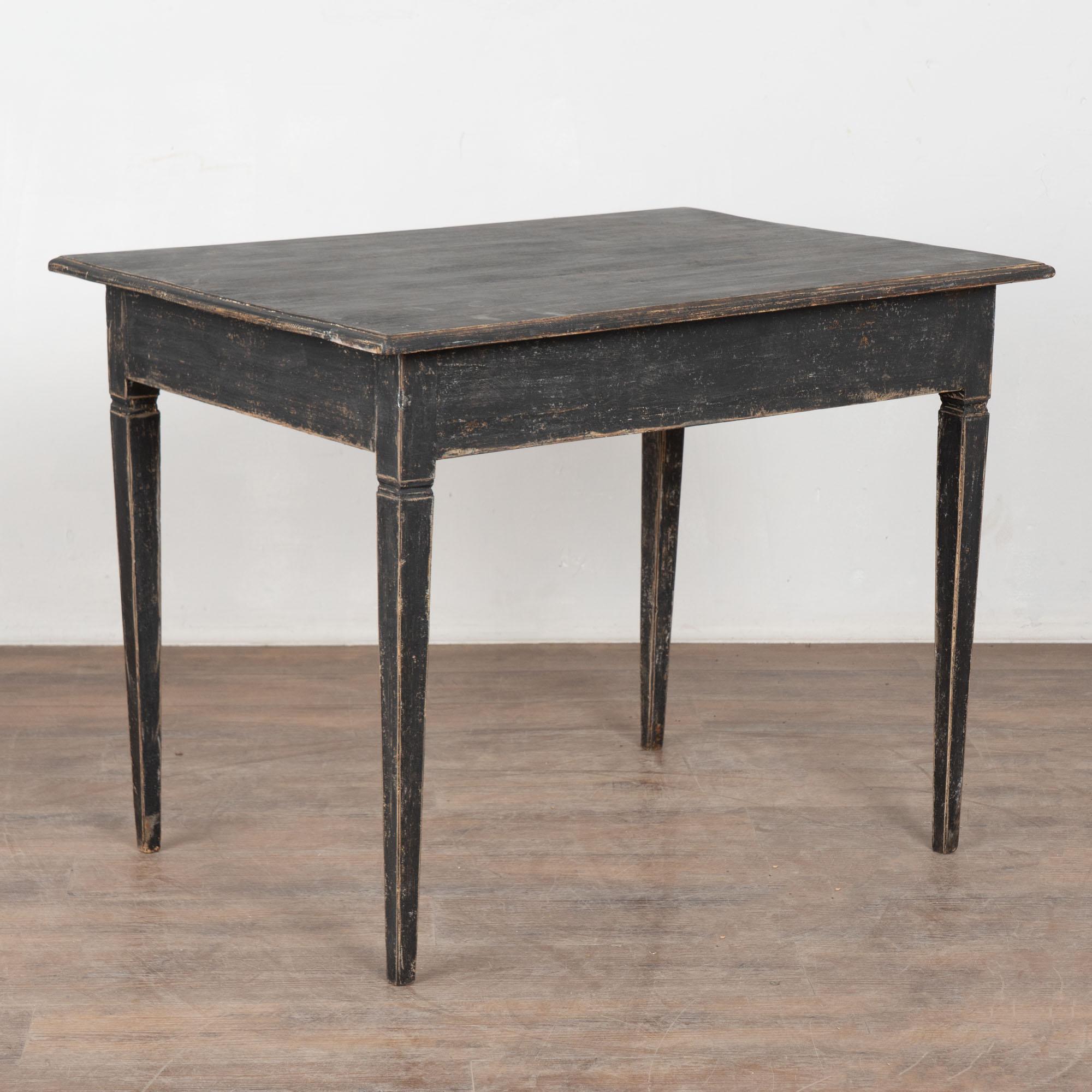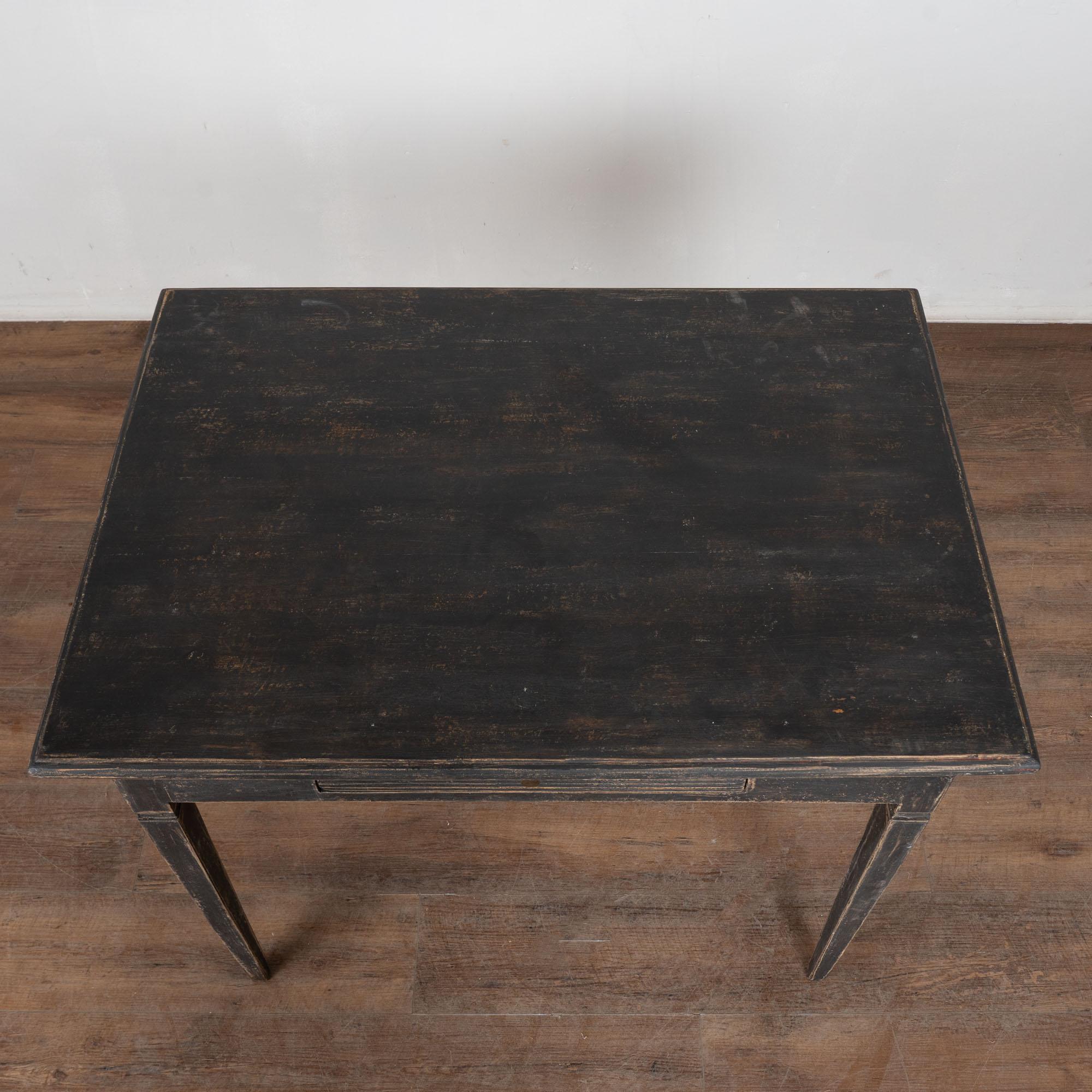 Antique Swedish Gustavian Black Painted Side Table With Drawer. Tapered legs and horizontal fluted carving along single drawer. May also serve as nightstand.