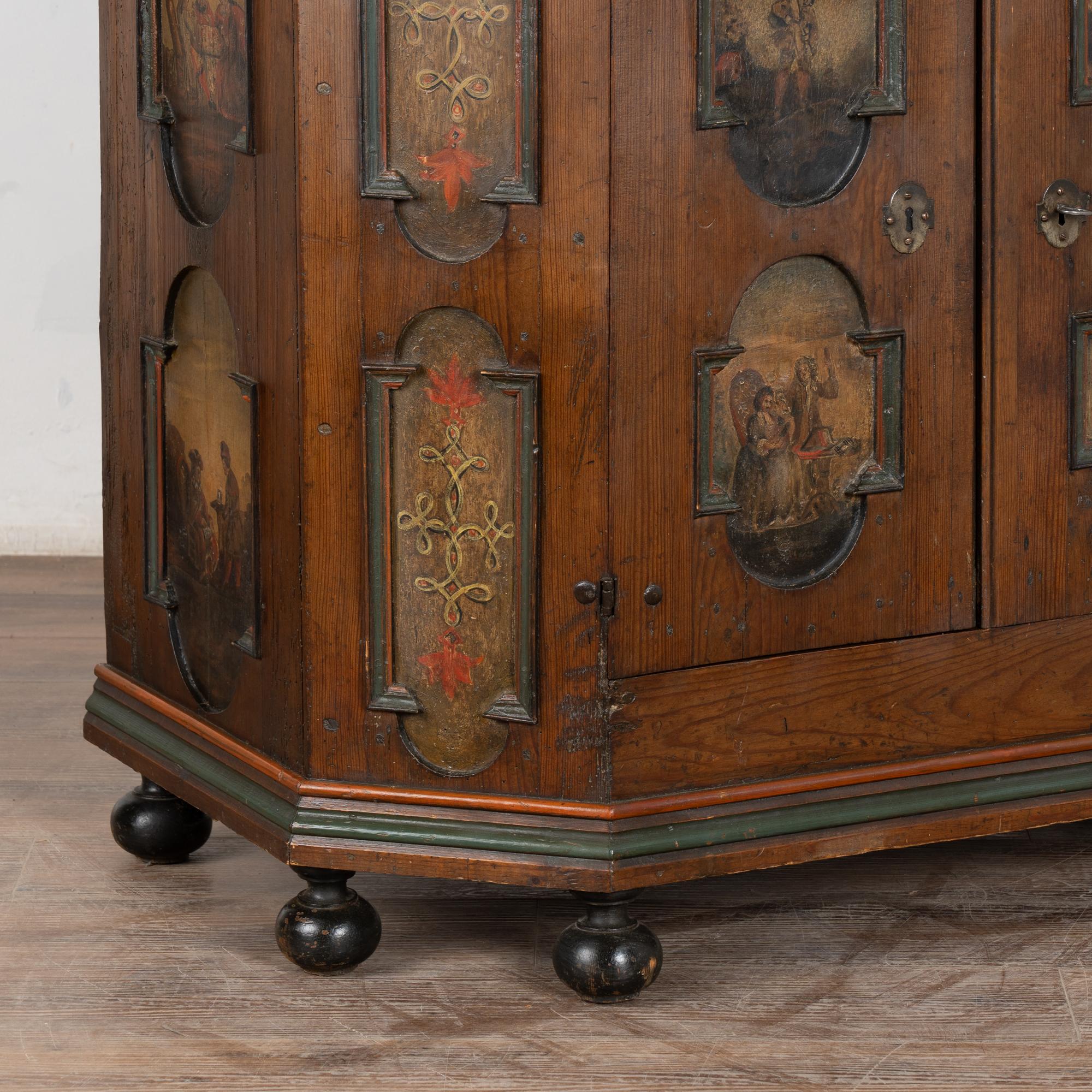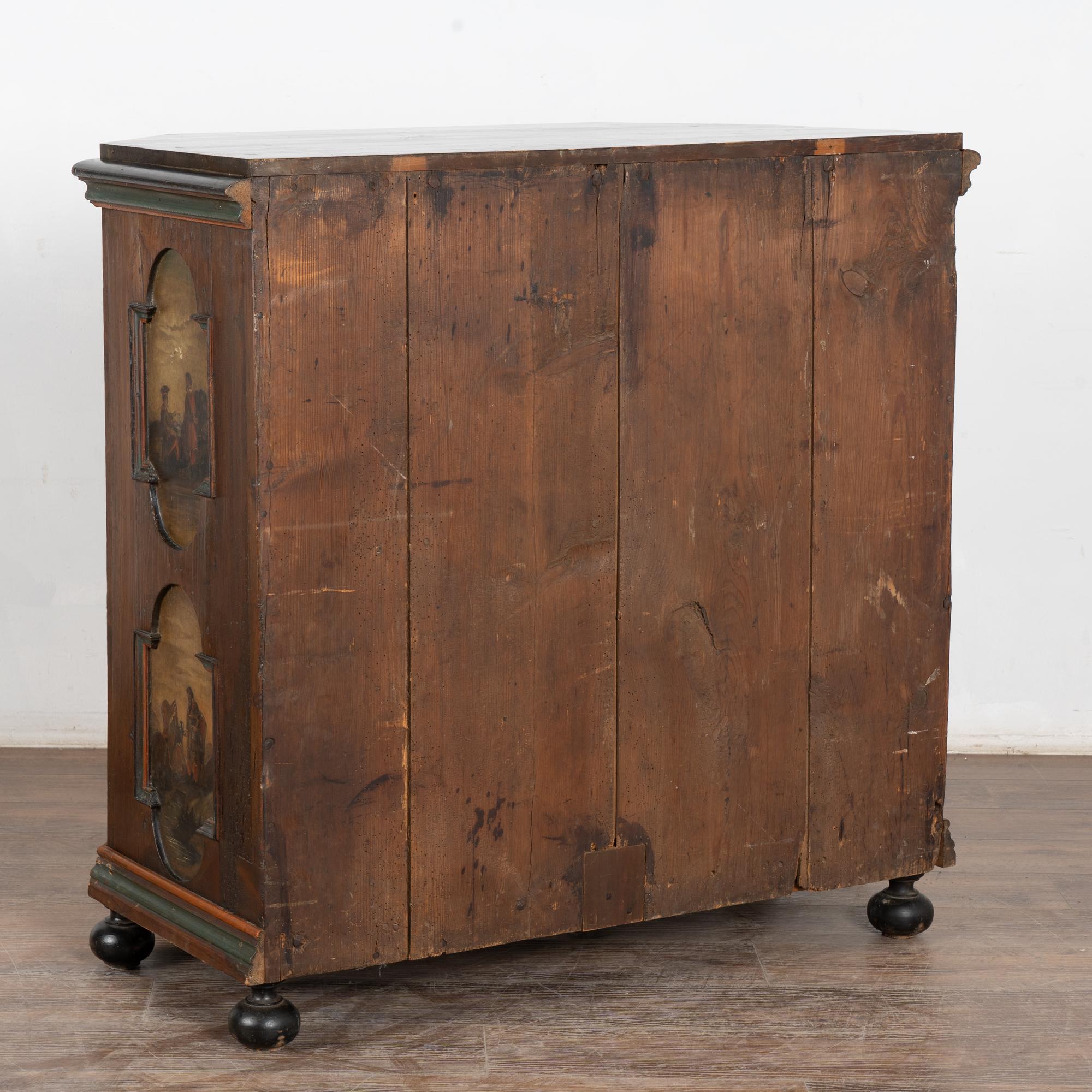 While you can frequently find original painted Swedish trunks, it is difficult to find a cabinet or sideboard with exceptional original folk art paint such as this one.