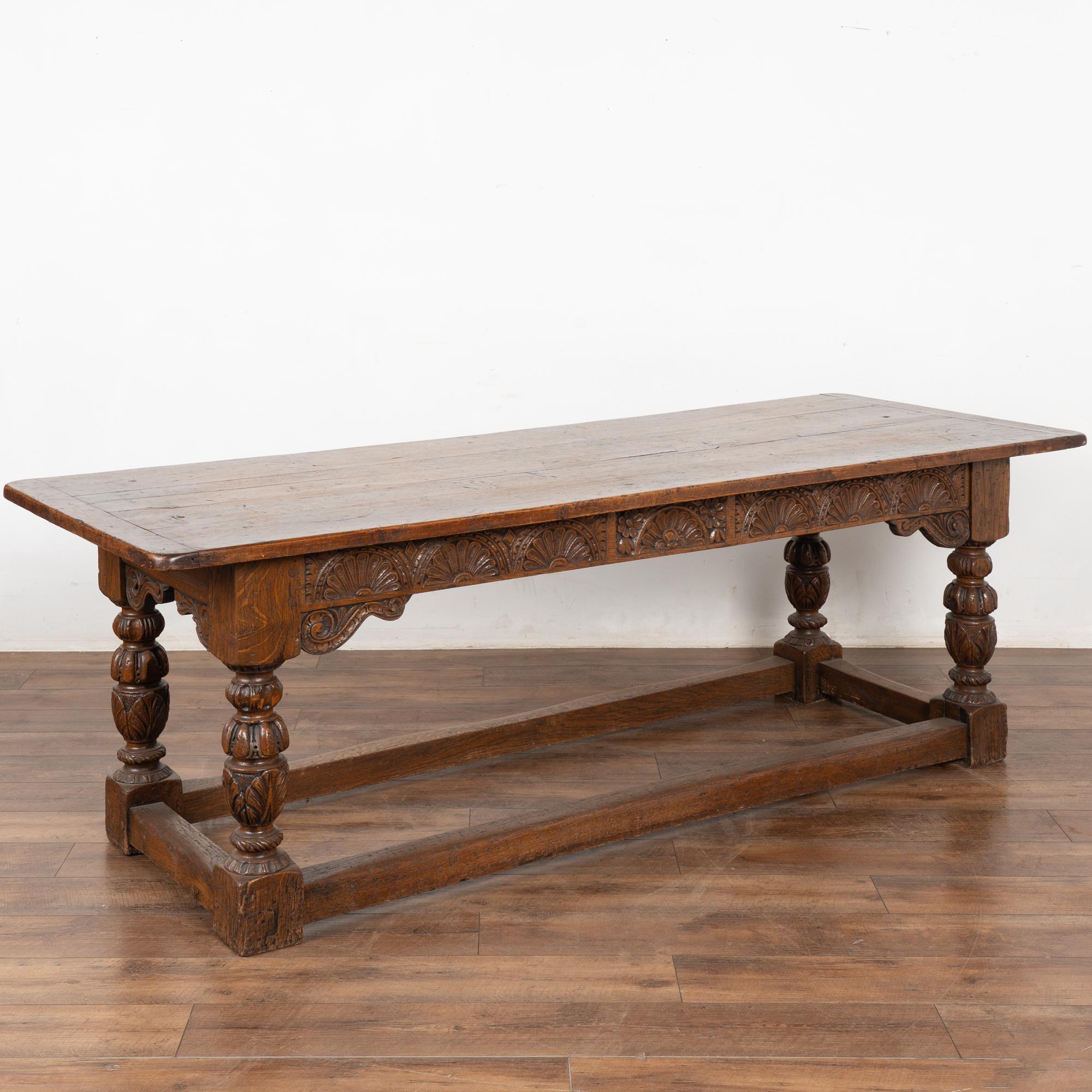 The deep patina of the aged oak wood draws one to this handsome refectory or library table from France.