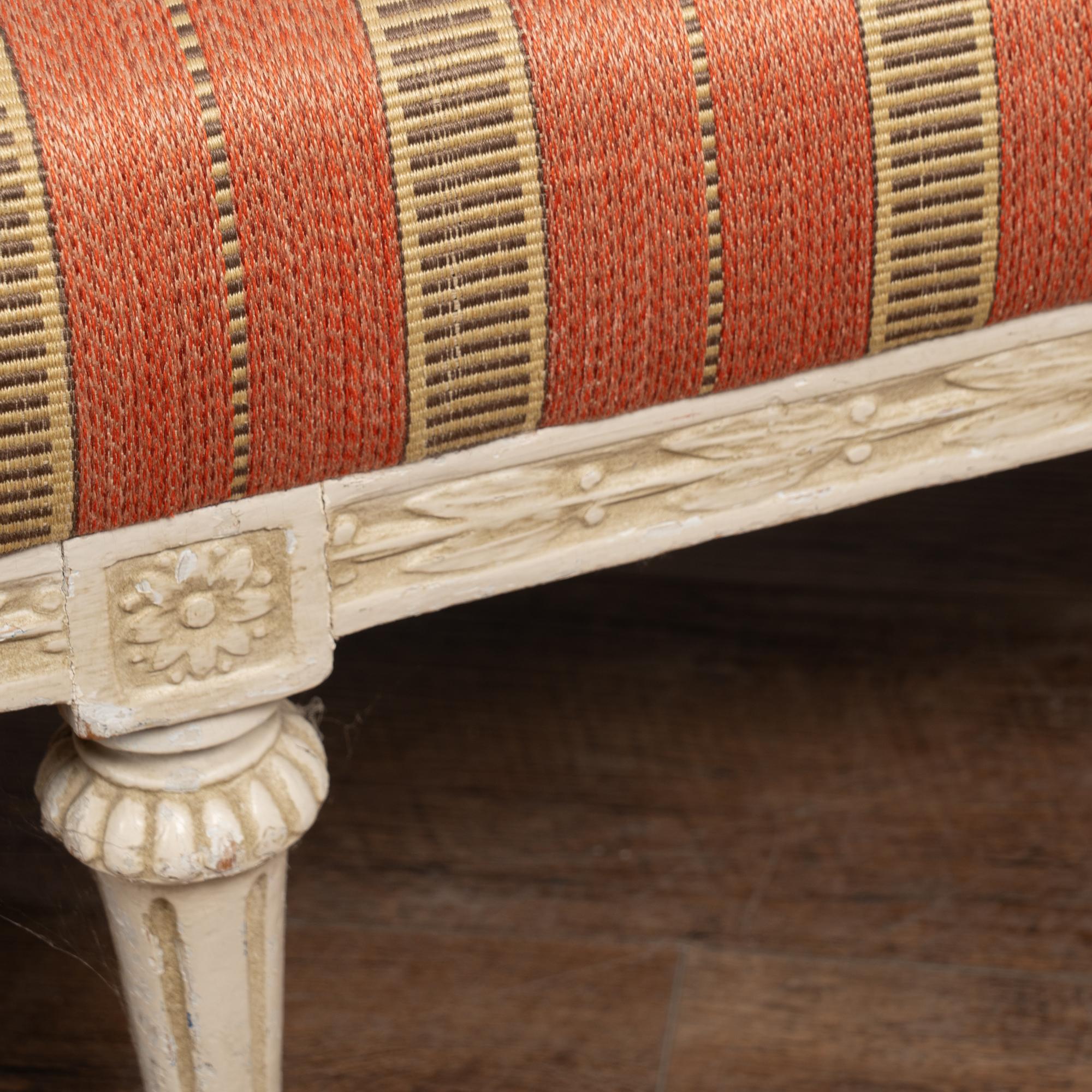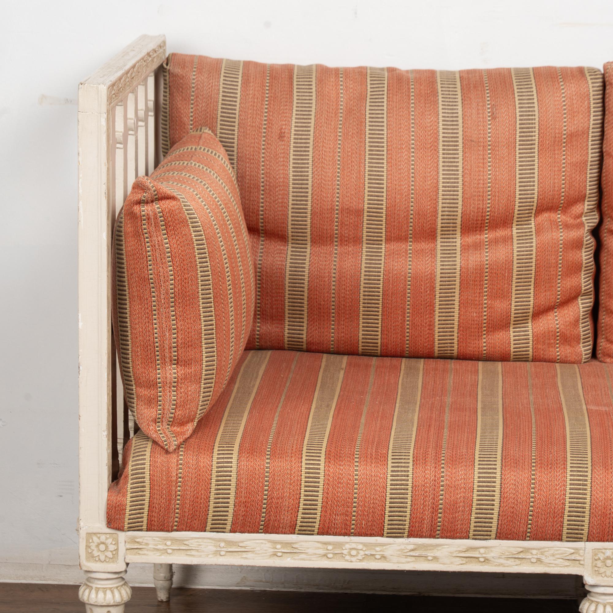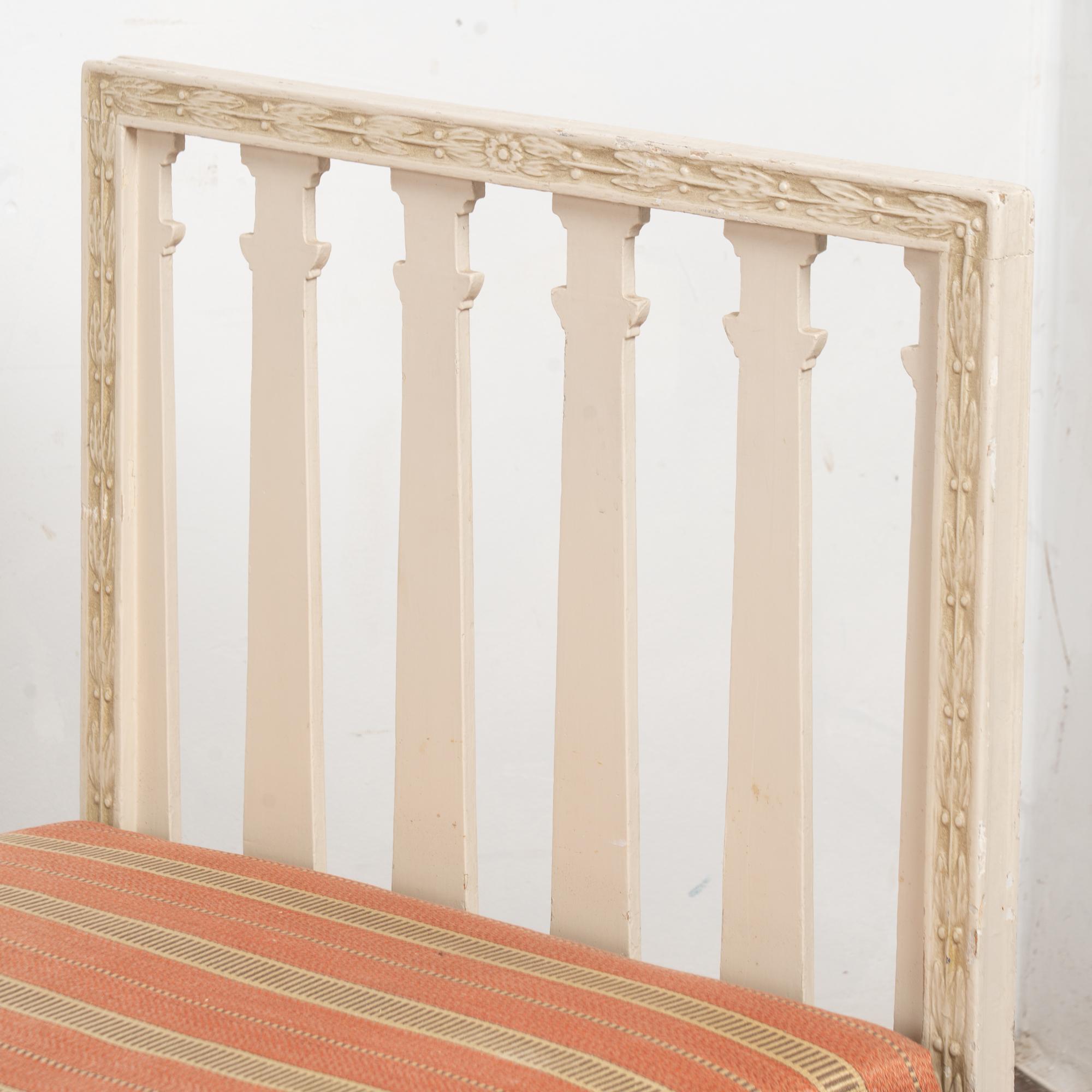 This backless sofa or settee is from the Swedish Gustavian period with carved details and fluted tapered feet.