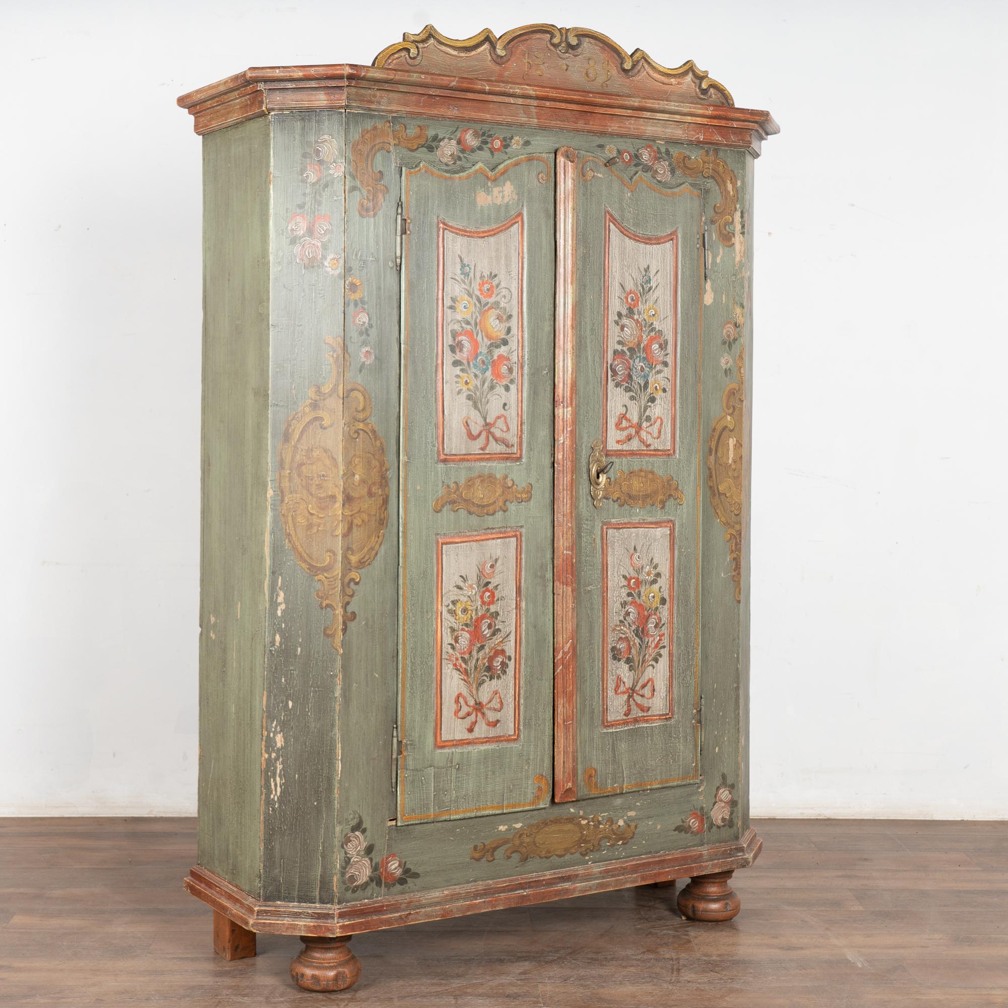 This lovely painted armoire or German "Shrunk" still maintains the quality and details of the original hand-painted finish.