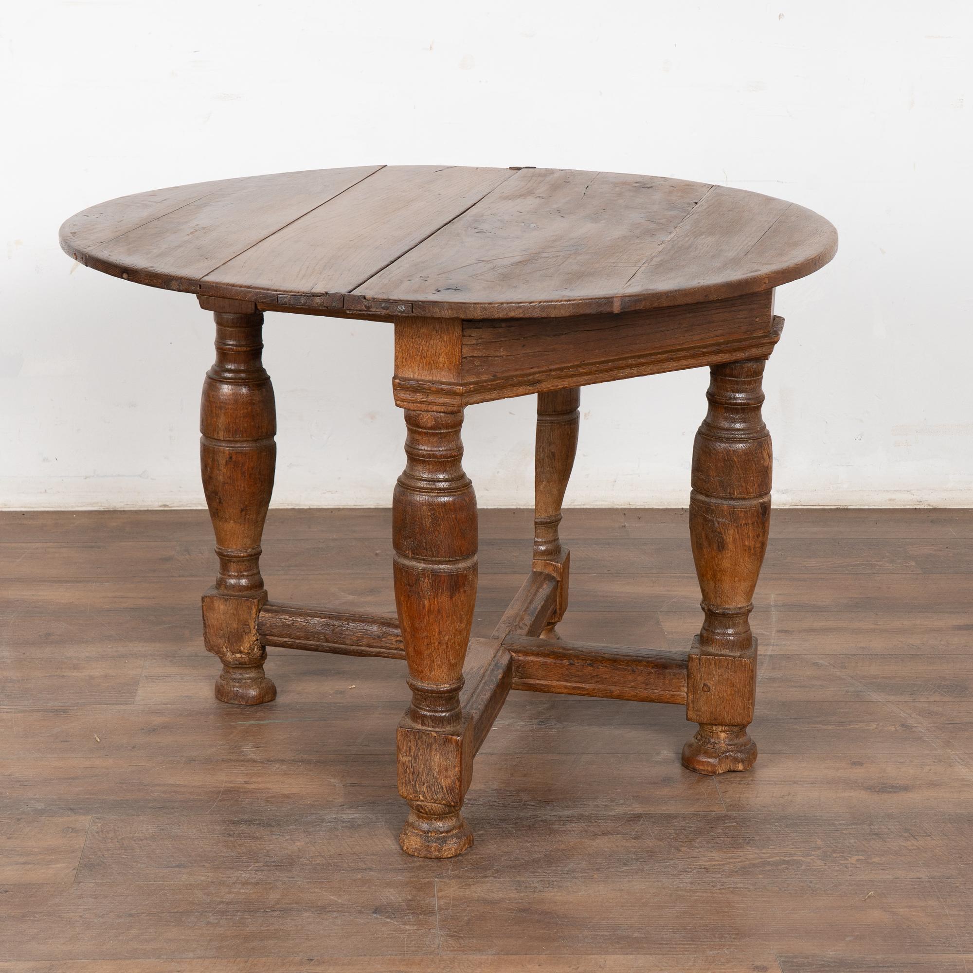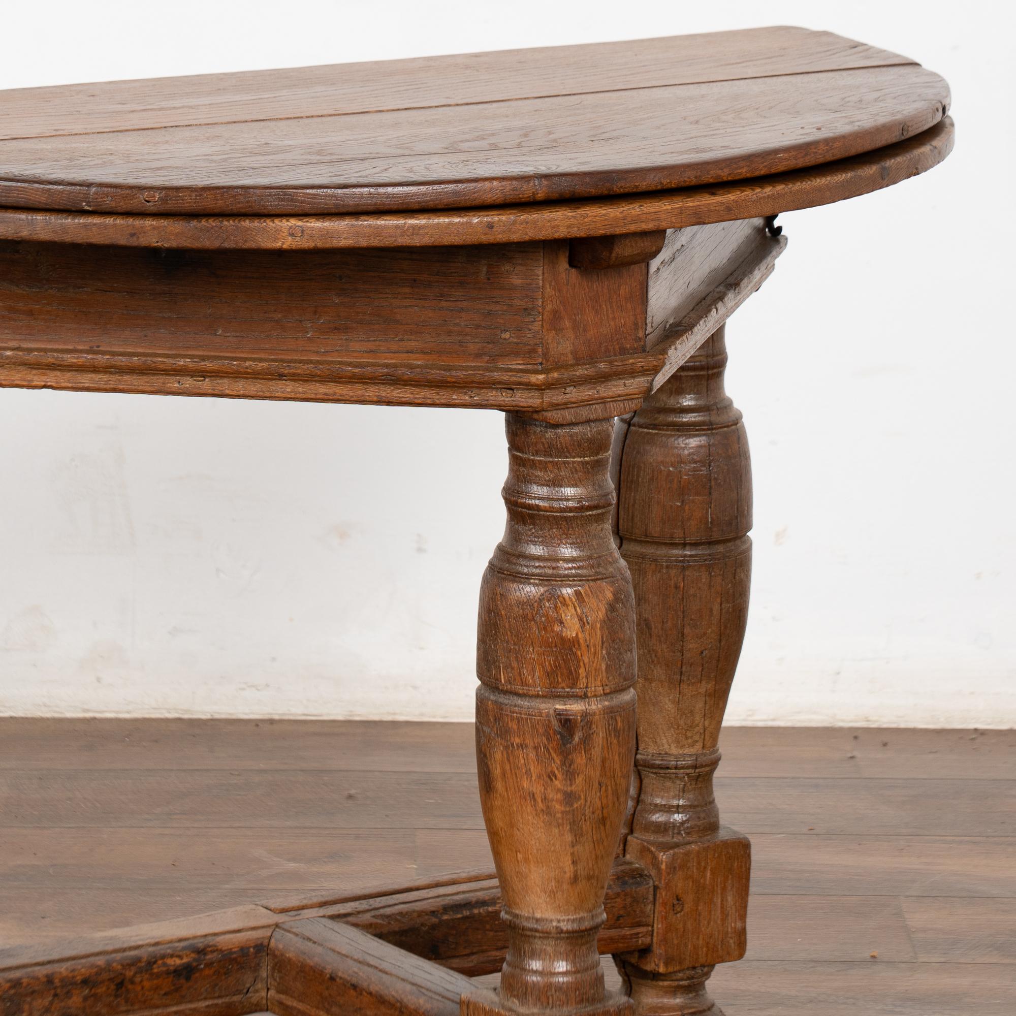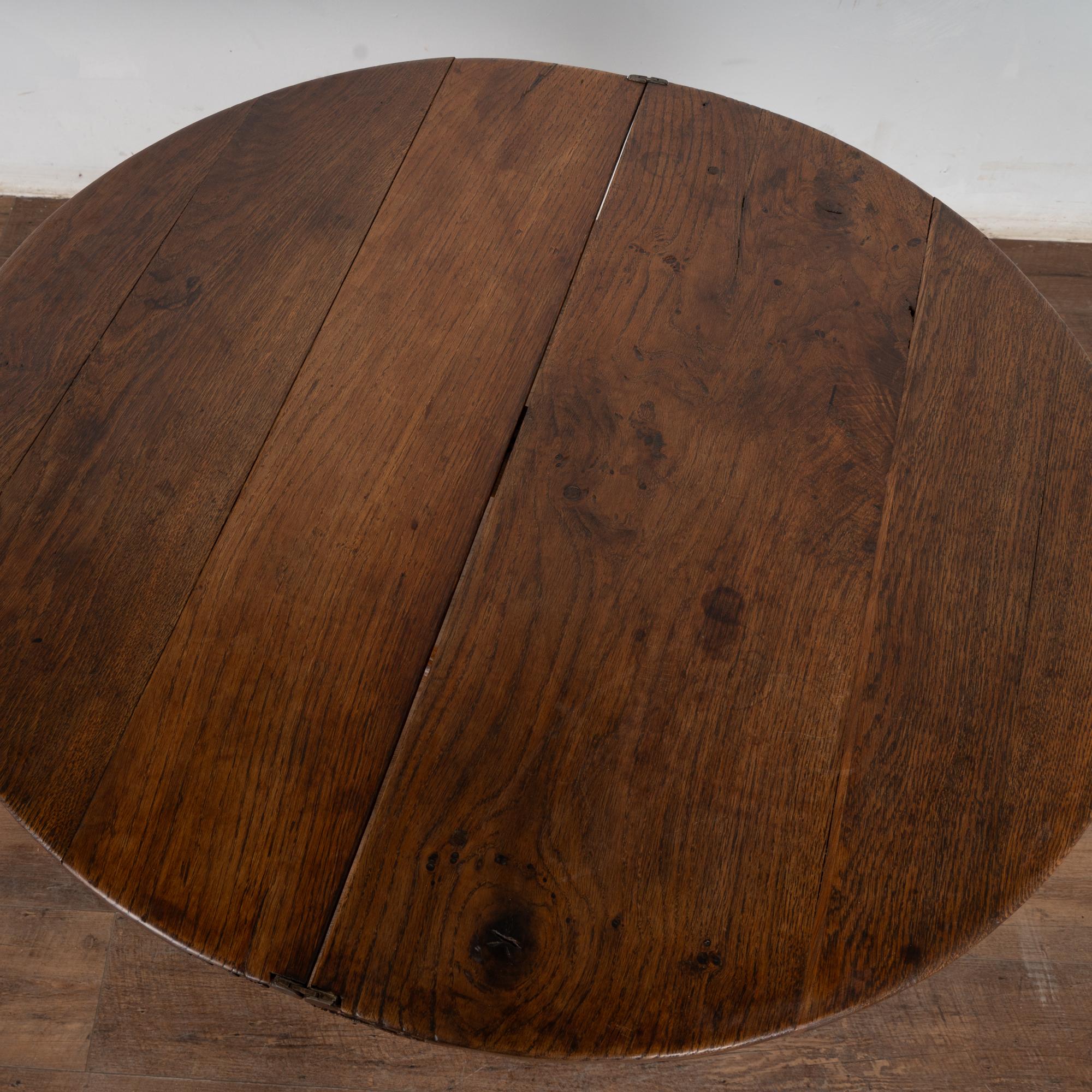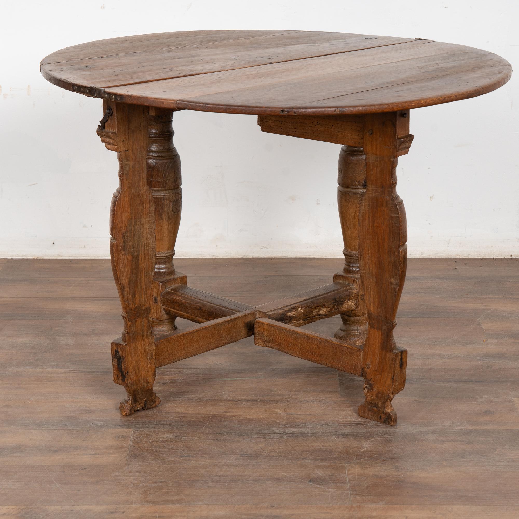 There is wonderful aged charisma to this drop leaf gate leg table that can serve as a side table, game table, demi-lune console or even small kitchen table.