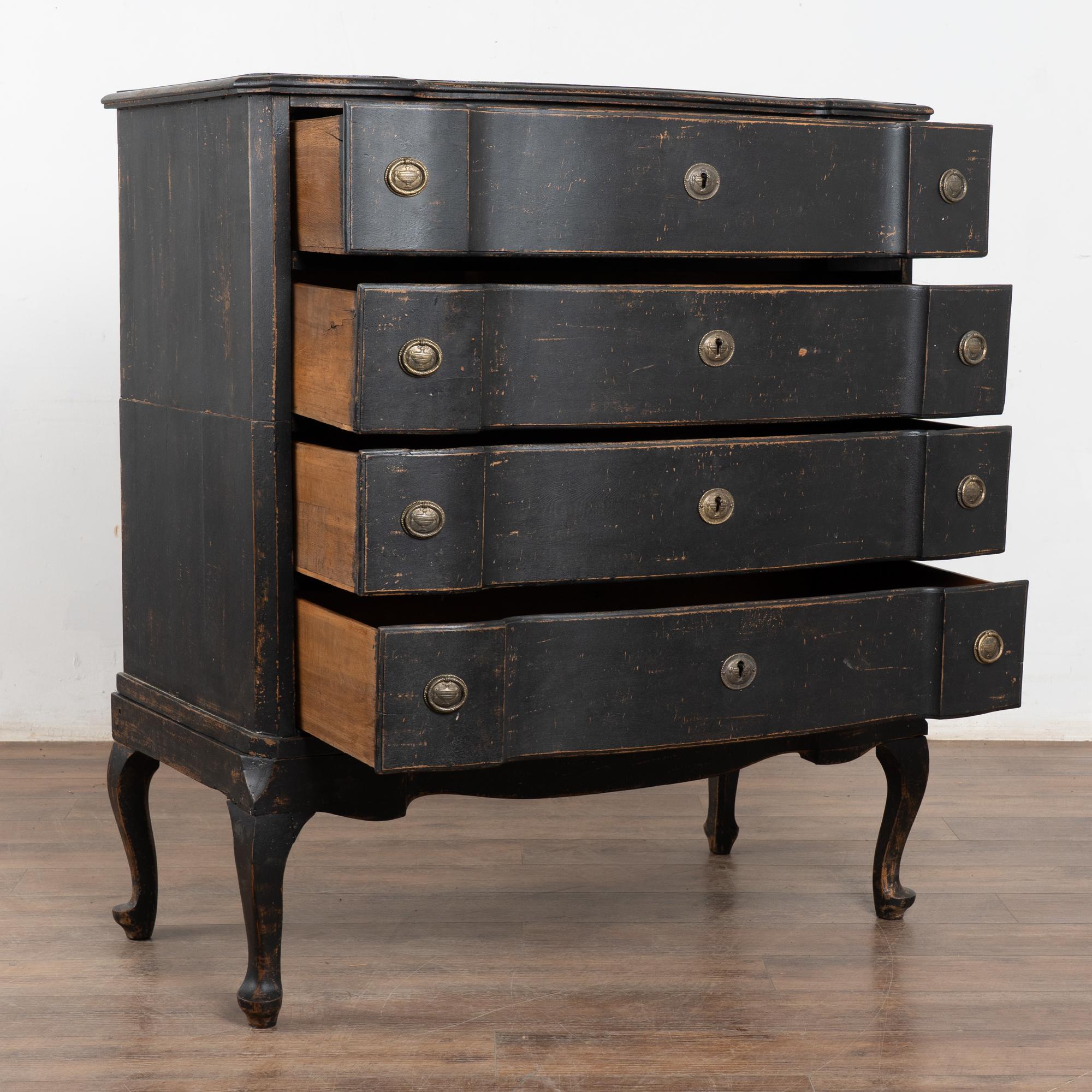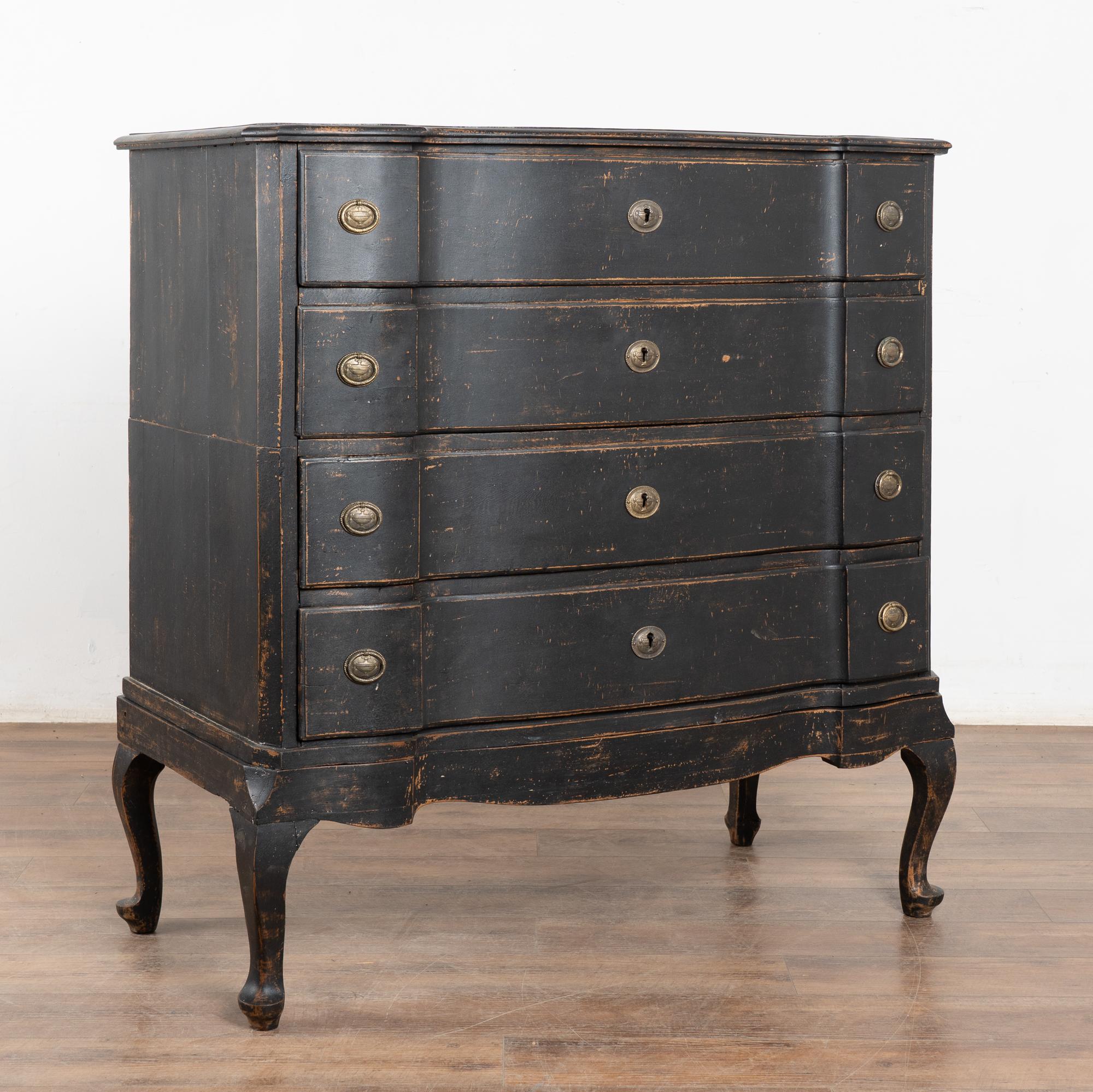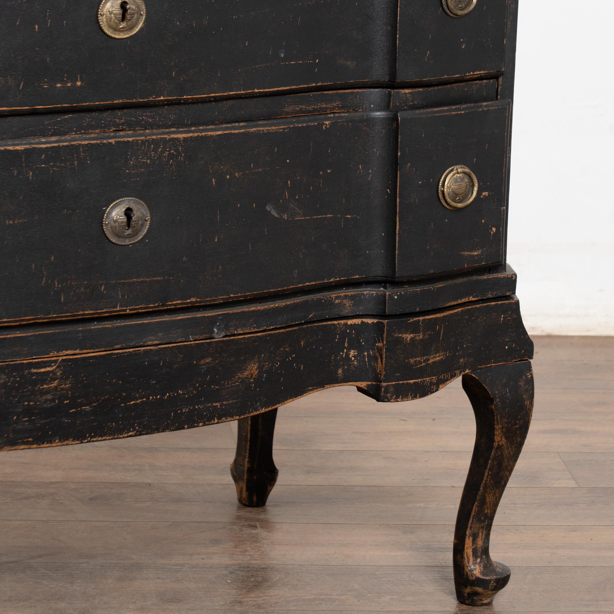 The black painted finish is striking in this attractive large oak chest of four drawers resting on scalloped skirt and curved cabriolet legs.
