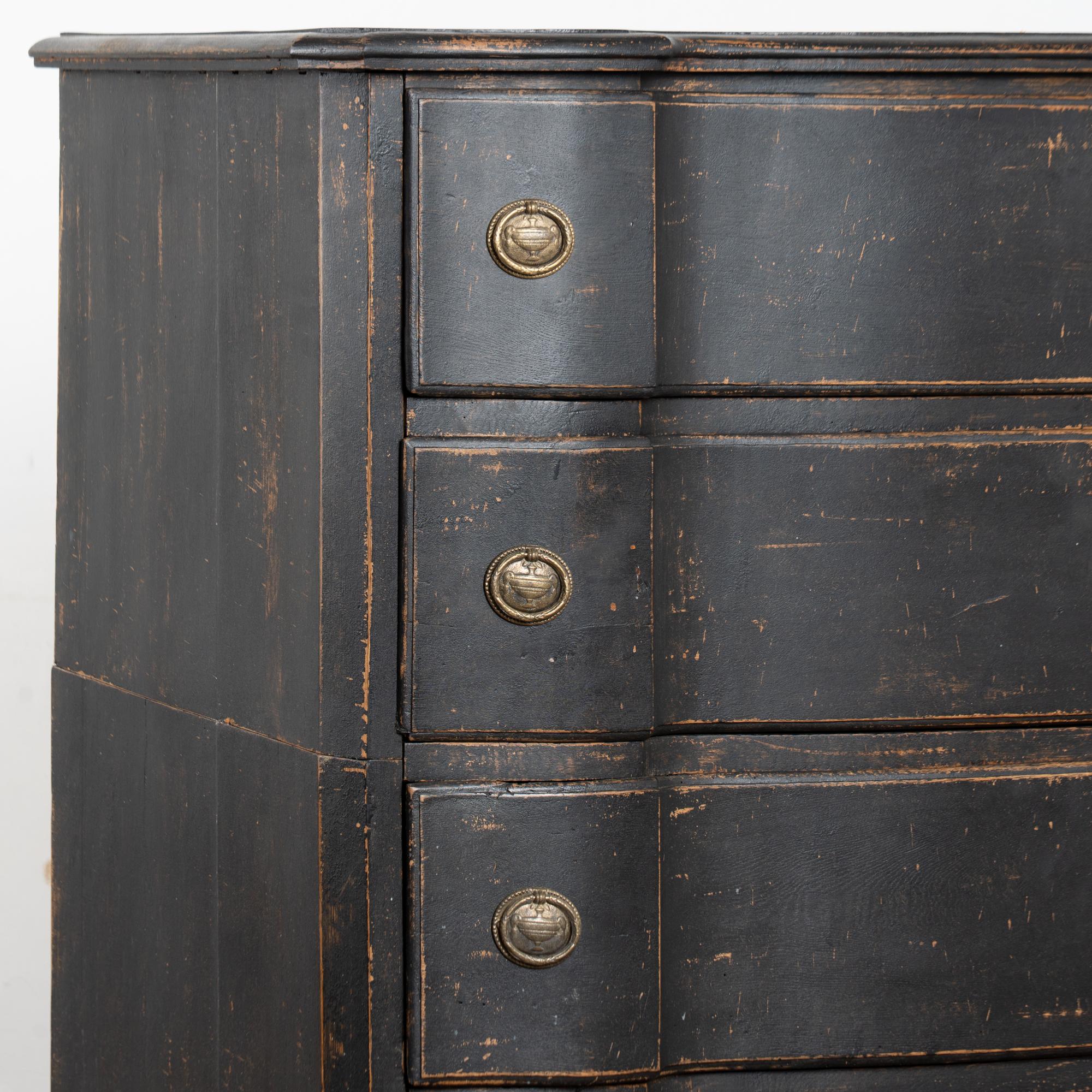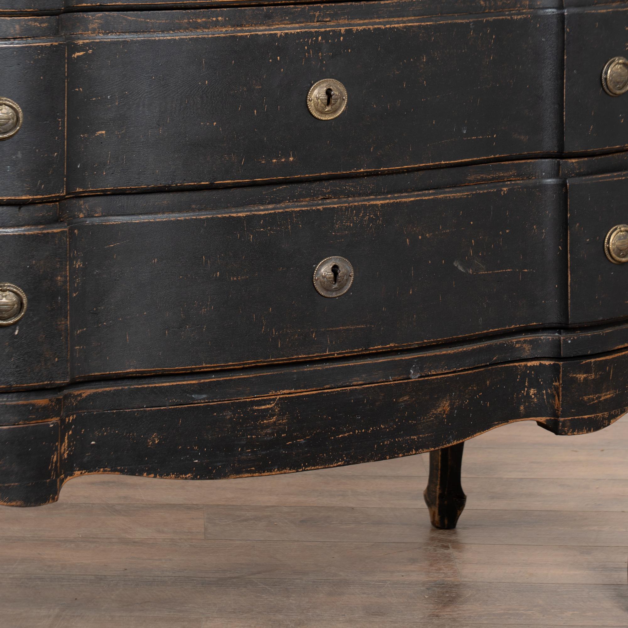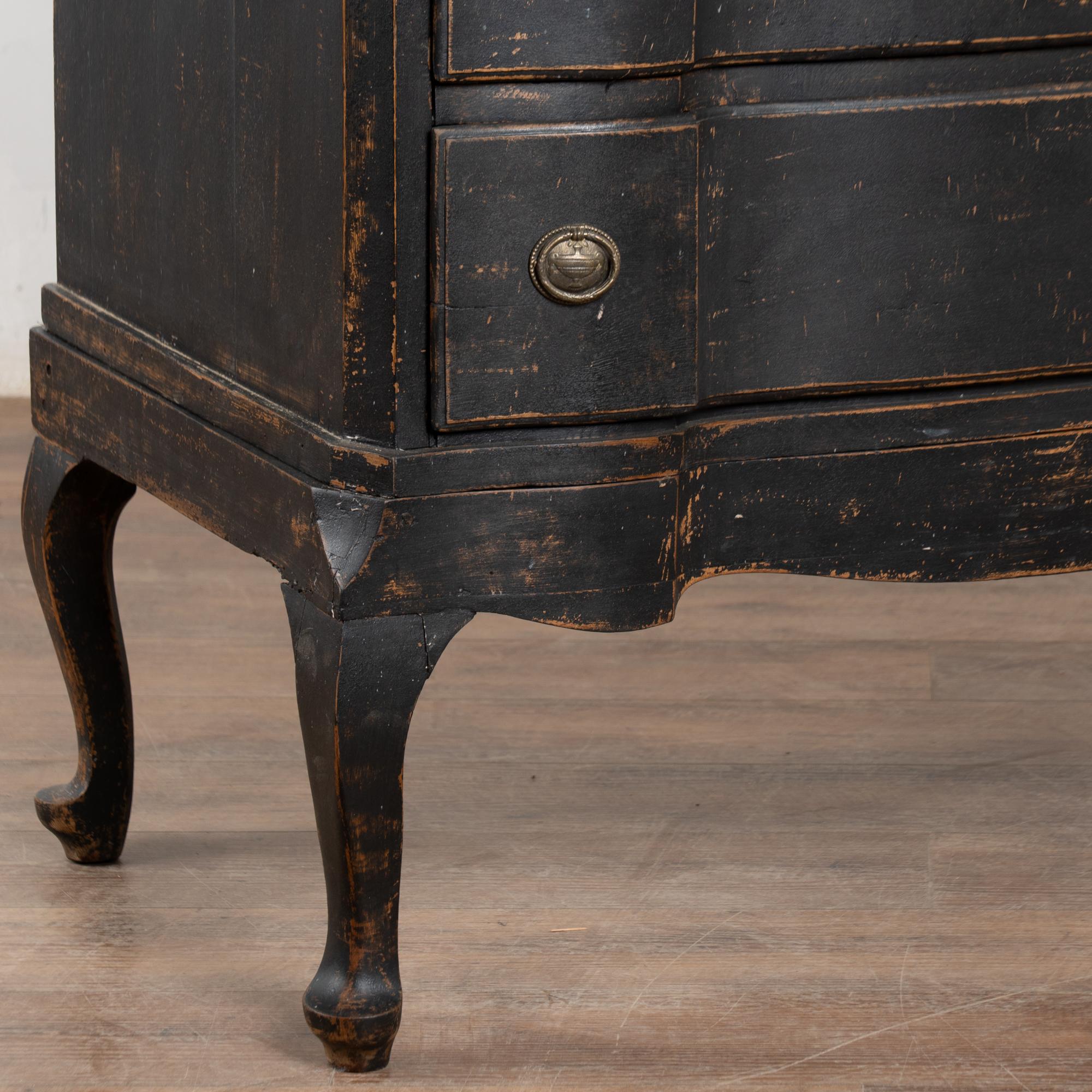The black painted finish is striking in this attractive large oak chest of four drawers resting on scalloped skirt and curved cabriolet legs.