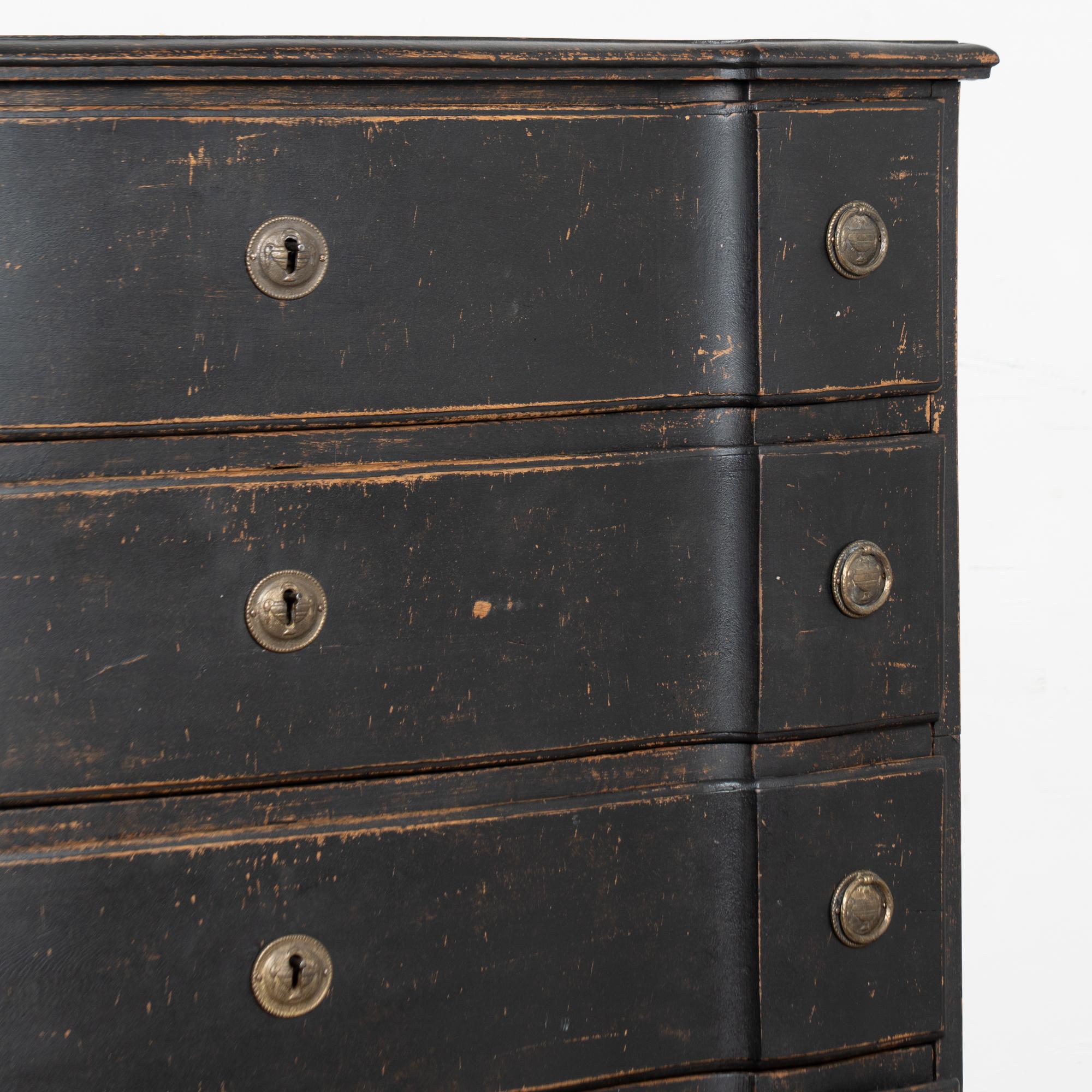 While the paint is newer and professionally applied, it compliments the age, rococo style and serpentine curves of this chest that dates back to the late 1700's.