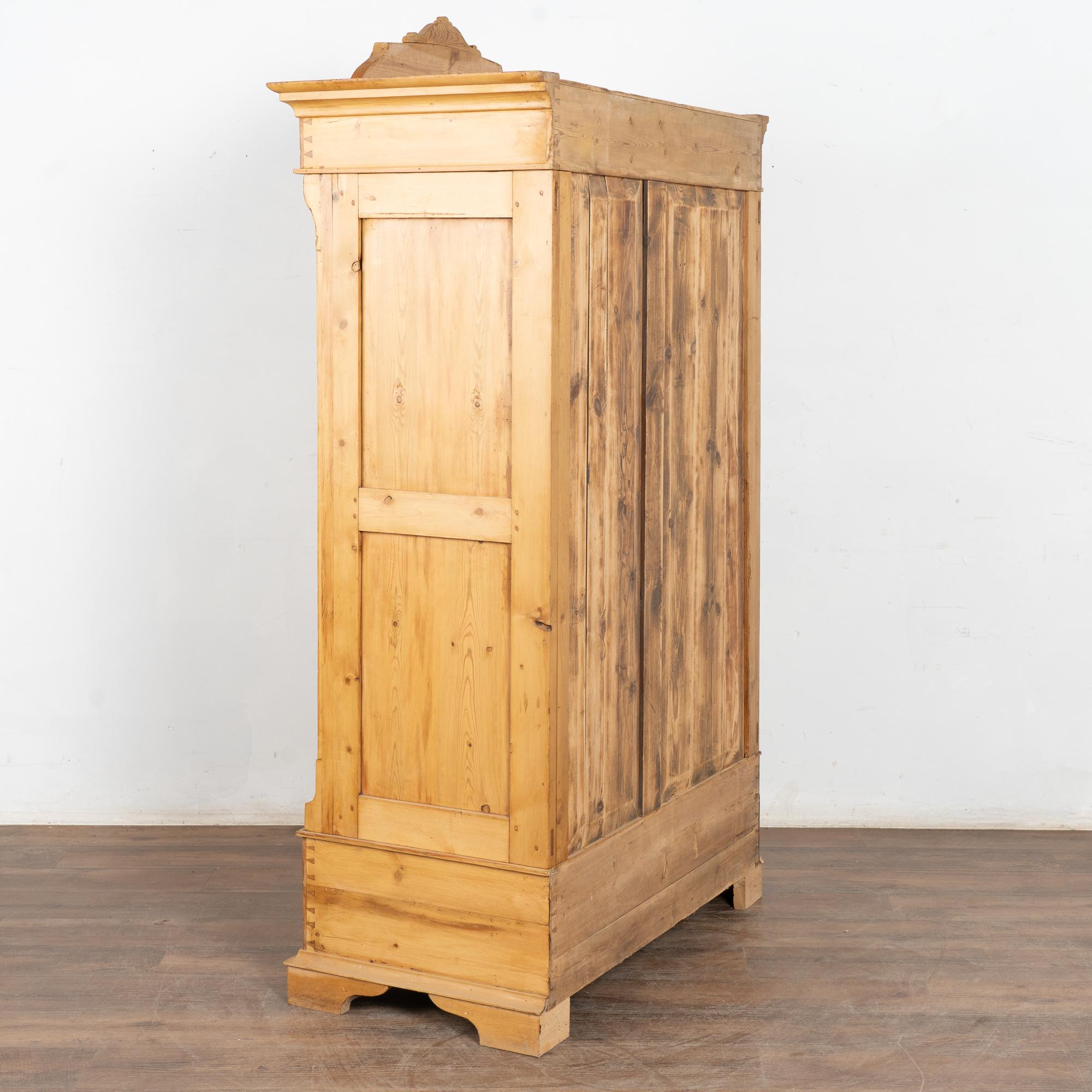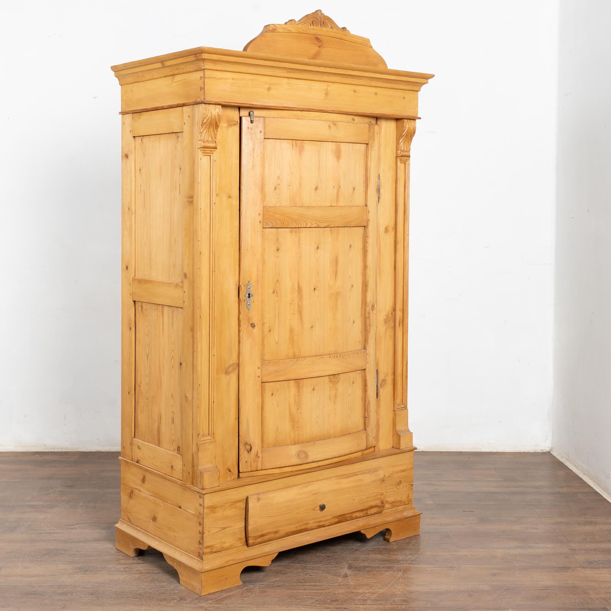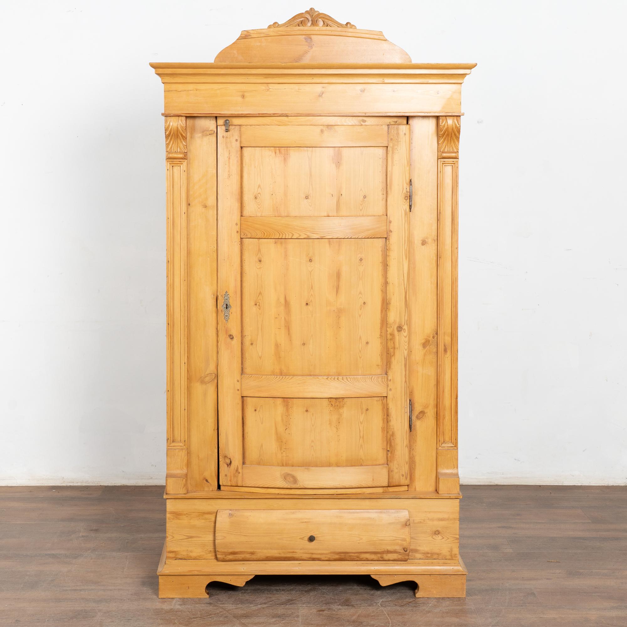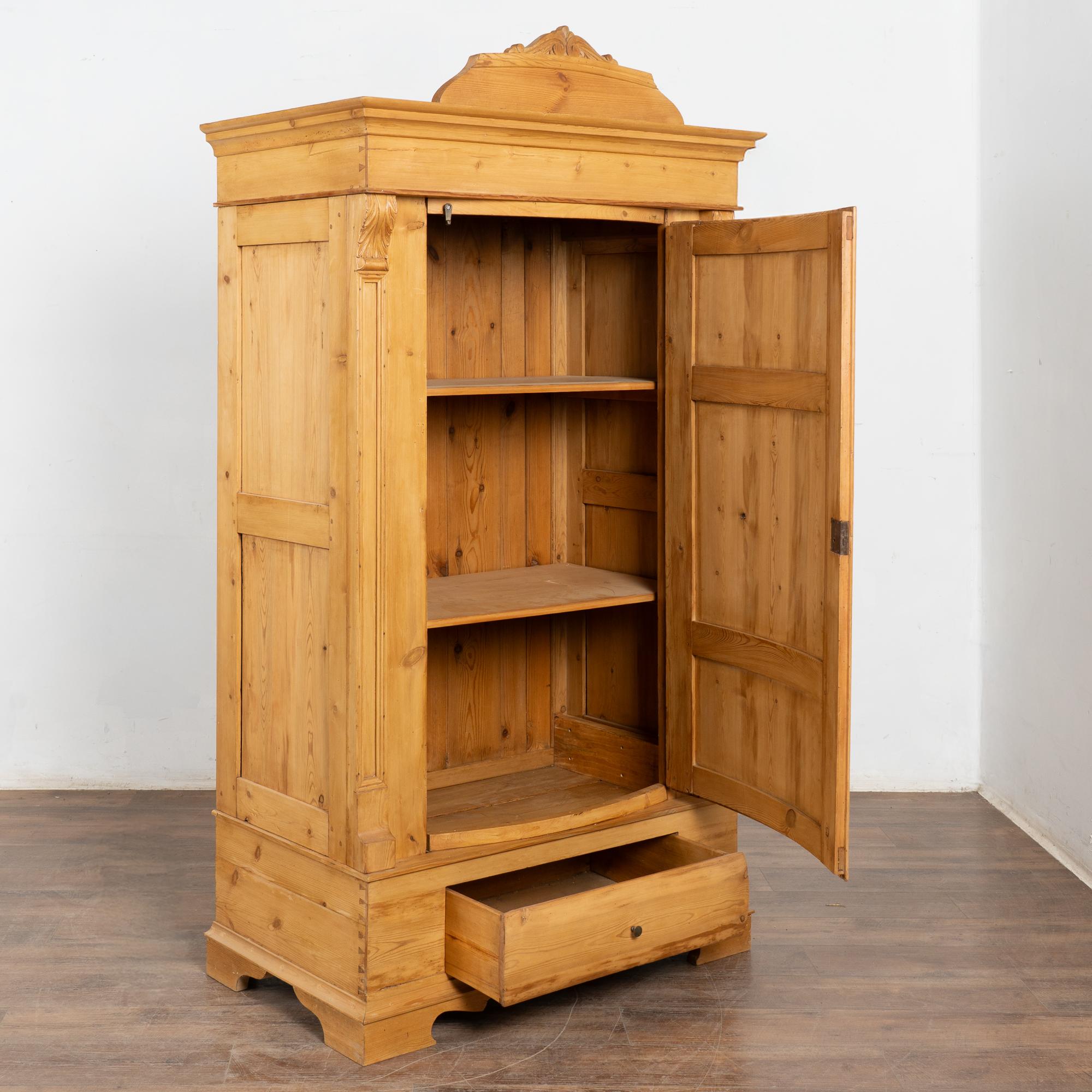Pine one door armoire cabinet with interior shelving, exterior has one lower drawer.