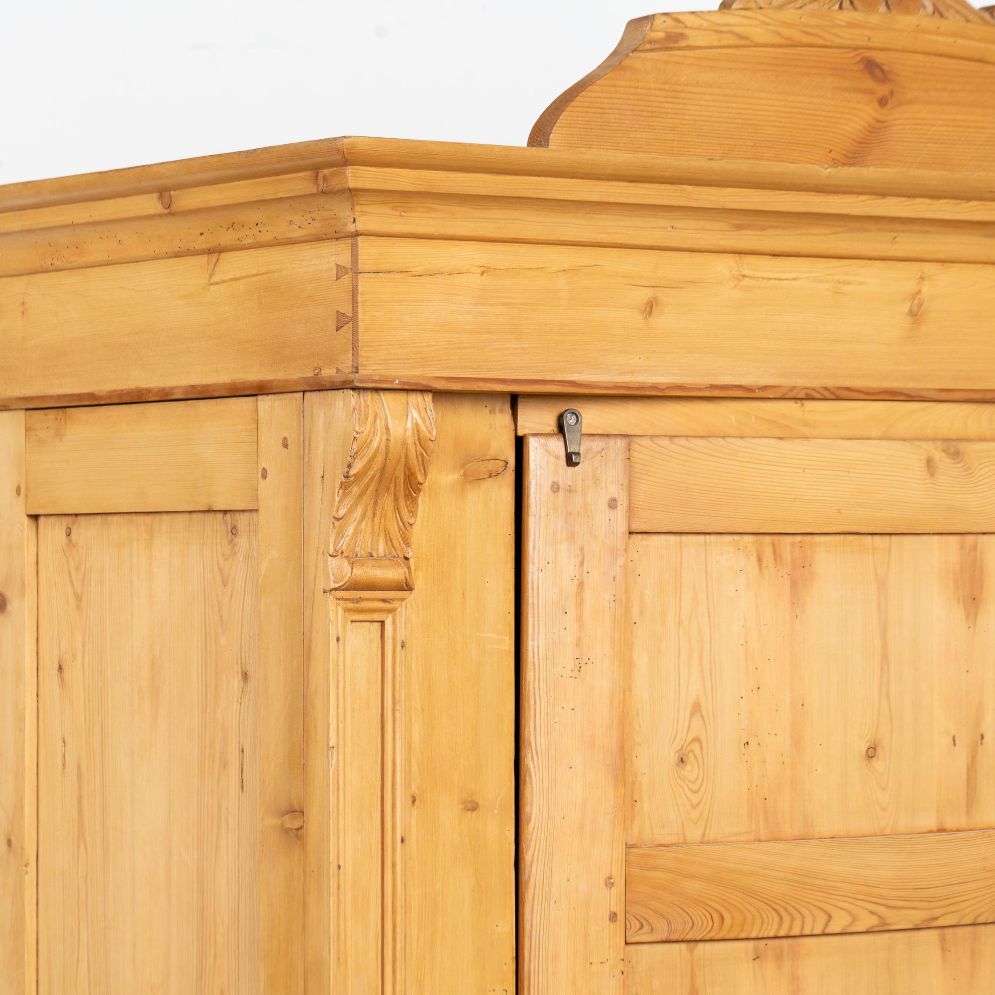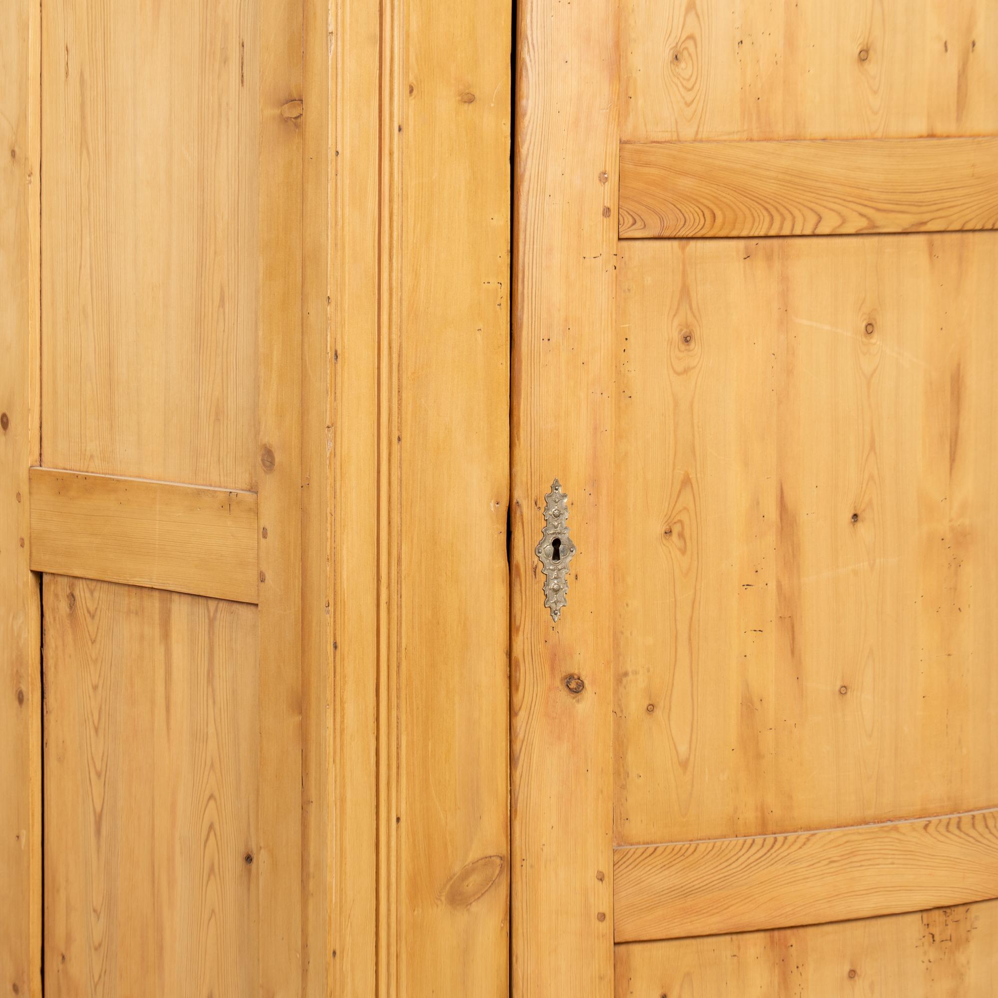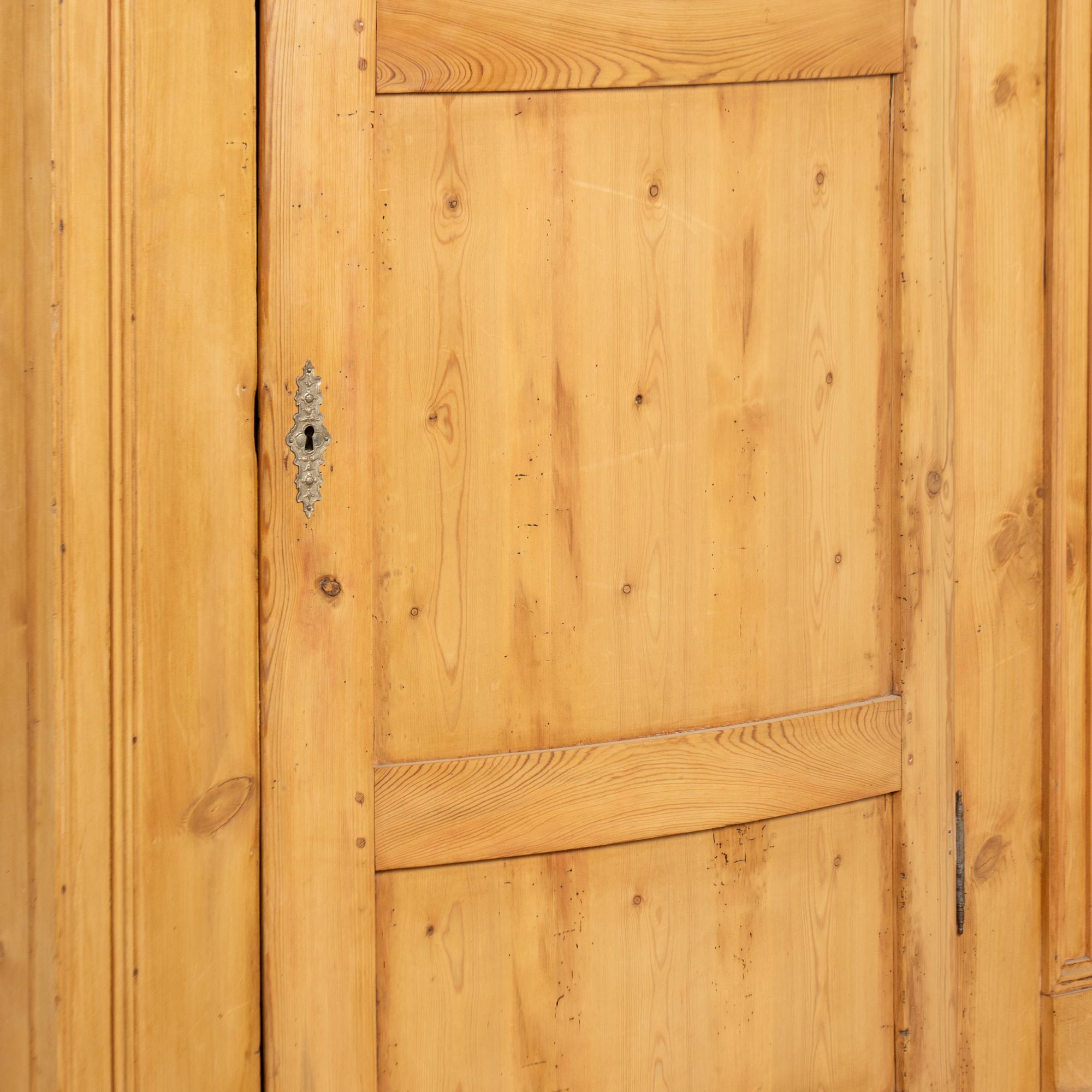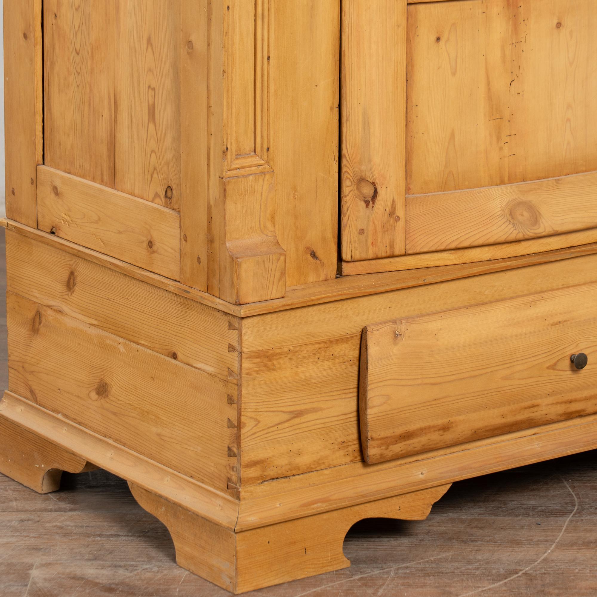 Pine one door armoire cabinet with interior shelving, exterior has one lower drawer.