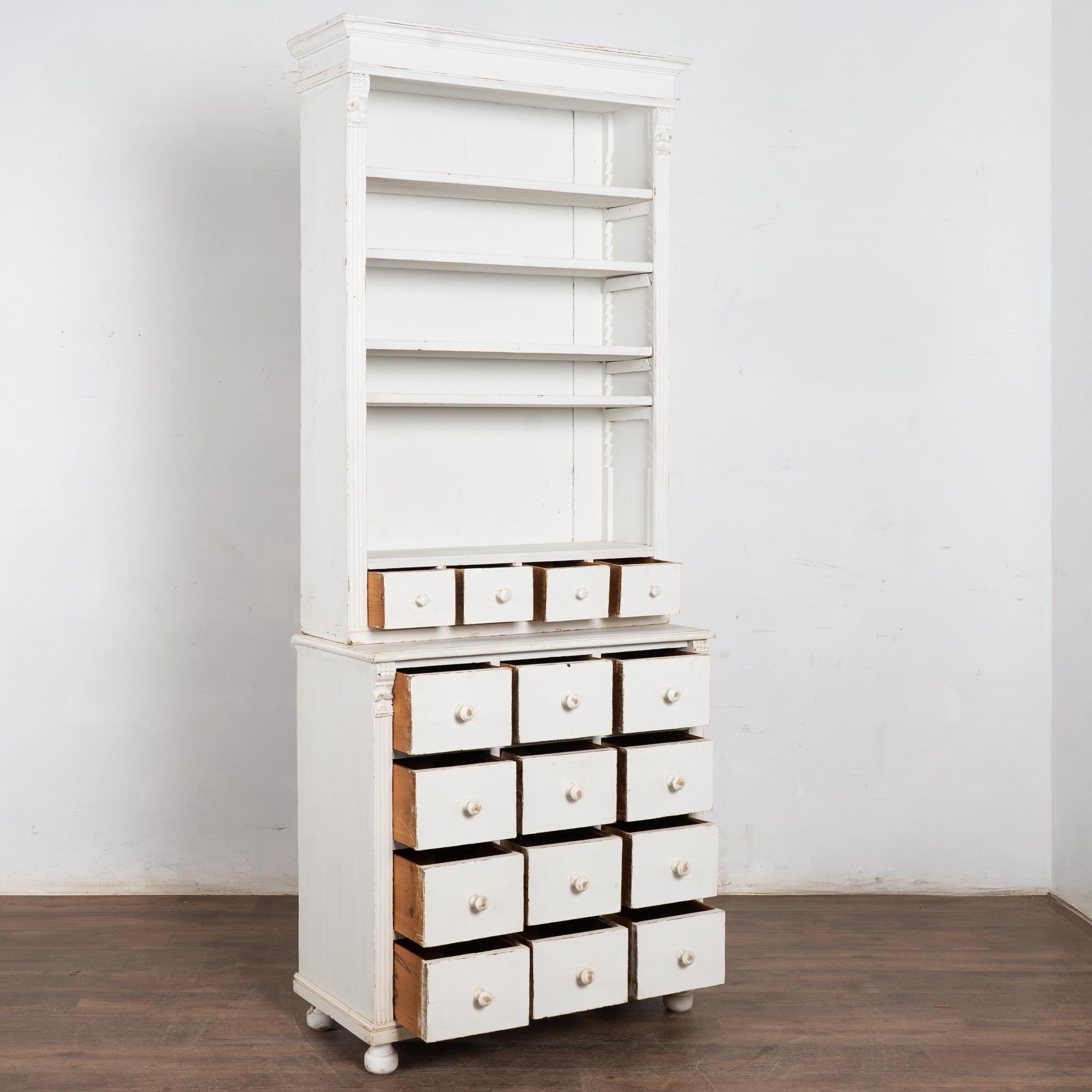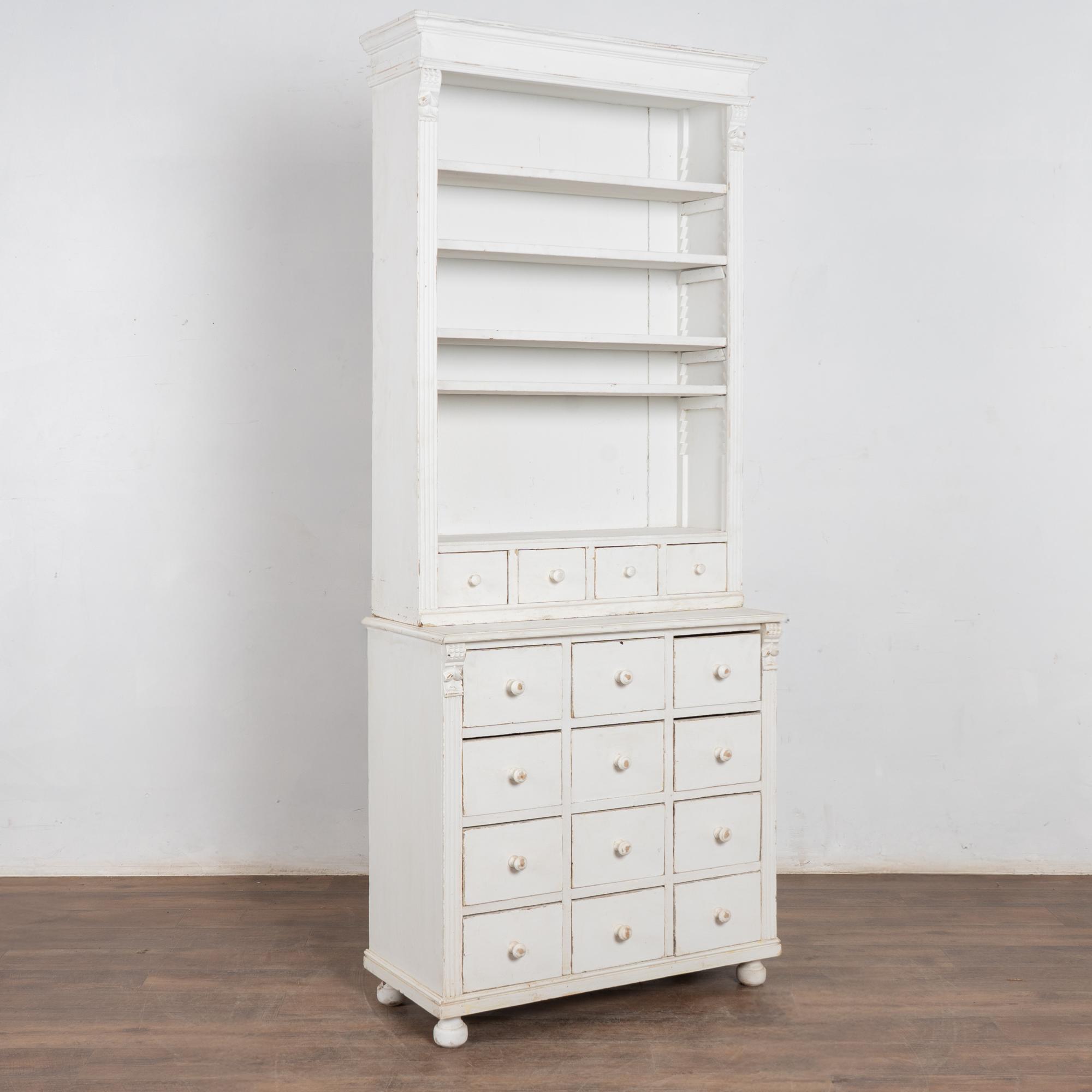 Restored, strong and stable, ready to use. Later painted white white and lightly distressed to fit the age of narrow wall unit.