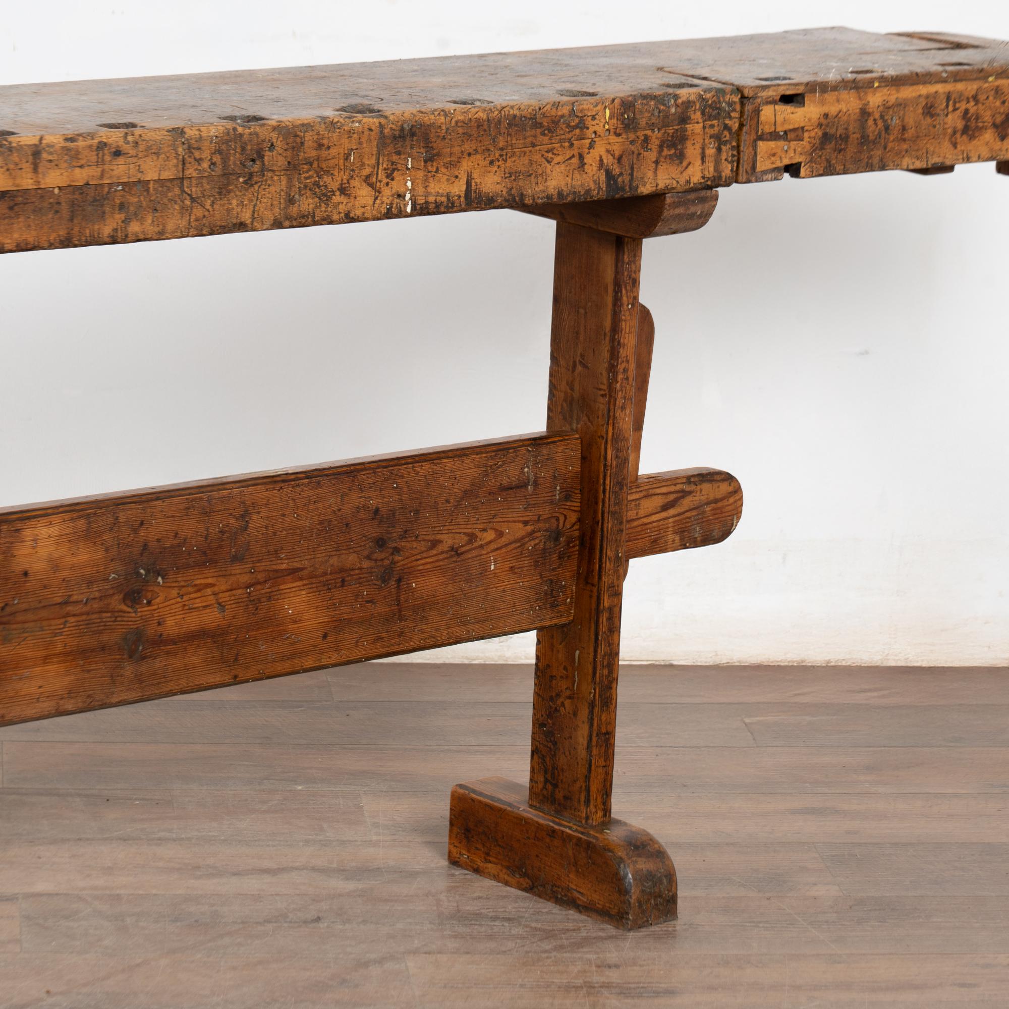 This rustic work table is narrow, at only 11.25" deep with one lower trestle "runner" it is ideal to serve as a unique and narrow rustic console table or sofa table.