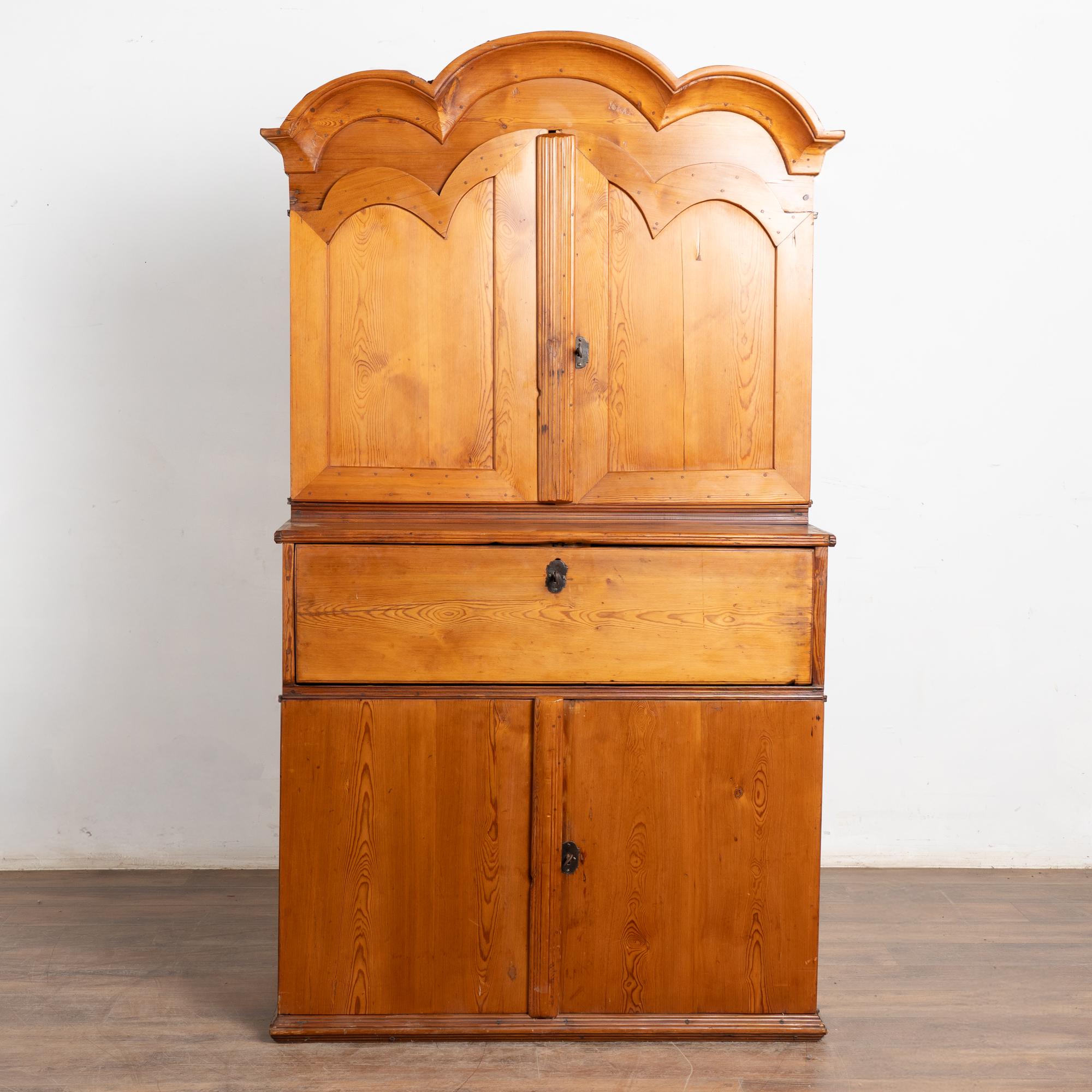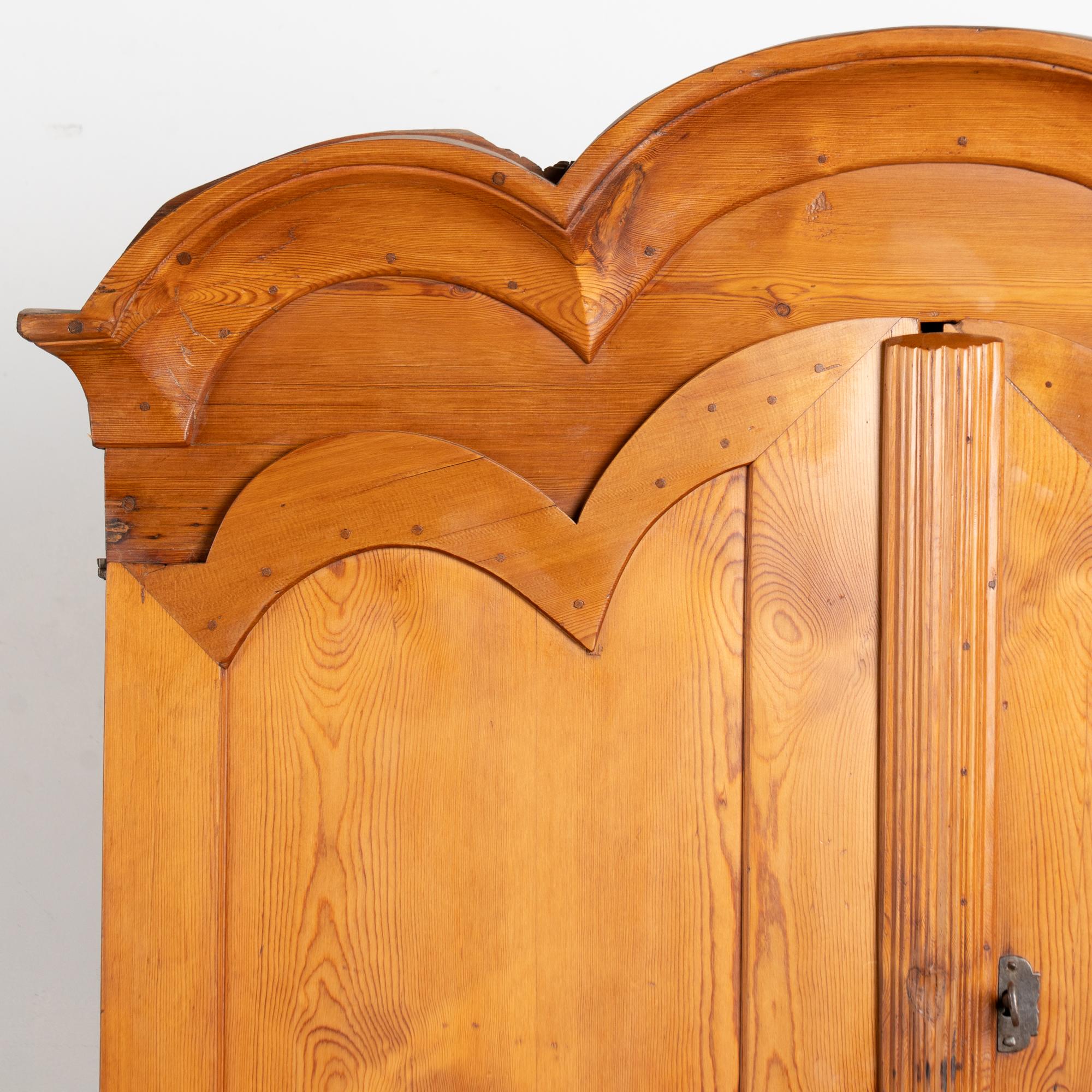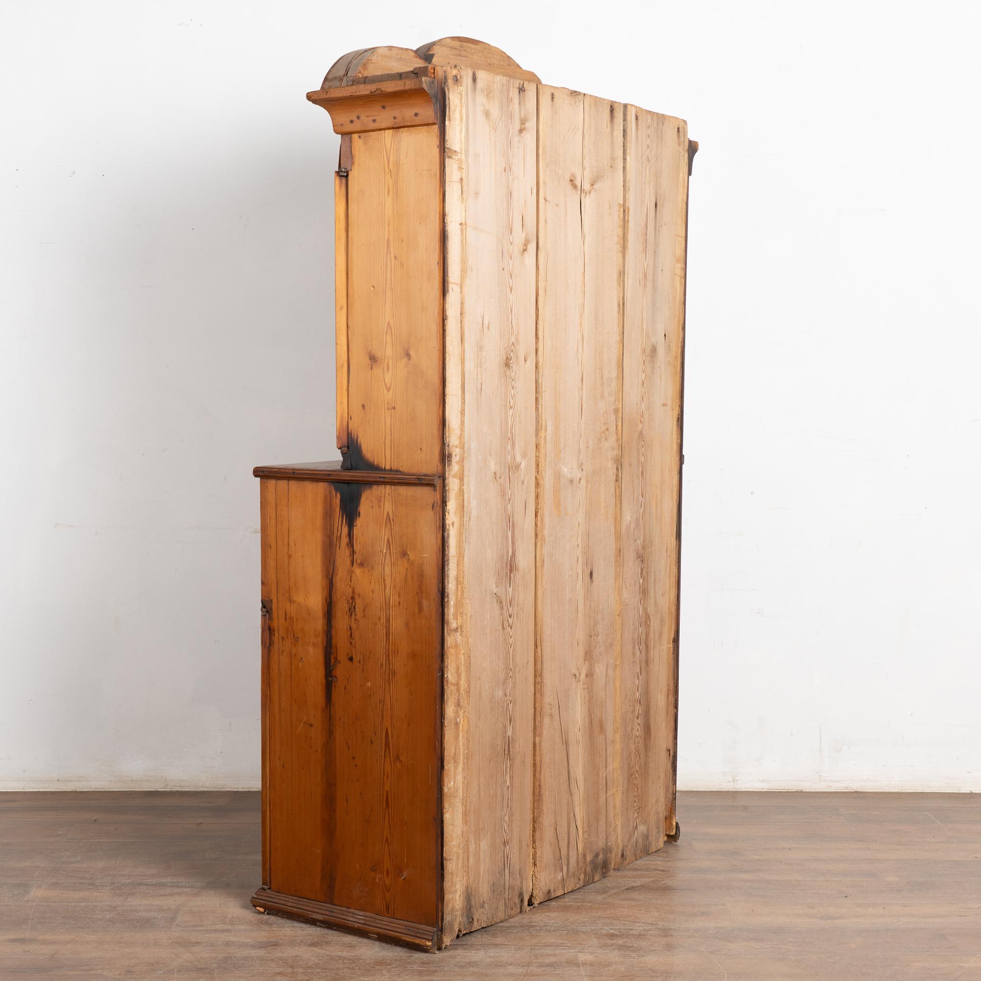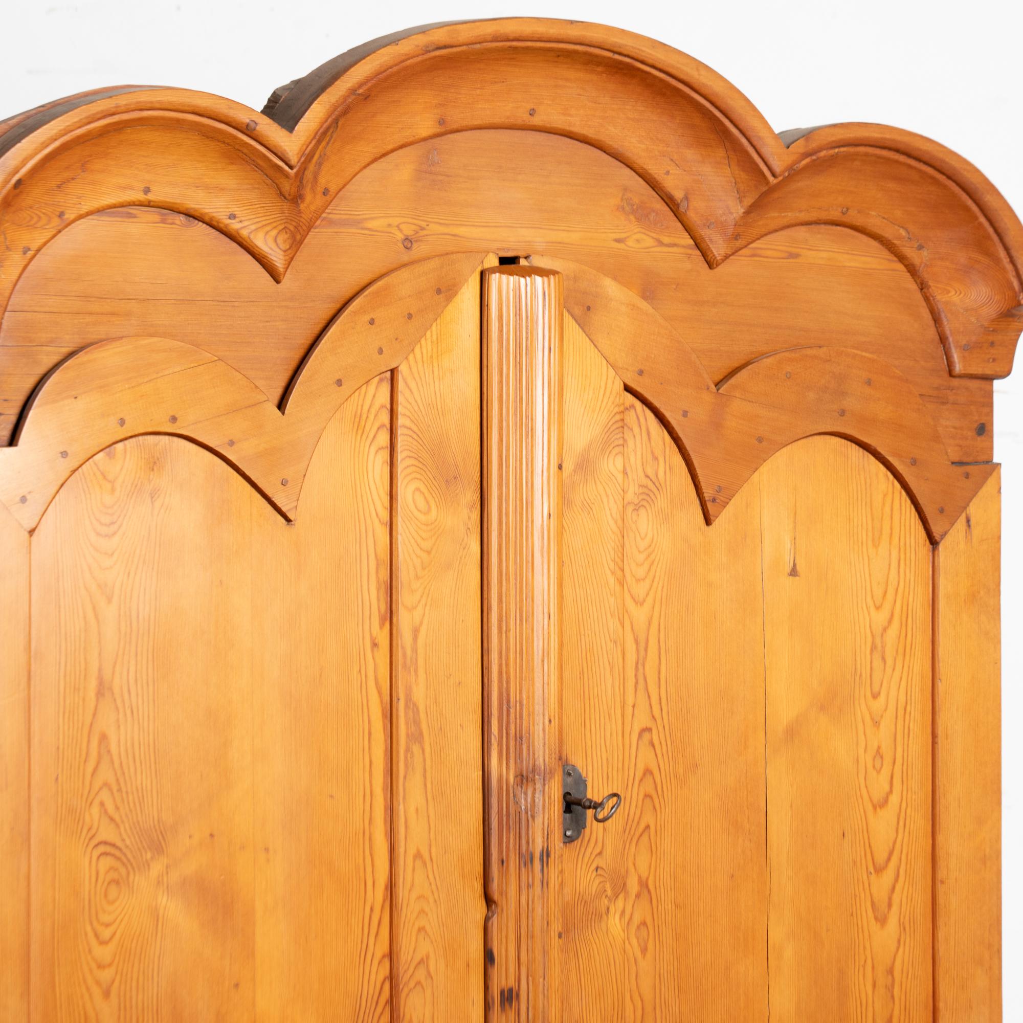 This pine cabinet is a wonderful example of Norwegian country craftsmanship including the traditional curved bonnet or crown and paneled doors.