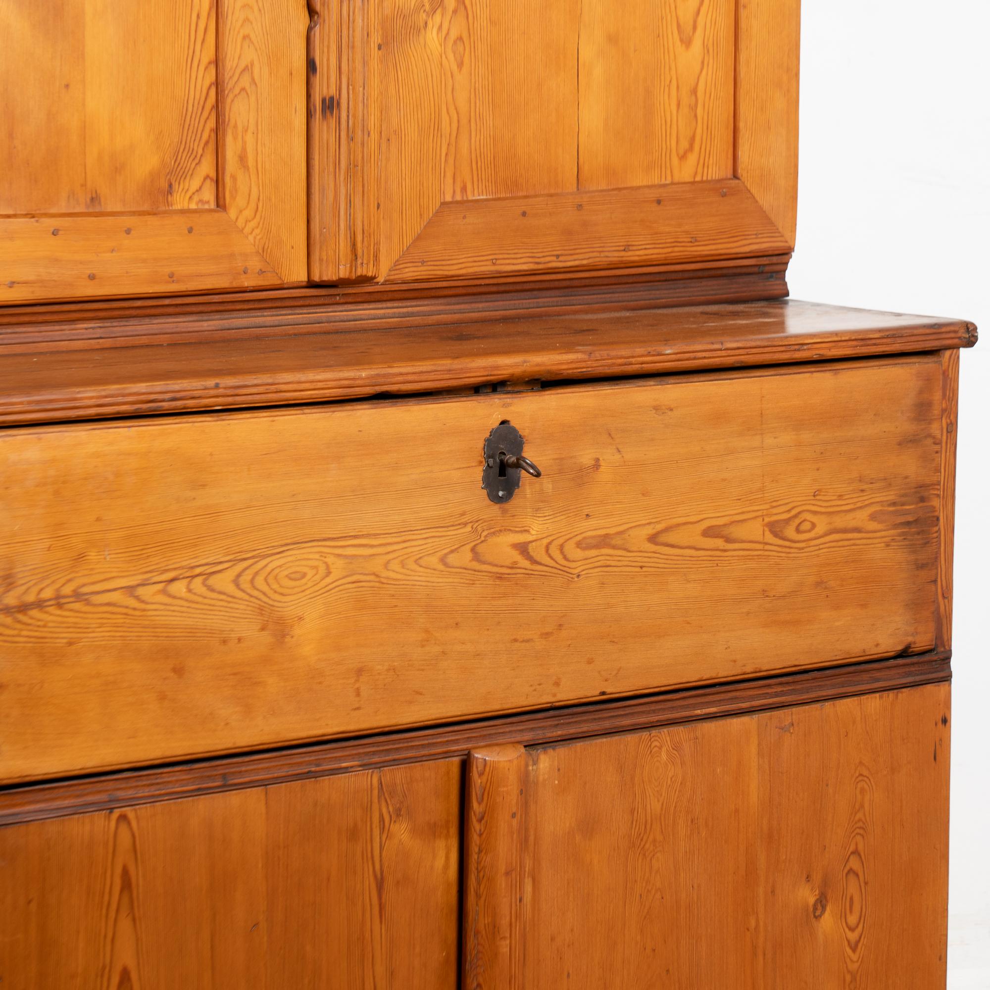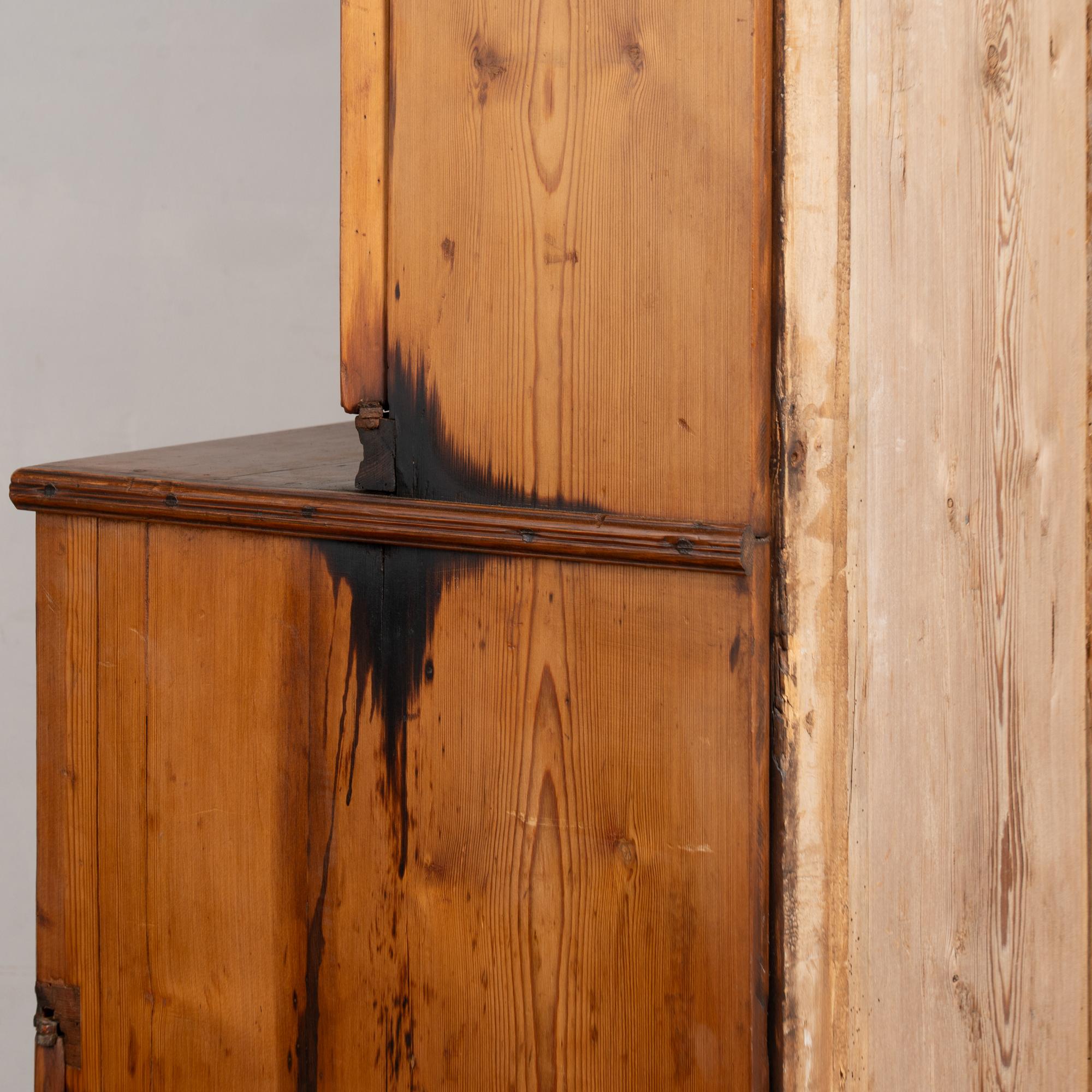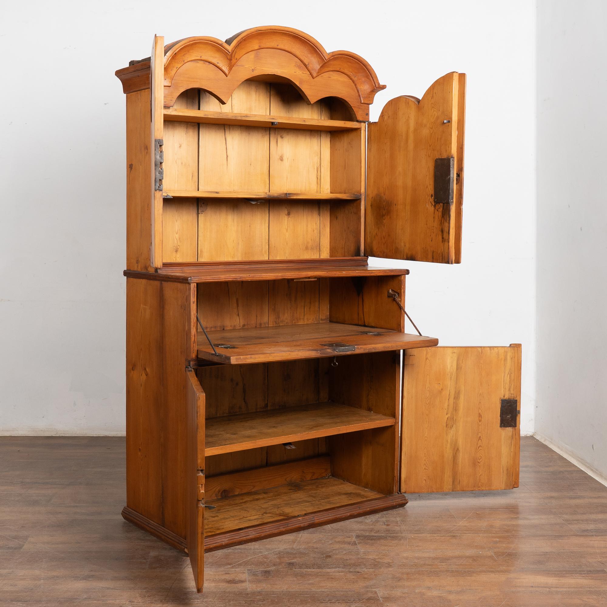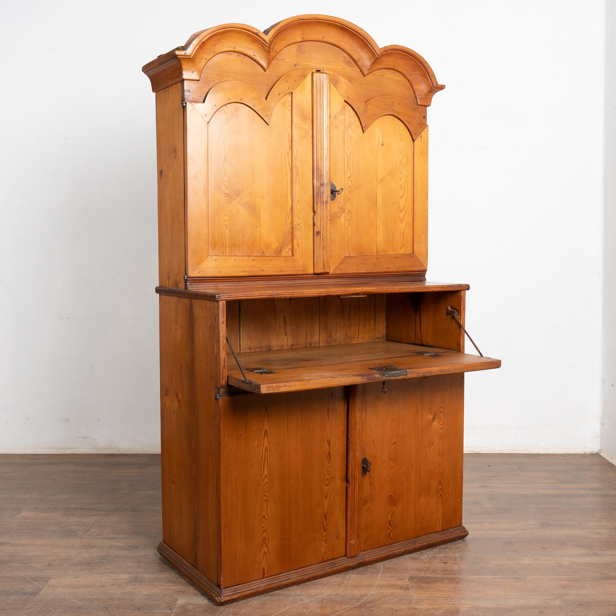 This pine cabinet is a wonderful example of Norwegian country craftsmanship including the traditional curved bonnet or crown and paneled doors.