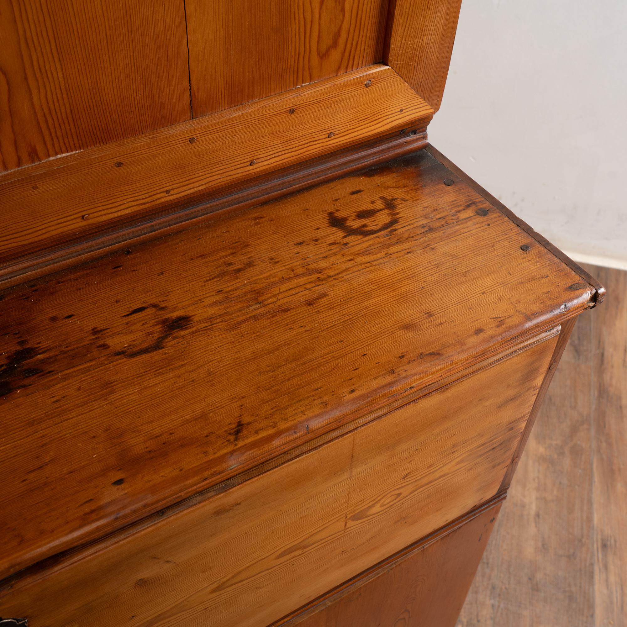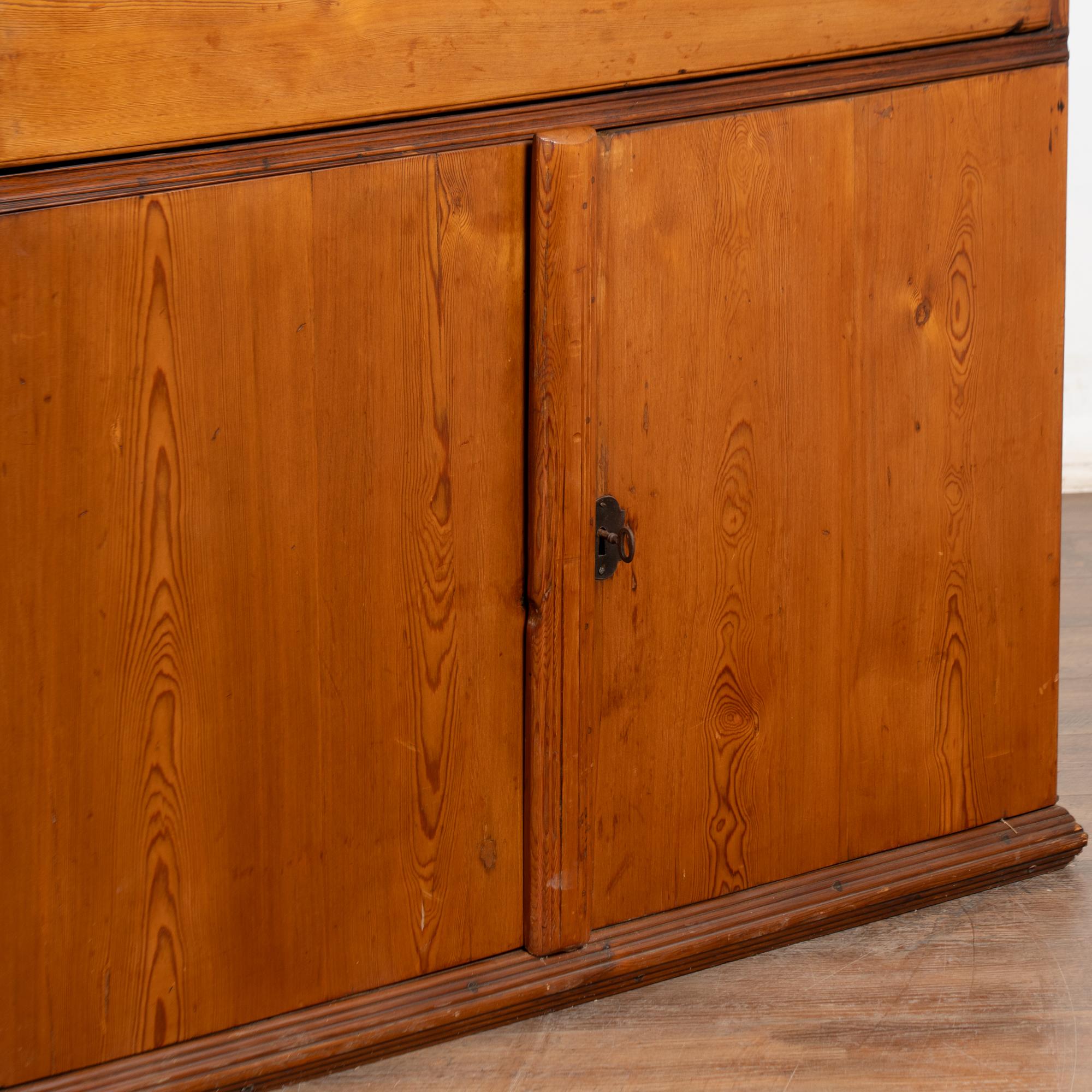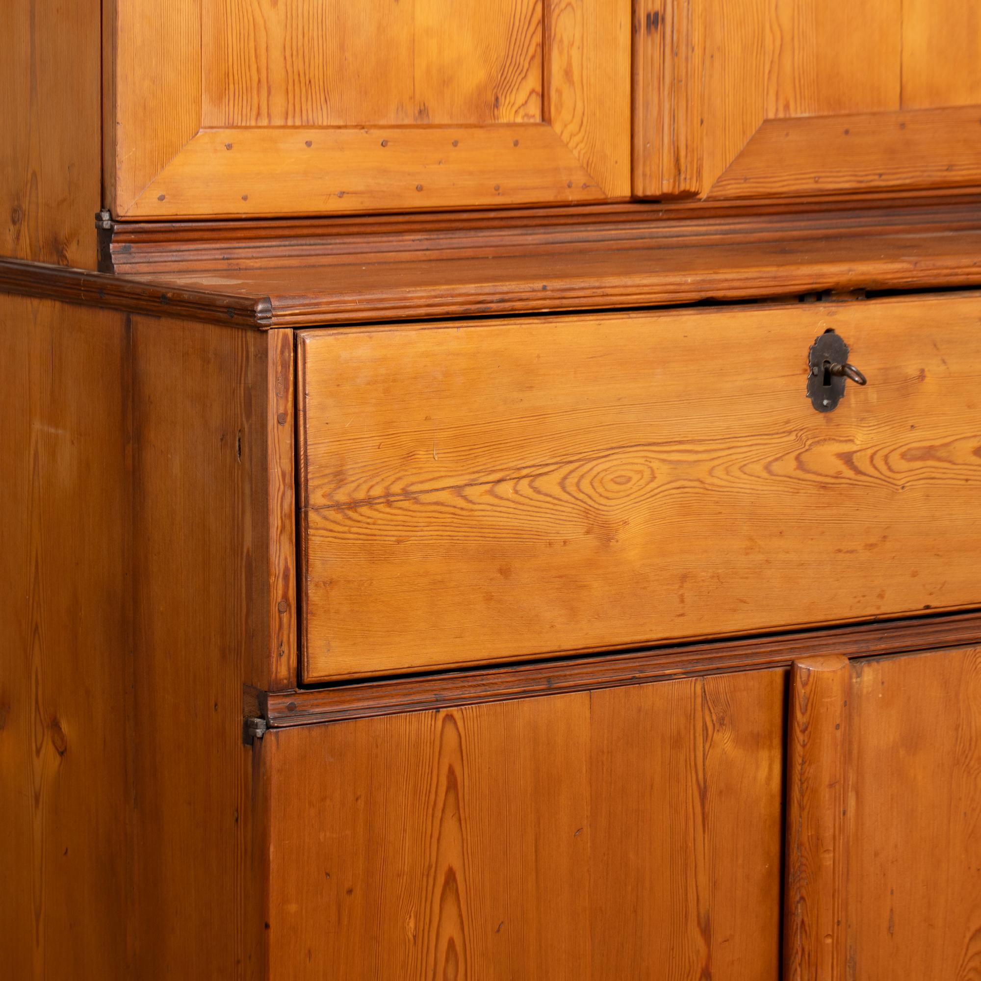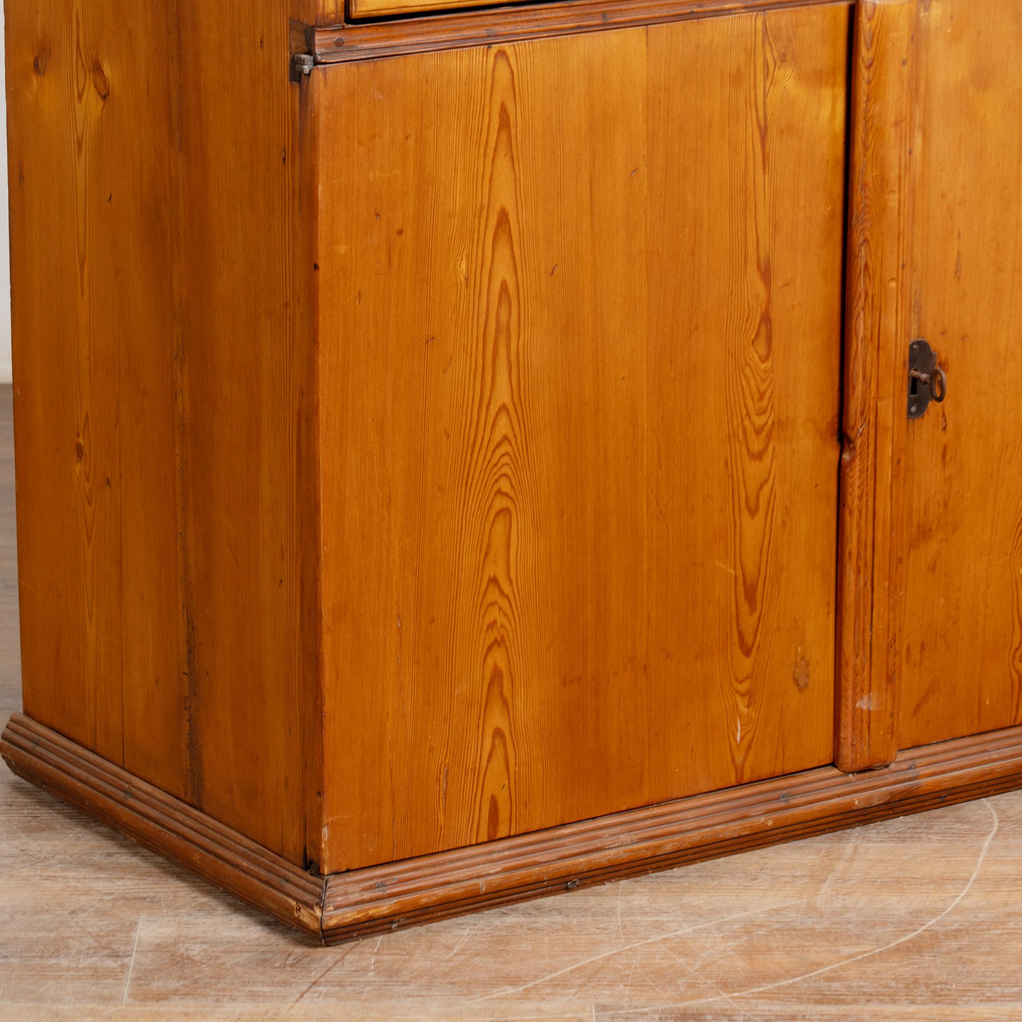 This pine cabinet is a wonderful example of Norwegian country craftsmanship including the traditional curved bonnet or crown and paneled doors.