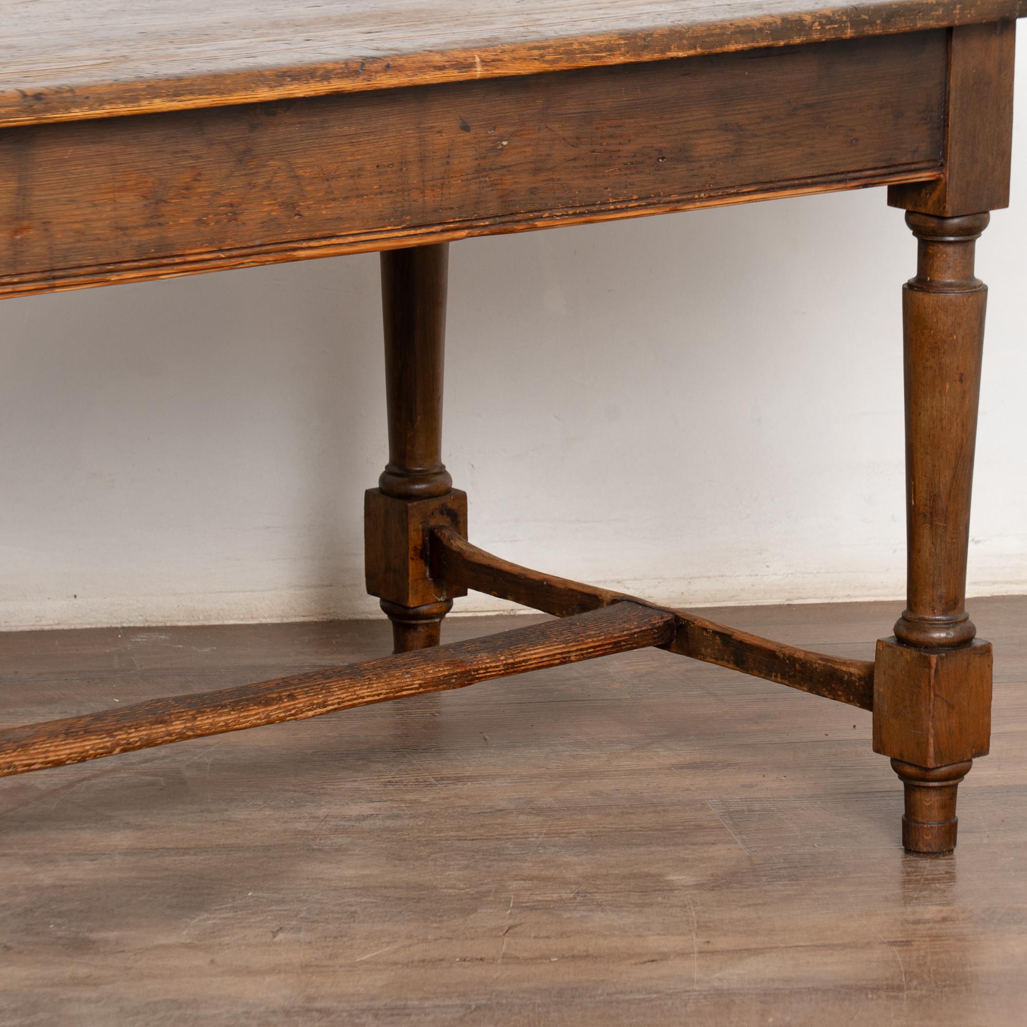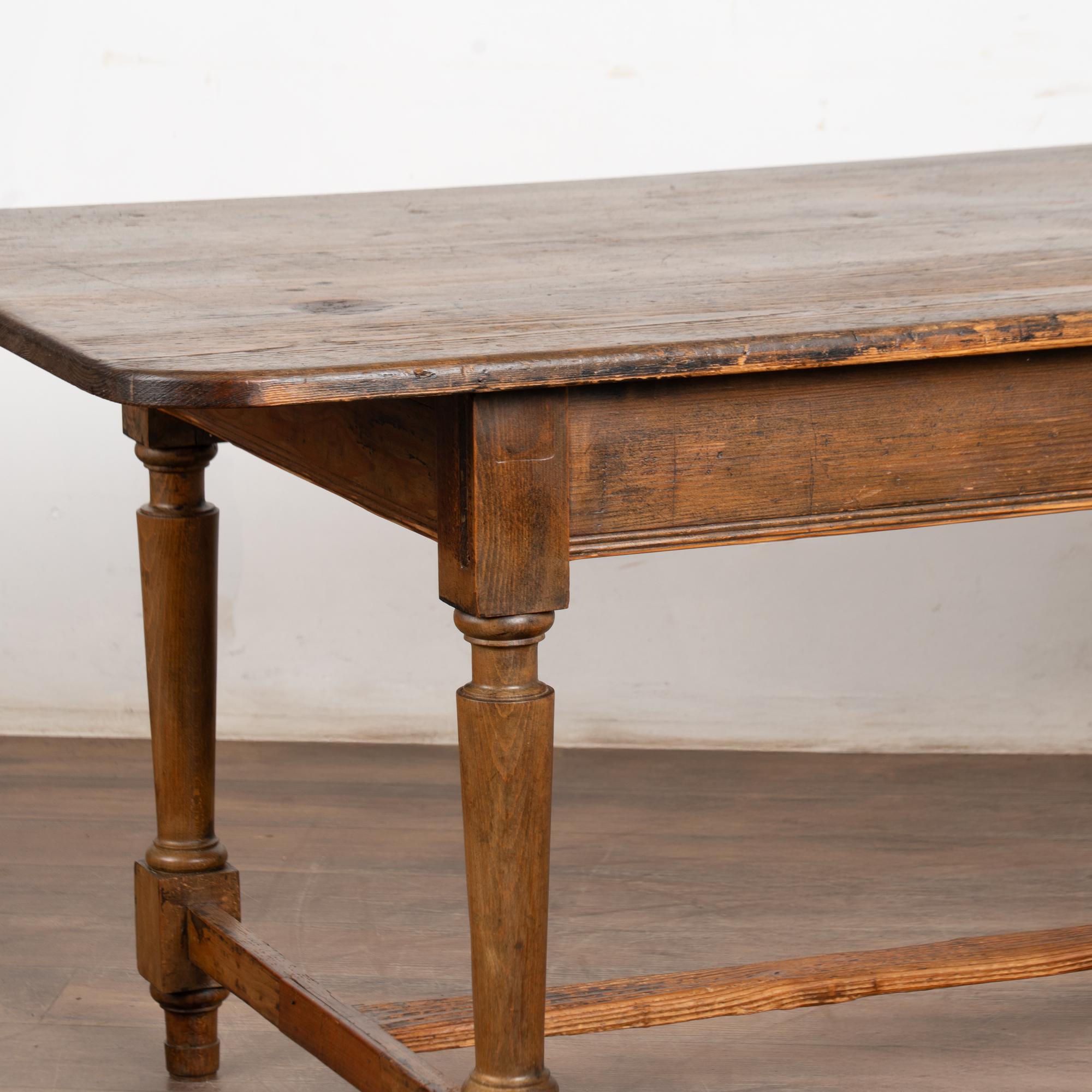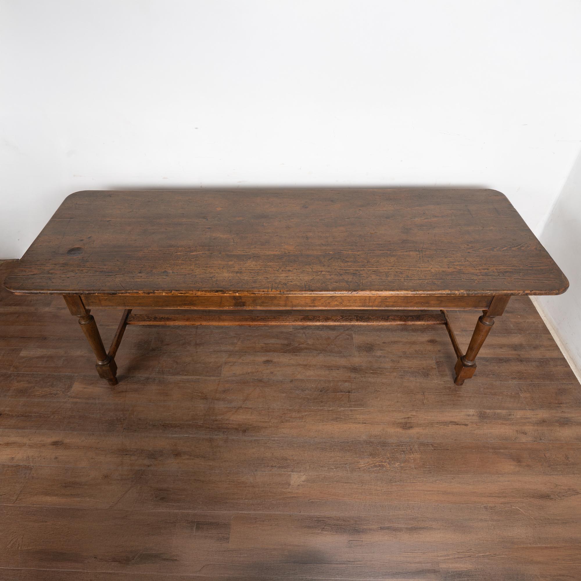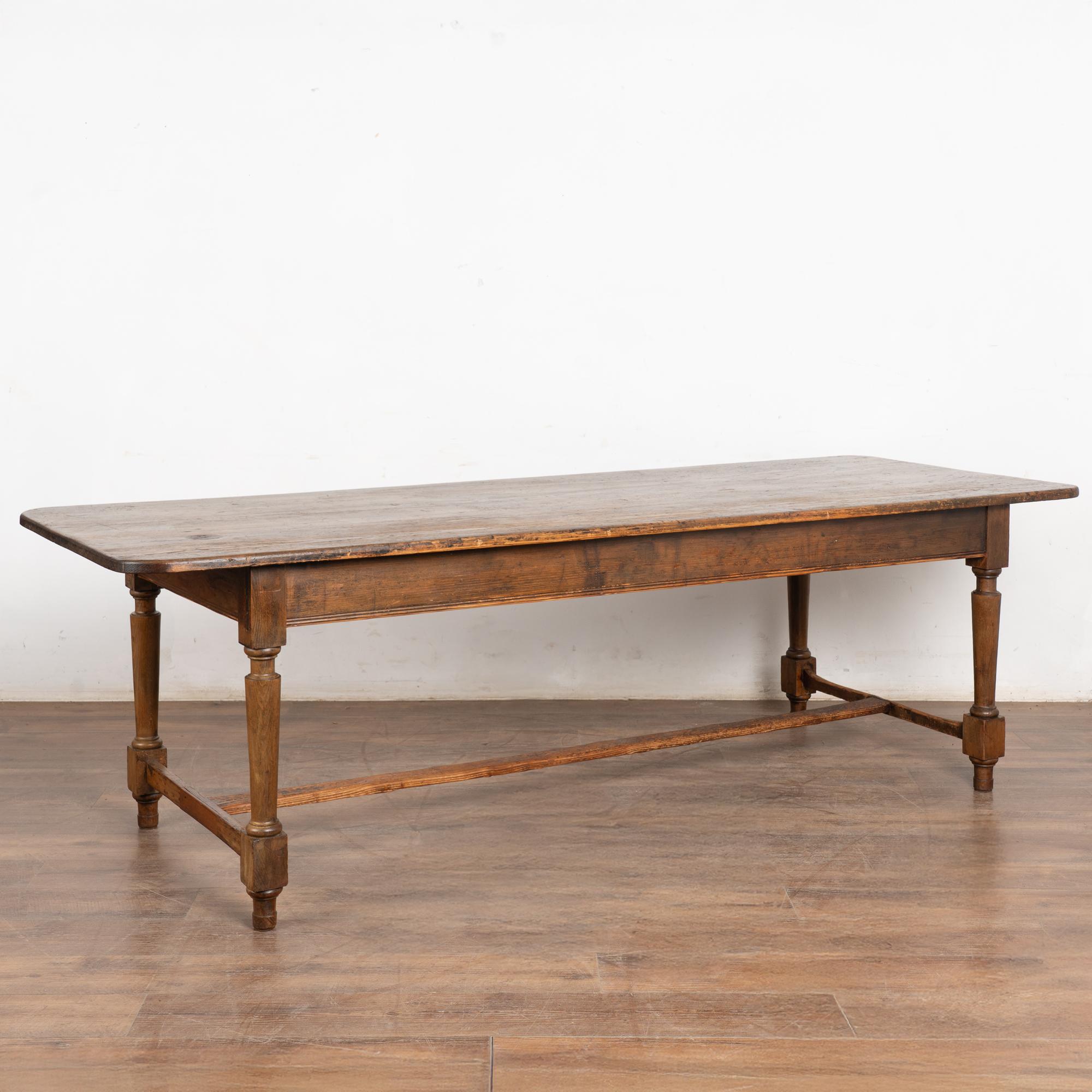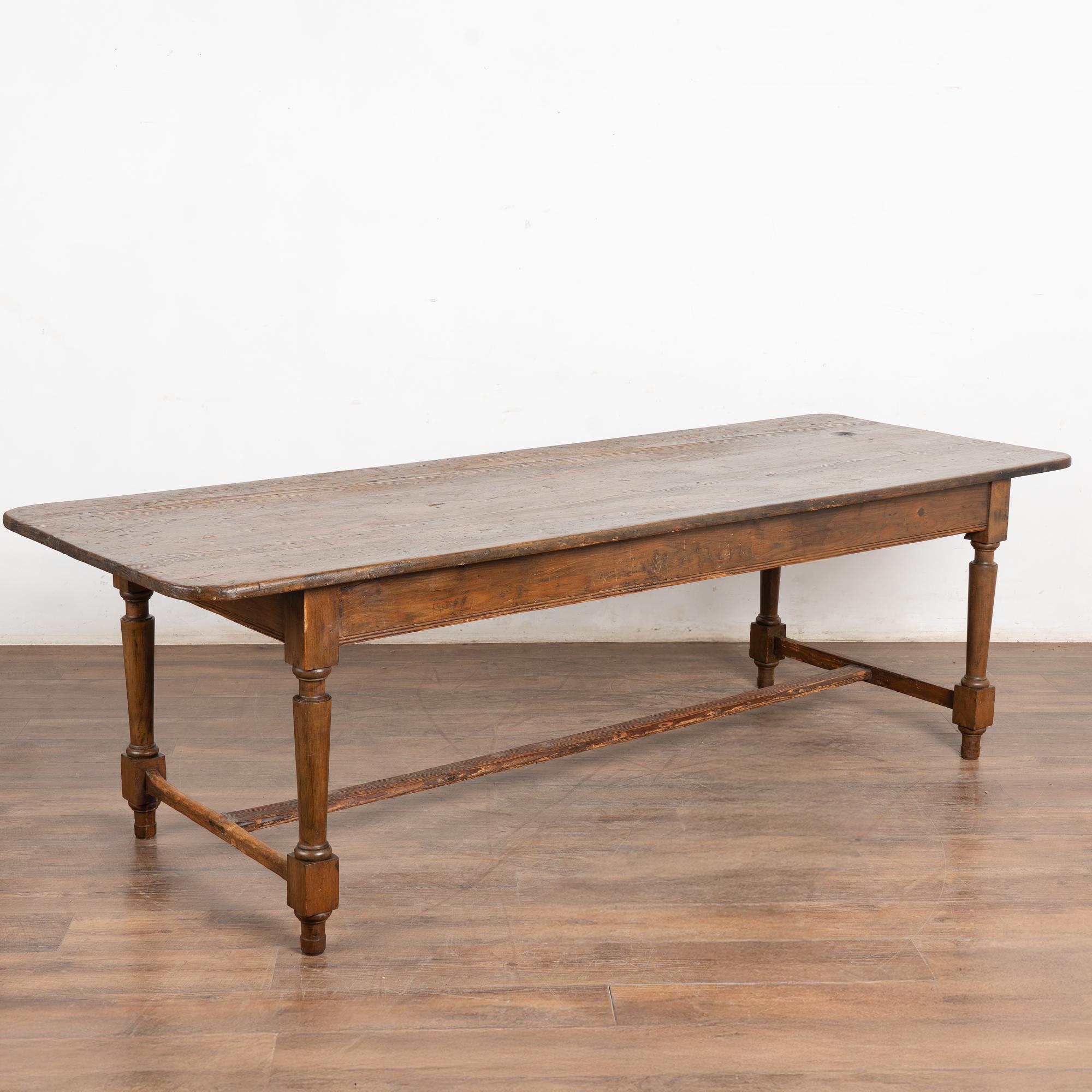 Softly curved ends balance the substantial 8' long form and enhance its traditional proportions. Restored, strong, and stable, this refectory table is ready for use and well suited for dining spaces, kitchens, or as a large work or gathering table in French country or rustic interiors.