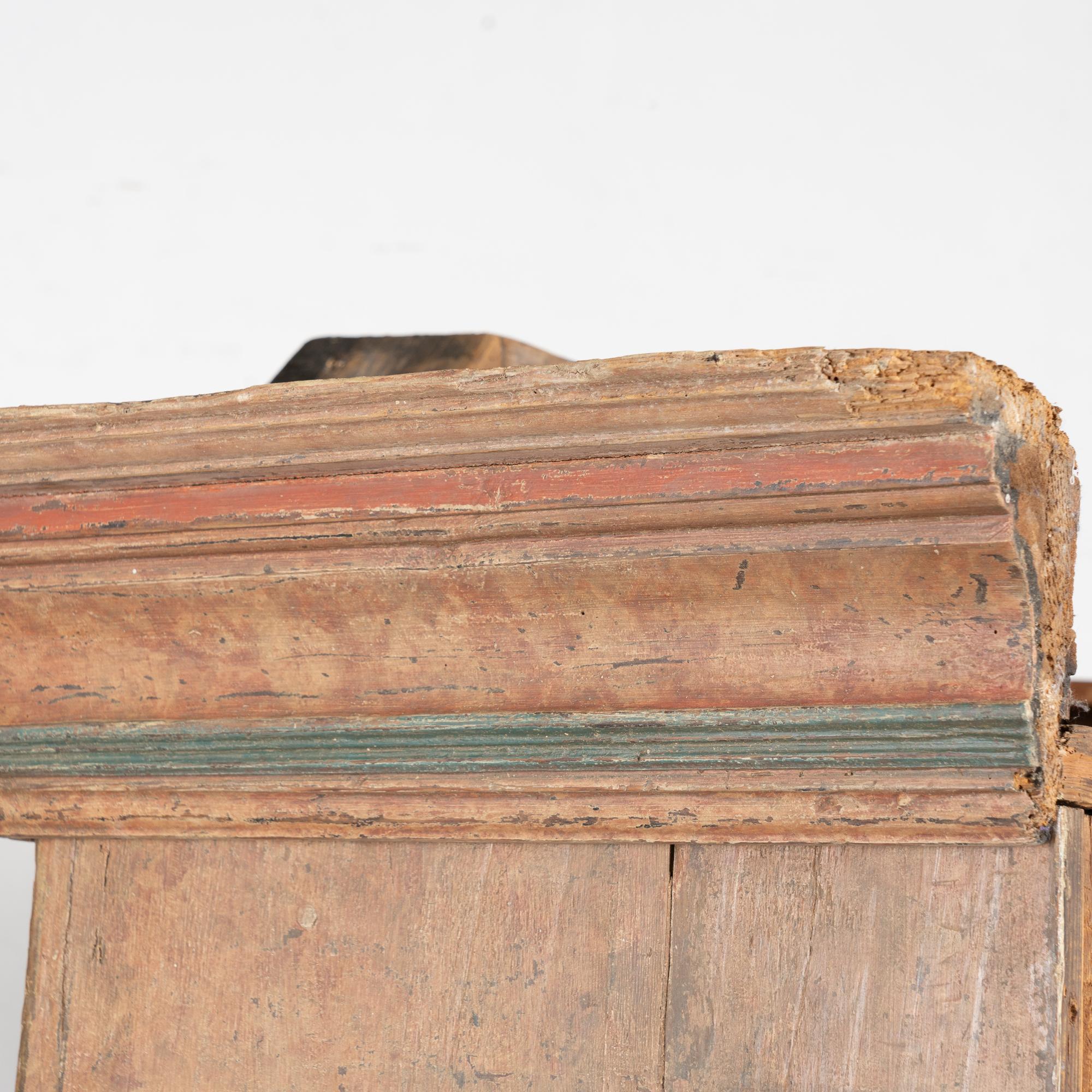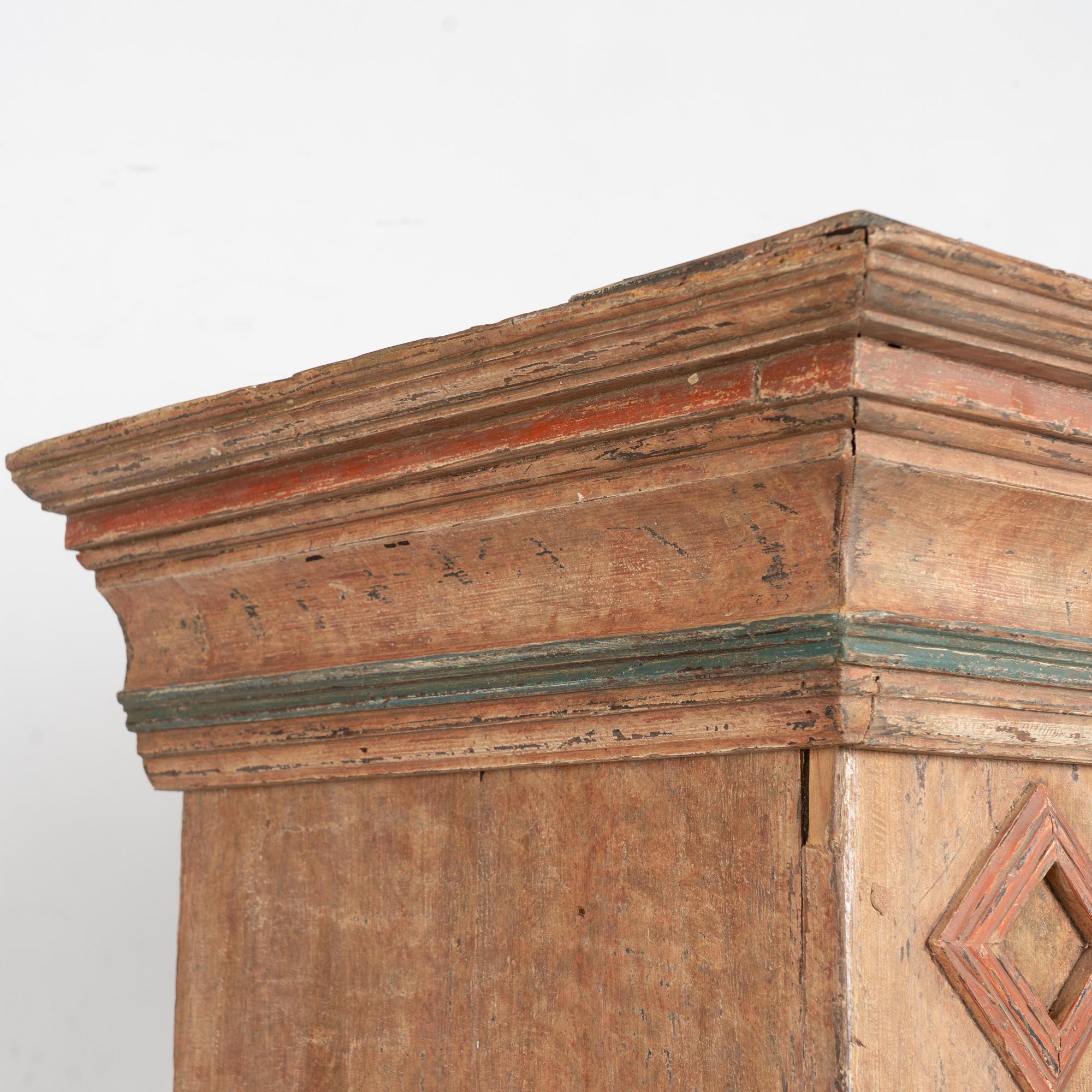 All scratches, cracks (crown, sides, etc), dings, and age related separation (see corners, back, etc) are reflective of age and do not detract from the beauty nor function of this Swedish pine cabinet. Some dried wormholes seen along back/cornice.