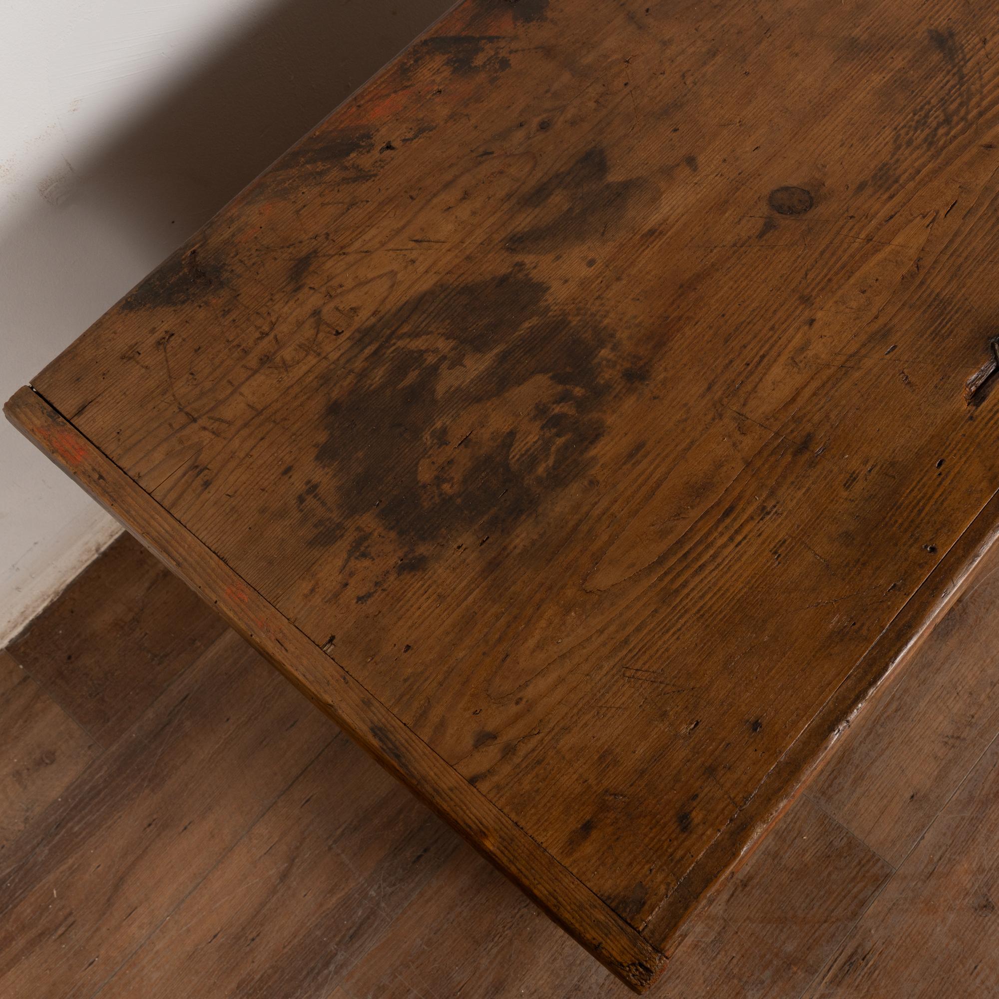 Deep patina, cracks, gouges, stains, nicks and old dried wormholes reveal generations of use. Age related separation seen in interior bottom.