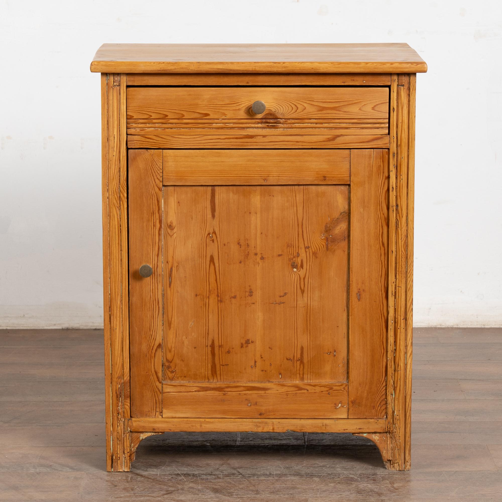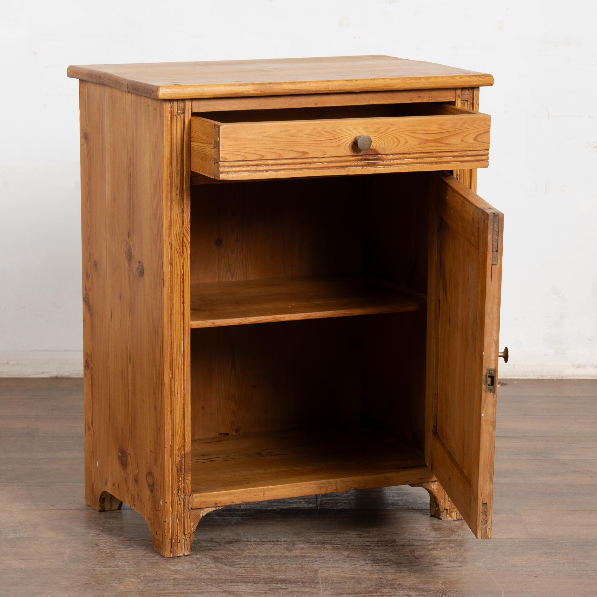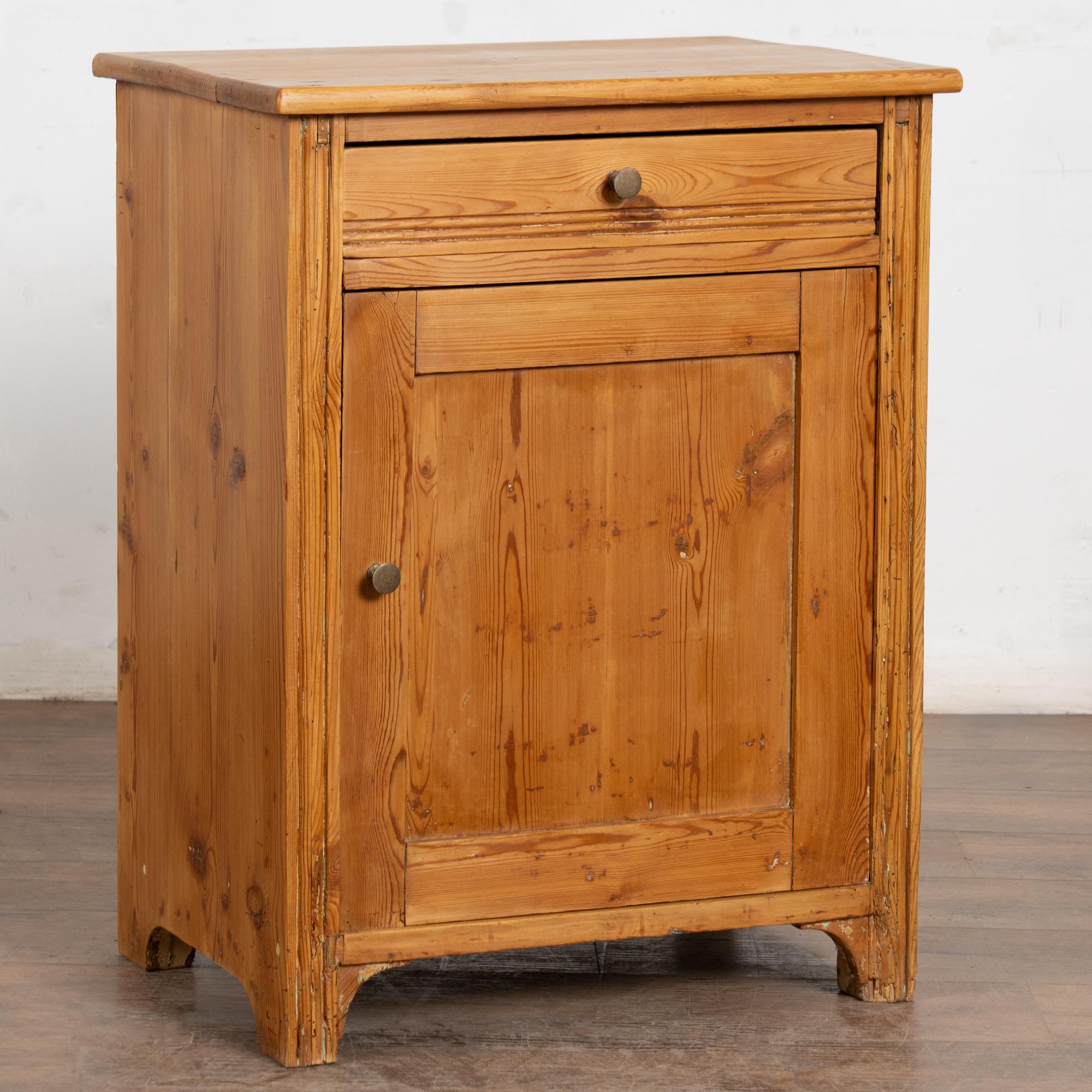 Antique pine nightstand or small cabinet with drawer over door.
