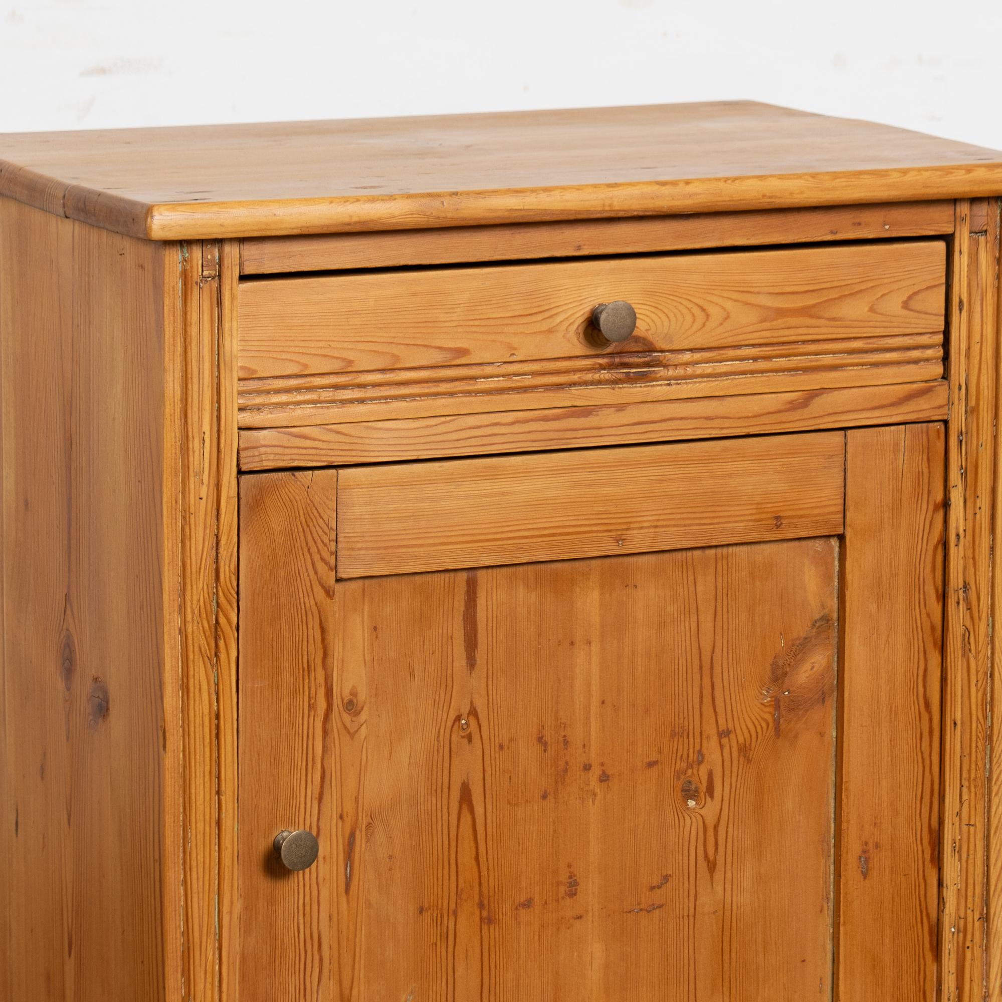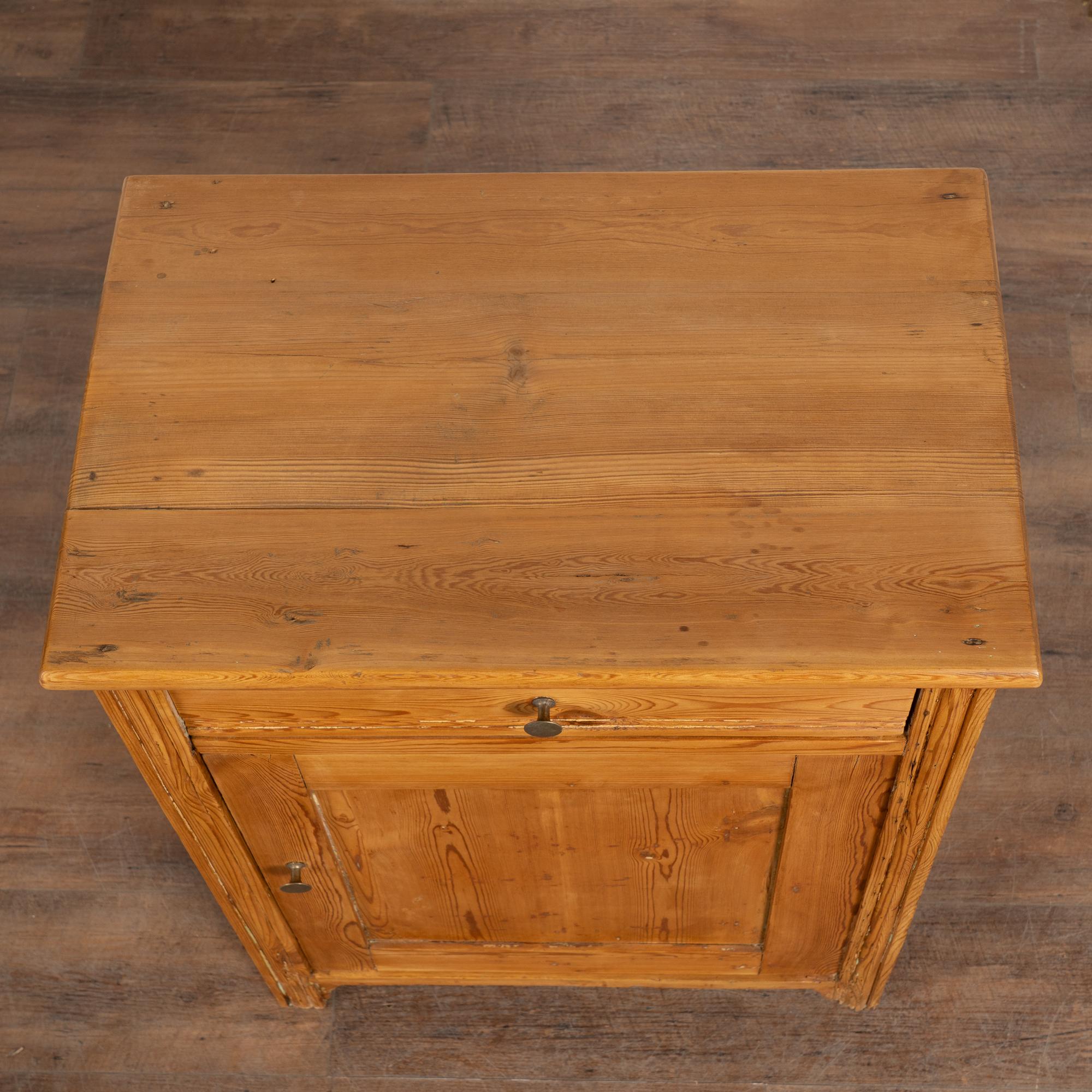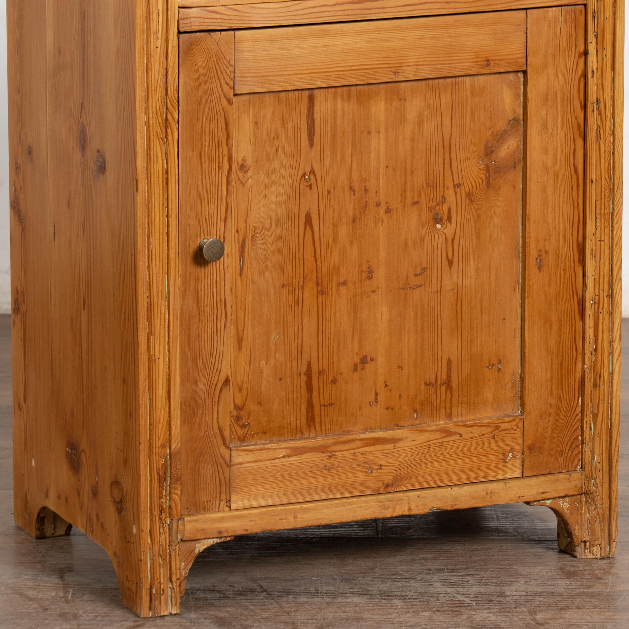 Antique pine nightstand or small cabinet with drawer over door.