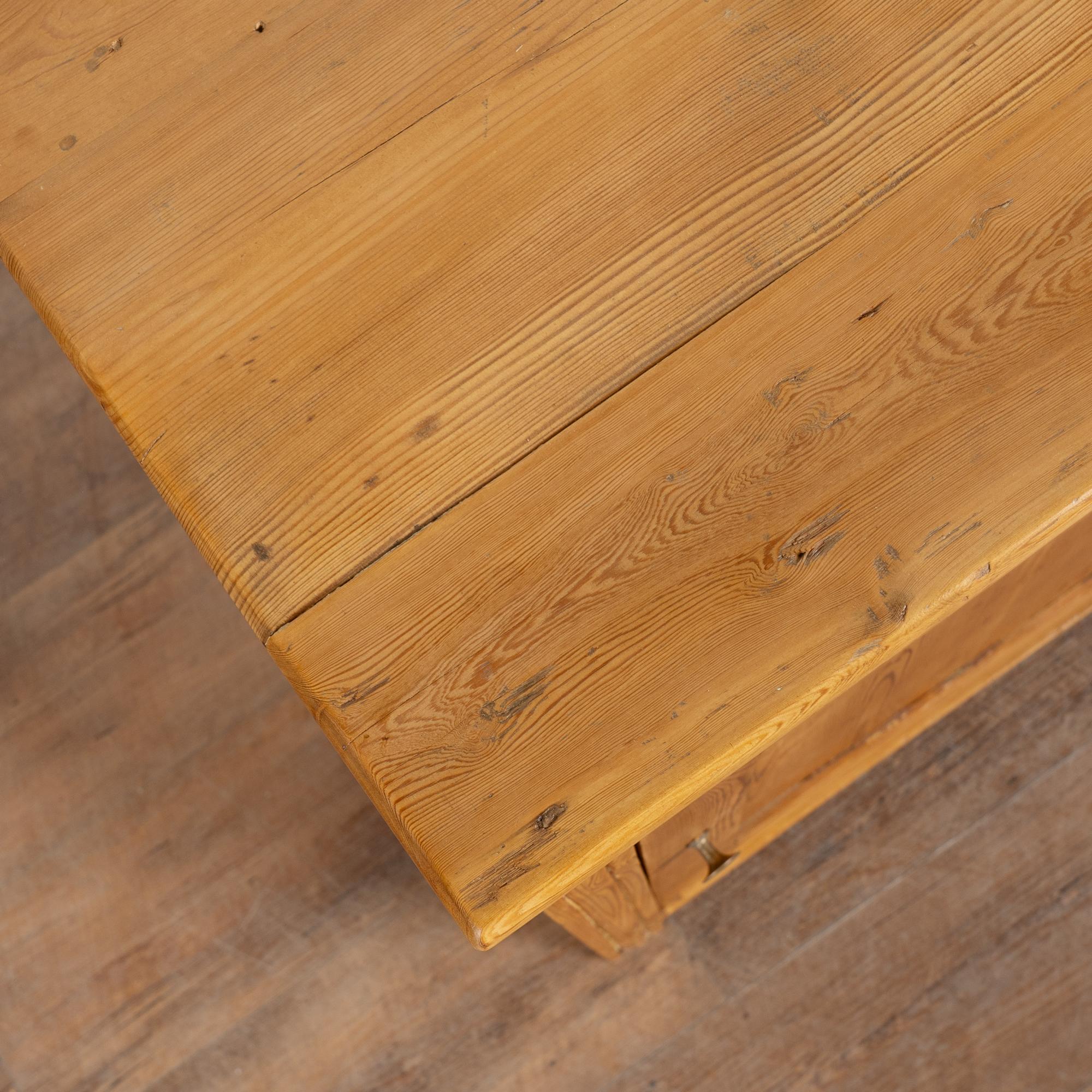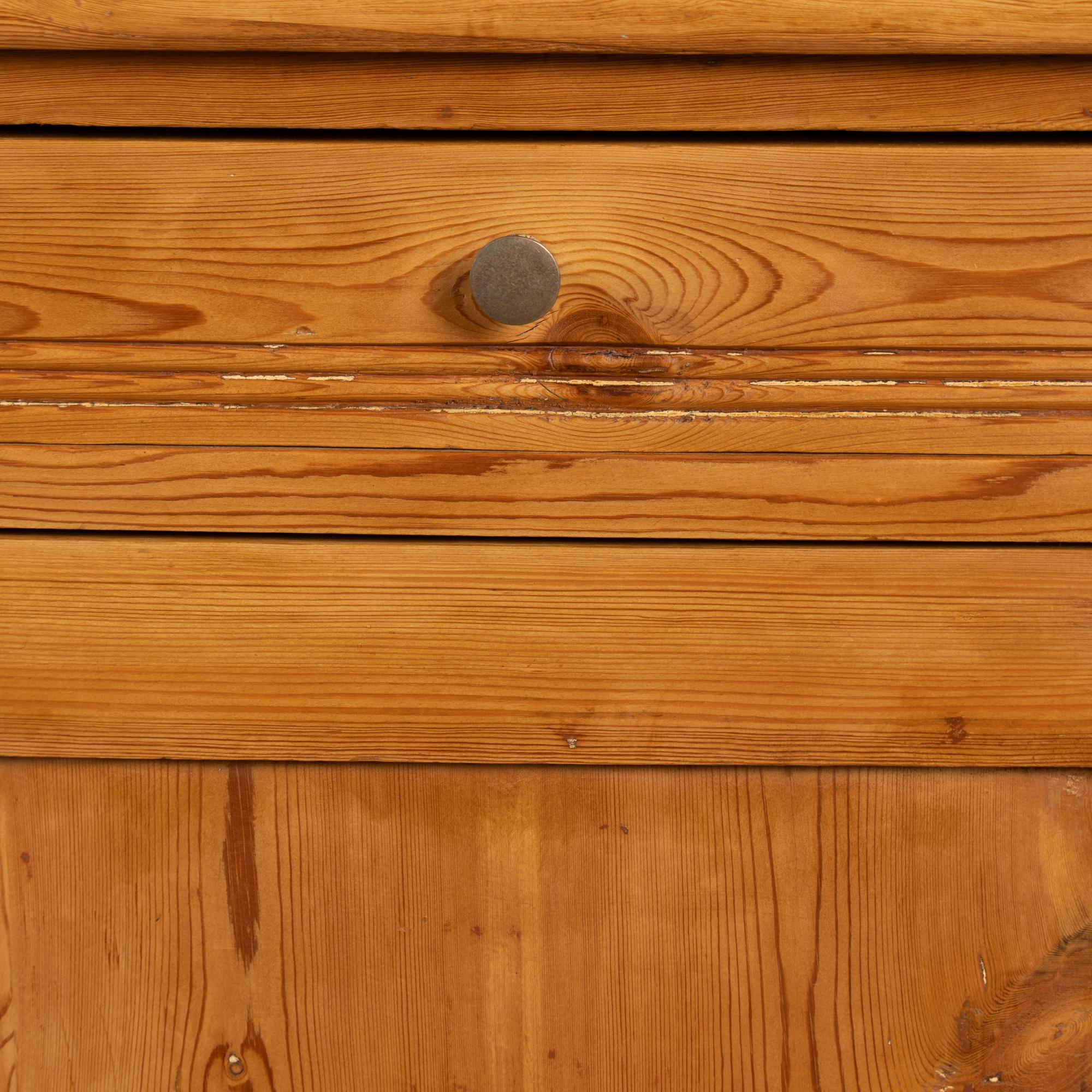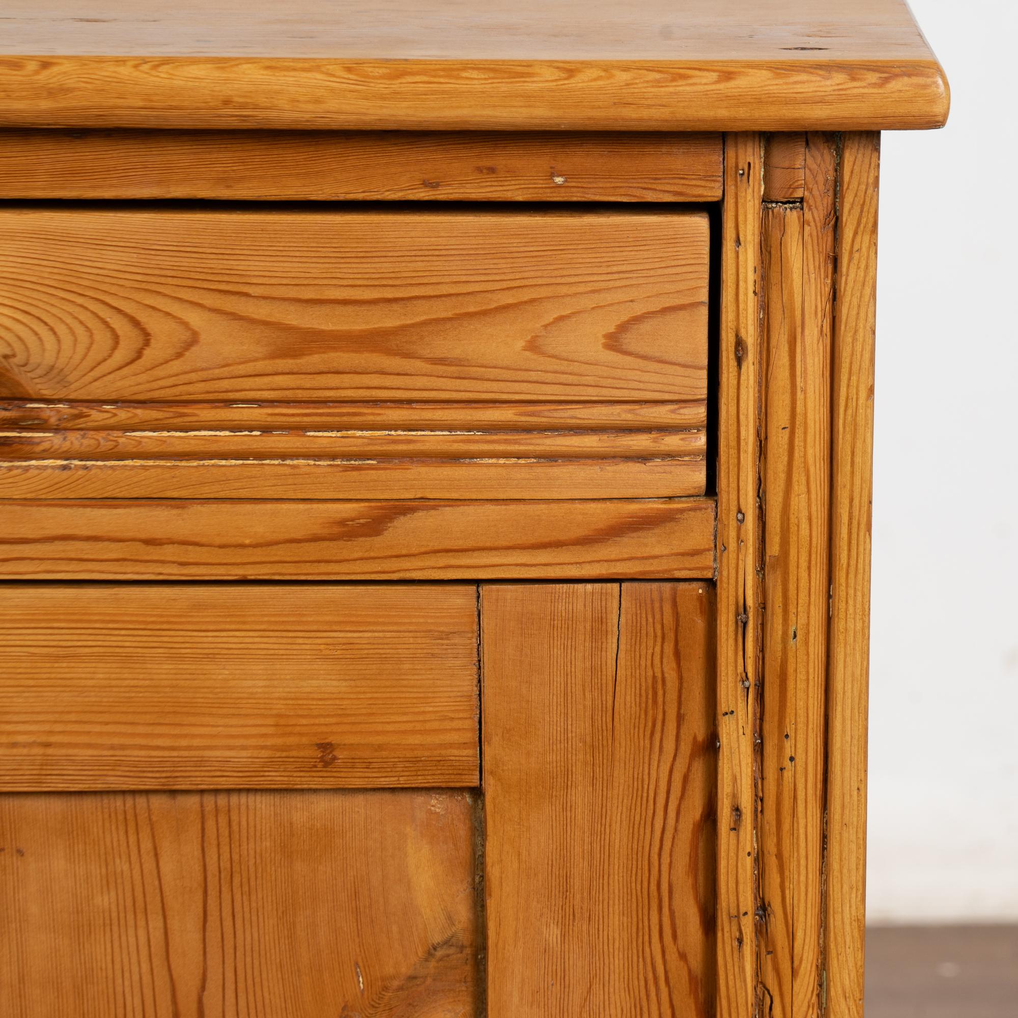 Note the natural wax finish that brings out the warmth of the pine and simple carving along drawer.