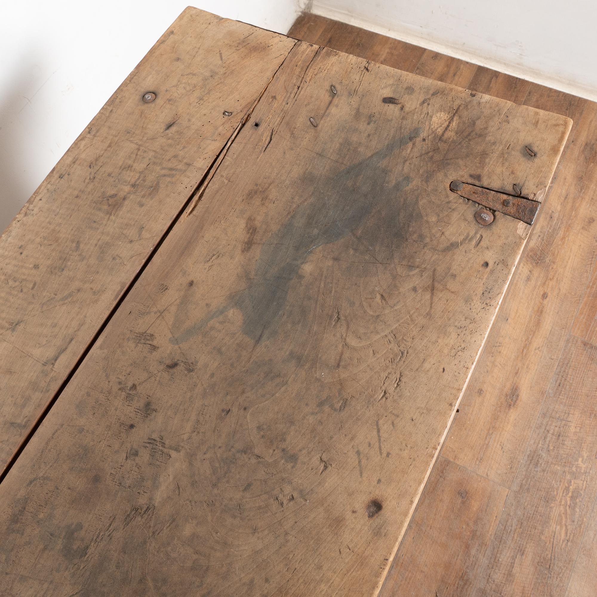 Refer to photos of the top to understand the years of use and distress seen in the cracks, gouges, old repairs, nails/staples, stains and more.
