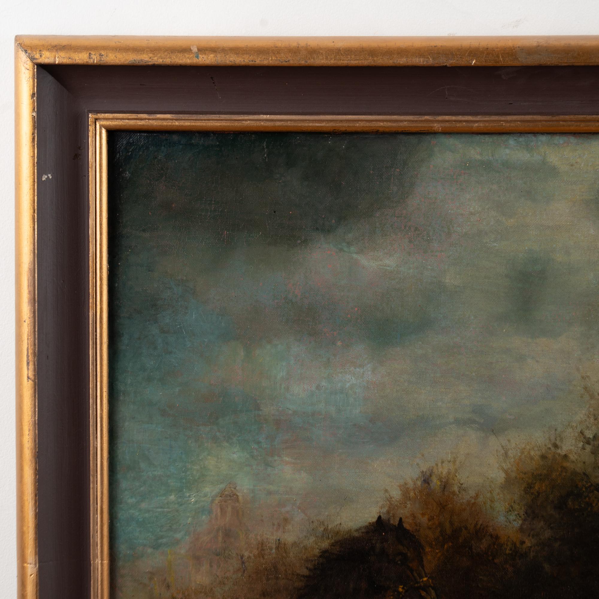 The painting is signed by an unknown artist in the lower right corner. Craquelure is present throughout the canvas with areas of retouching. Due to age, the canvas may benefit from cleaning, left to the discretion of the buyer.