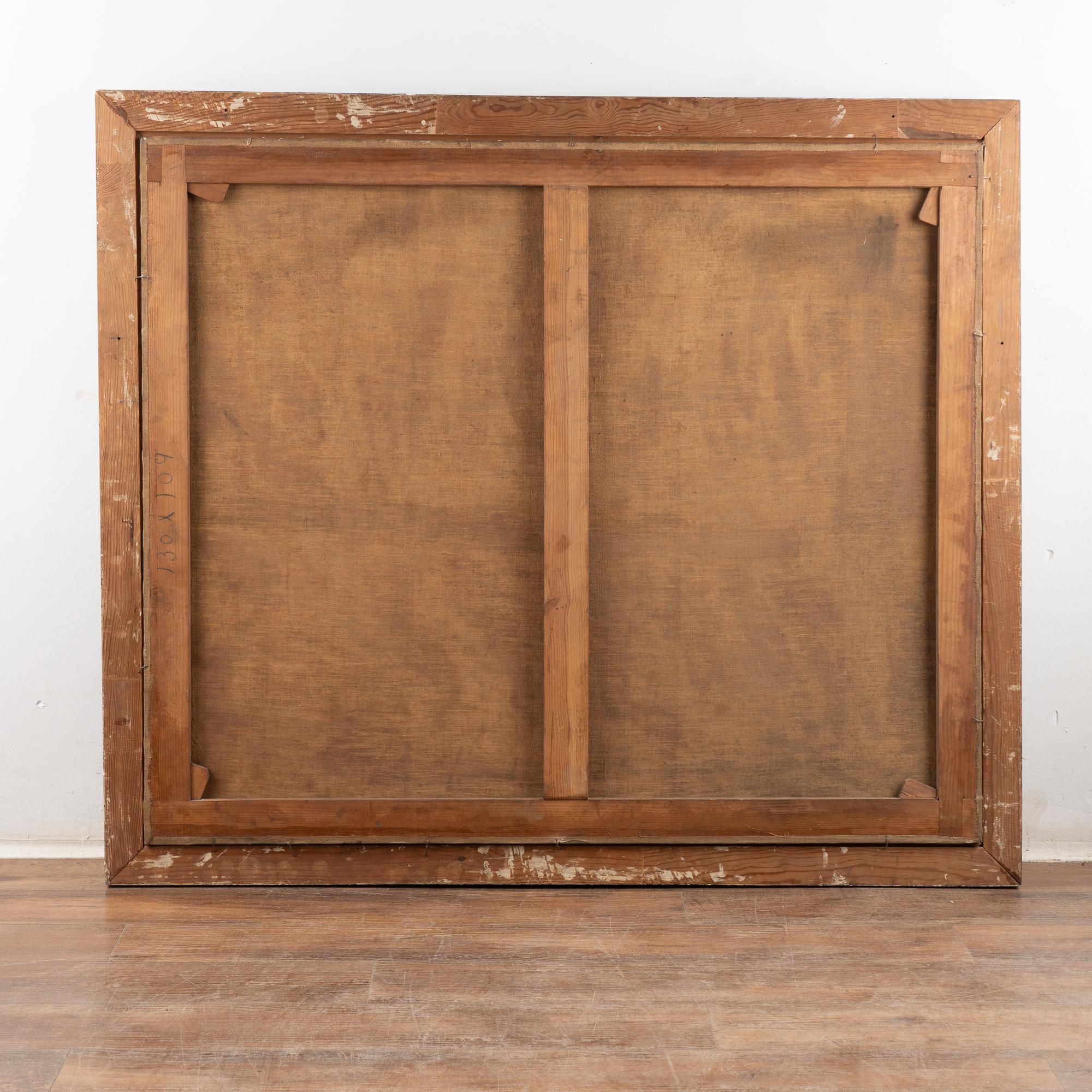 The canvas is in good condition with slight retouches and scuffs around frame edge. The frame is newer and shows typical nicks and scratches, with one gouge at the lower right section. The canvas may benefit from a light cleaning and could be secured more firmly to the frame if the buyer chooses to keep it in its current framing.