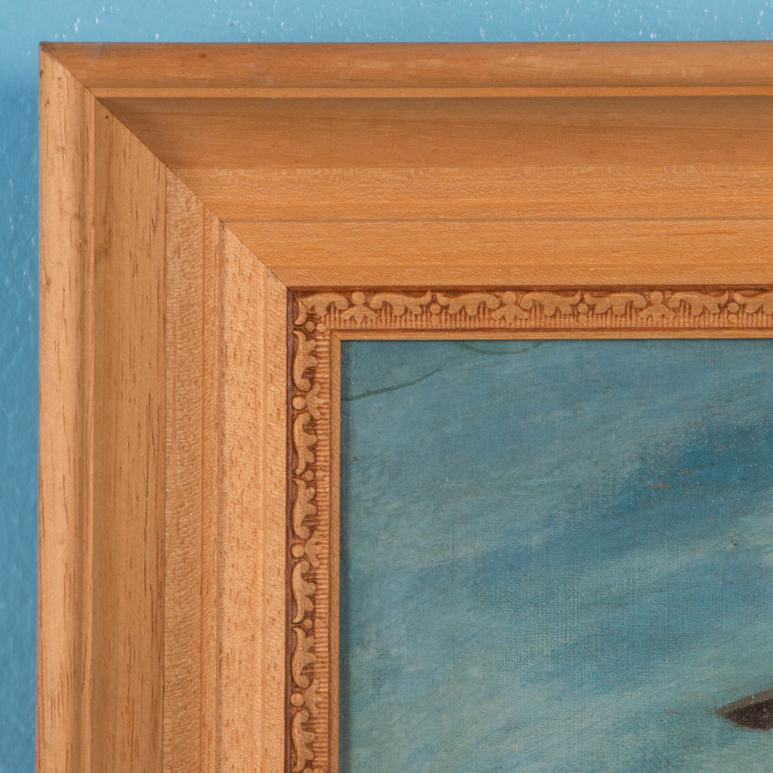 The painting is signed with a monogram AM in the lower left and mounted in a natural wood frame. Please take a moment to enlarge the photos to appreciate the details of the painting, frame and signature.