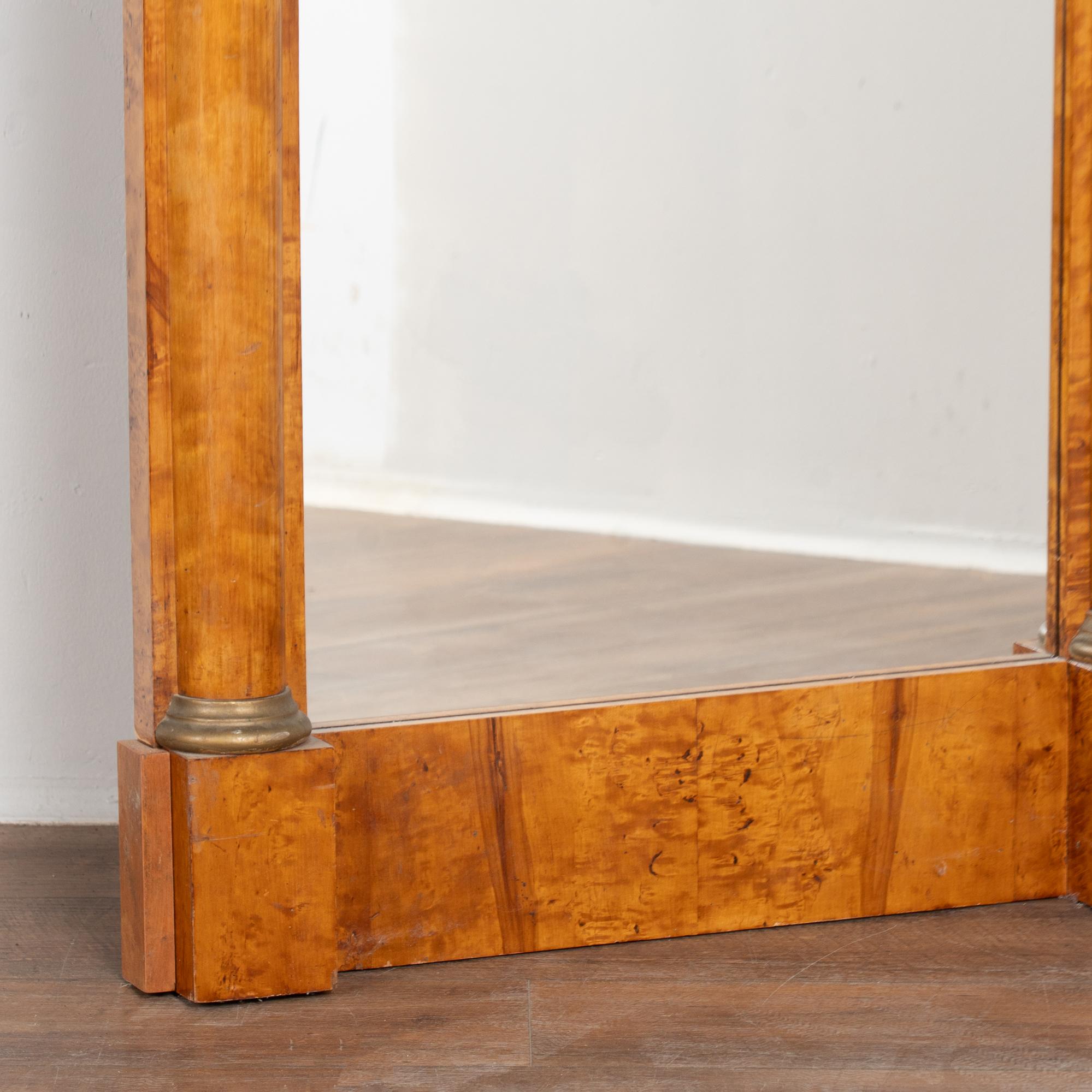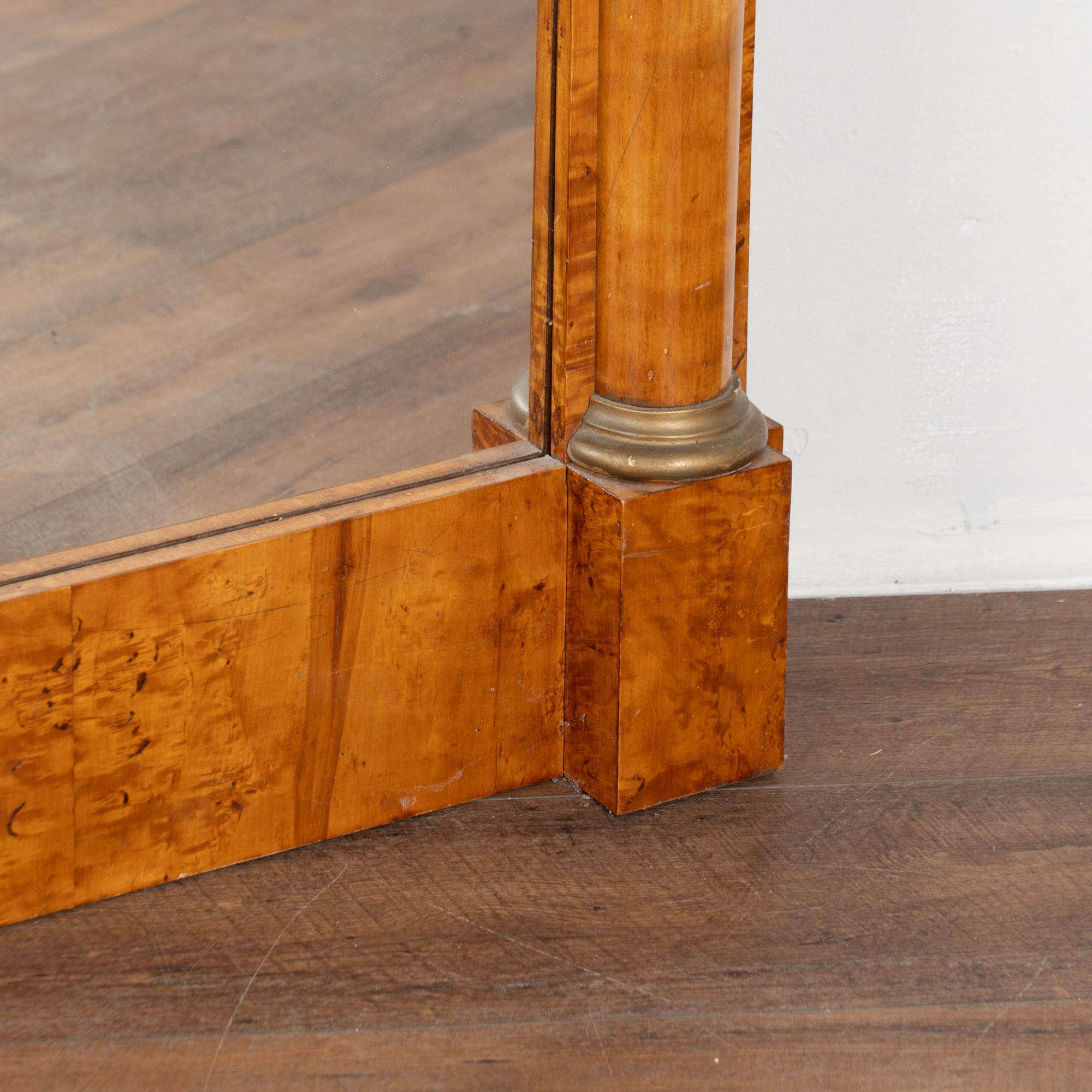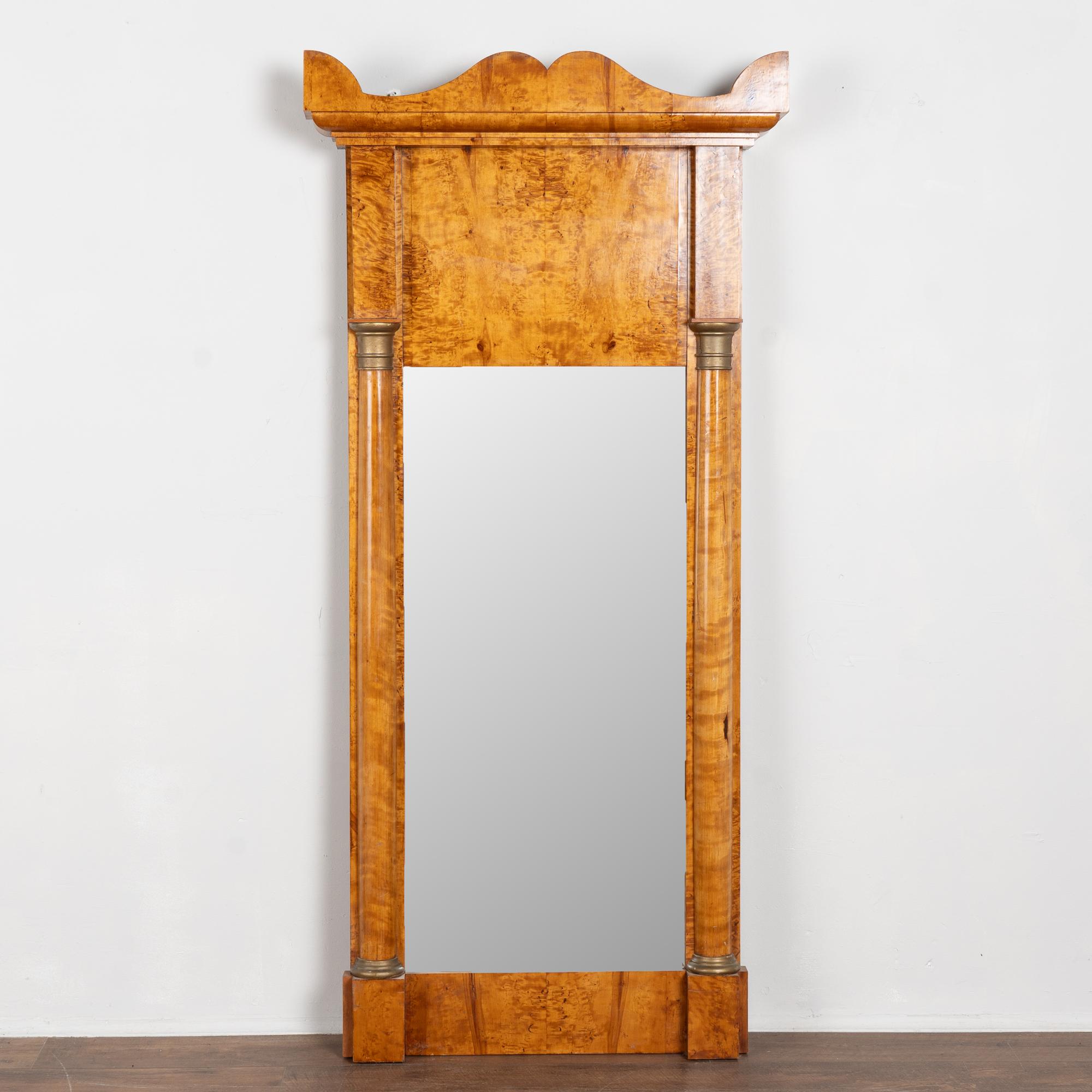 19th-century Biedermeier mirror crafted in birch veneer with refined half-column details accented in bronze-painted accents. The mirror displays clean lines and balanced proportions, complemented by a subtly scalloped crown that adds gentle architectural interest.